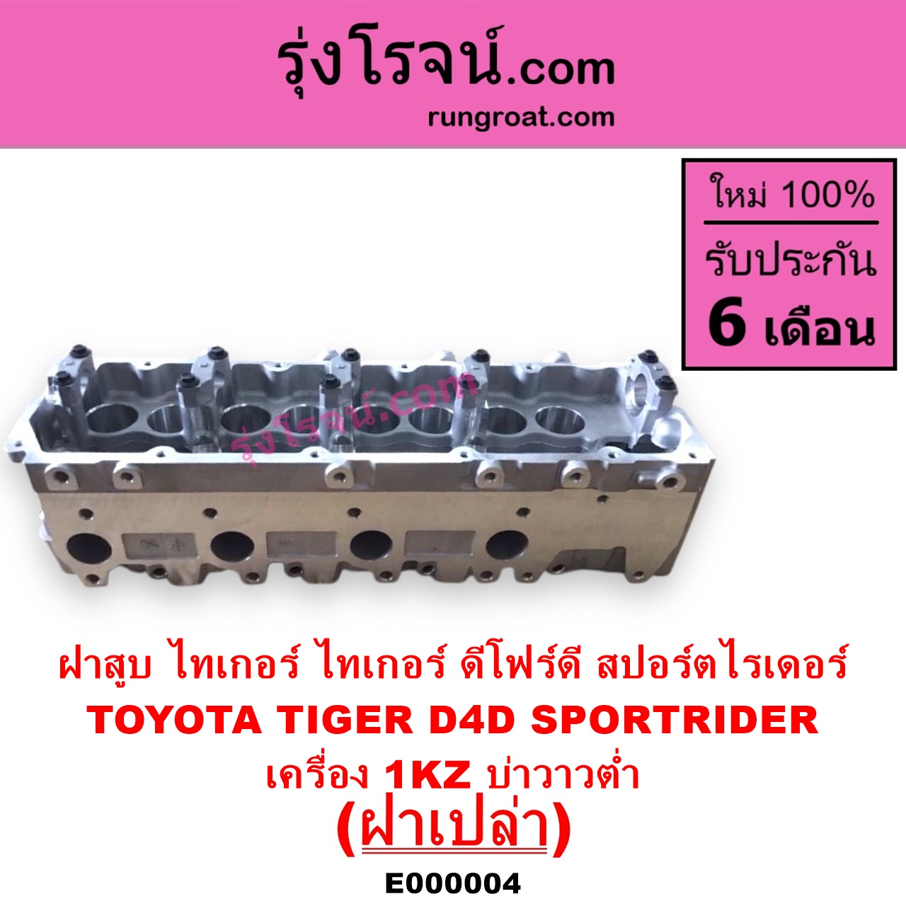 | E000004 | ฝาสูบ | TOYOTA (โตโยต้า) / LN130 (SURF, เซิฟ) , TOYOTA (โตโยต้า) / PRADO (พราโด้ J95 98) , TOYOTA (โตโยต้า) / PRADO (พราโด้ LJ78 92) , TOYOTA (โตโยต้า) / SPORTRIDER (สปอร์ตไรเดอร์) , TOYOTA (โตโยต้า) / TIGER/TIGER D4D (ไทเกอร์ / ไทเกอร์ ดีโฟร์ดี) |