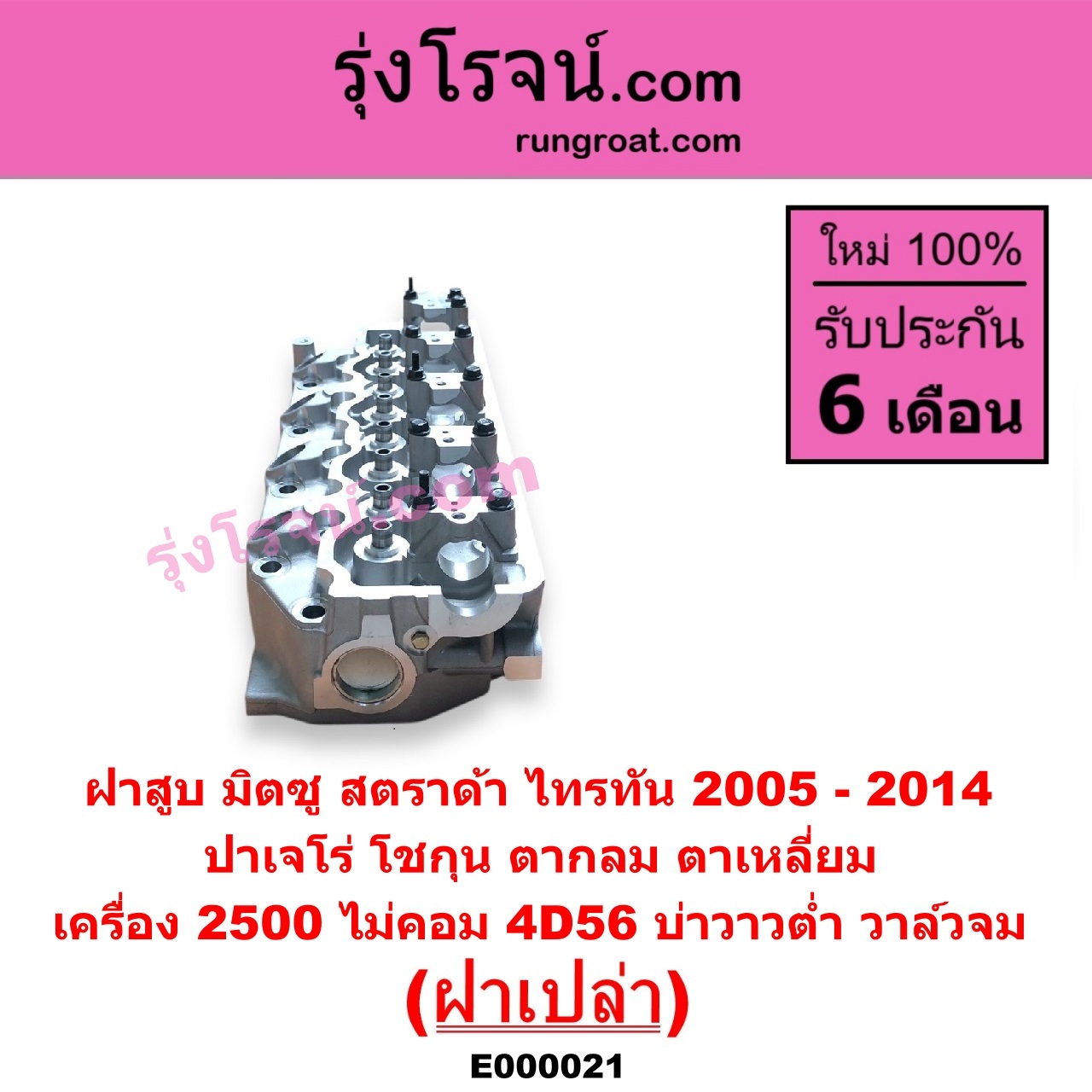 | E000021 | ฝาสูบ | MITSUBISHI (มิตซู) / G-WAGON (จีวากอน / แกรนด์ดิส) , MITSUBISHI (มิตซู) / PAJERO (ปาเจโร่ โชกุน/ตากลม/ตาเหลี่ยม) , MITSUBISHI (มิตซู) / STRADA (สตราด้า สตาด้า 1997 – 2005) , MITSUBISHI (มิตซู) / TRITON (ไทรทัน ไตตั้น 2005 – 2014 PLUS) (รุ่นแรก) |