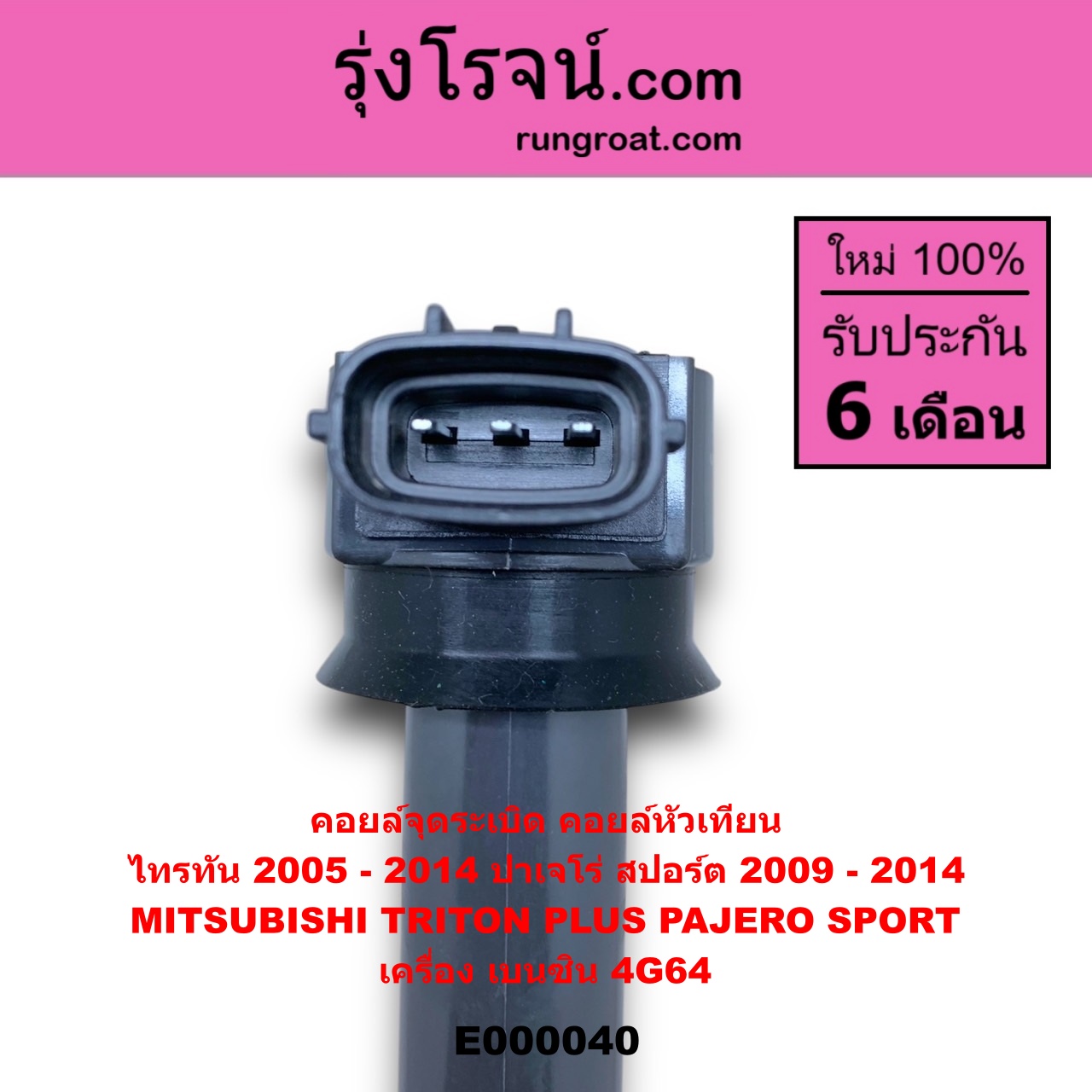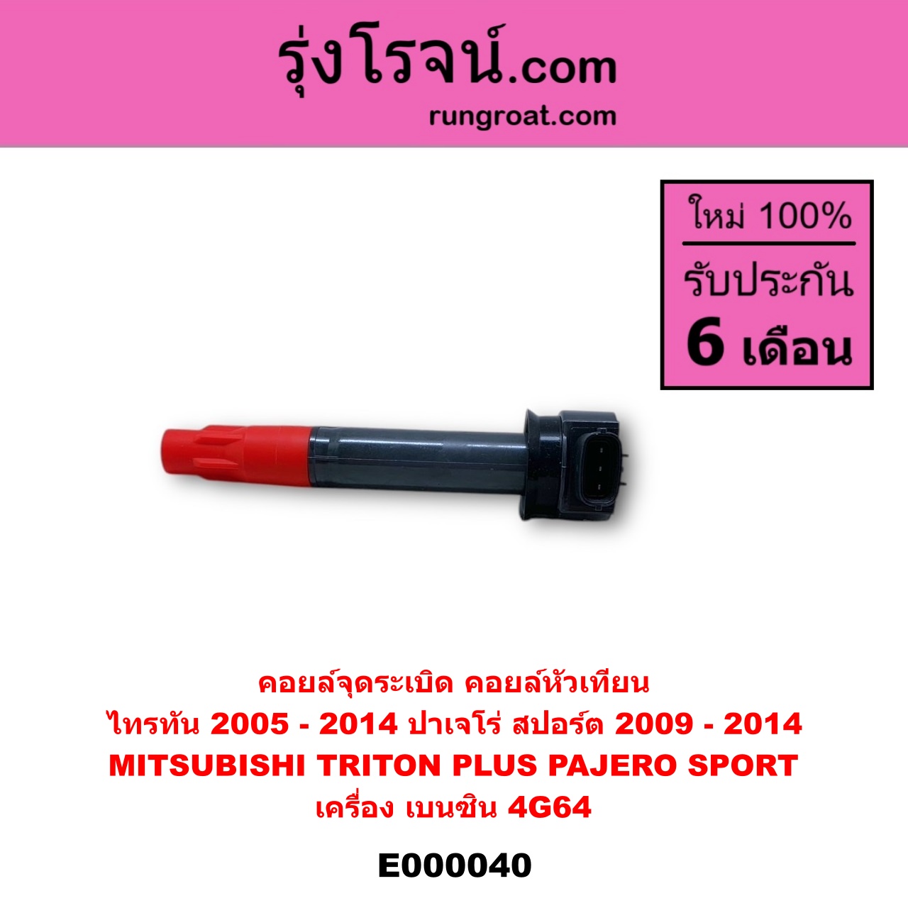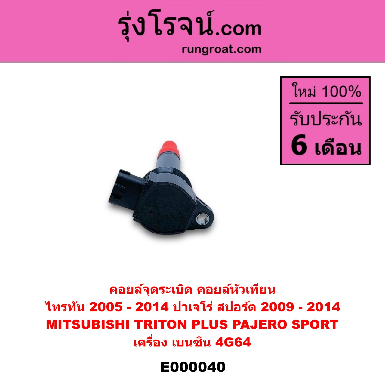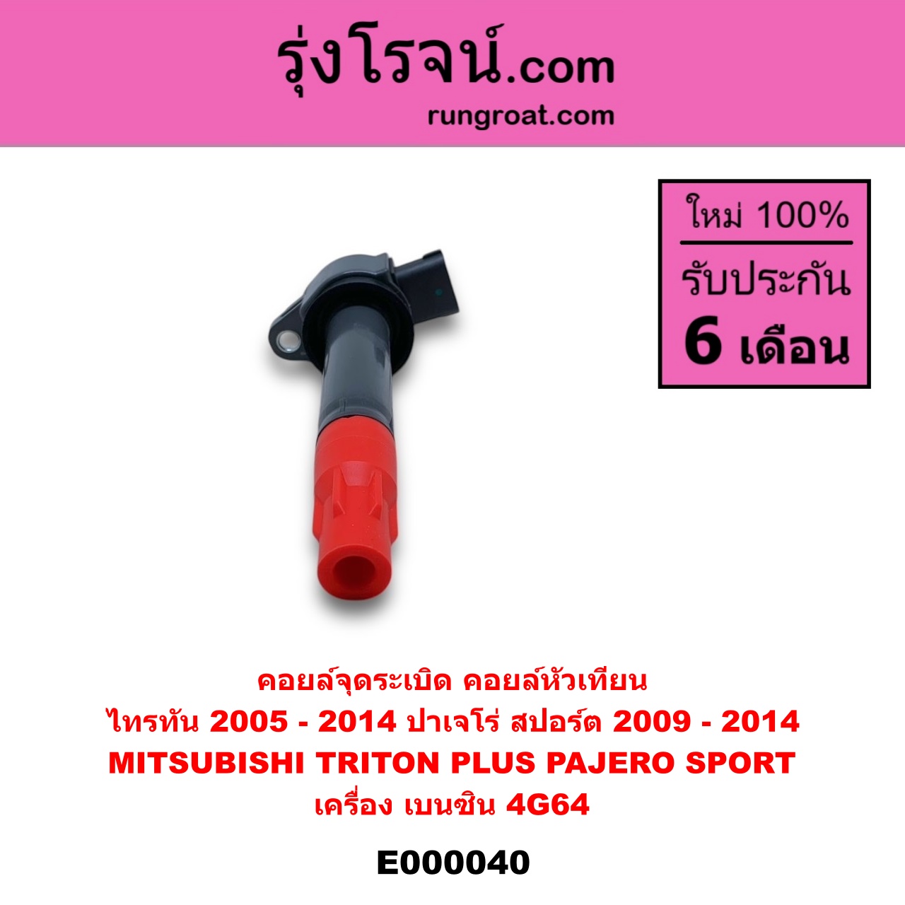 | E000040 | คอยล์จุดระเบิด (คอยล์หัวเทียน) | MITSUBISHI (มิตซู) / PAJERO SPORT (ปาเจโร่ สปอร์ต 2009 – 2014) (รุ่นแรก) , MITSUBISHI (มิตซู) / TRITON (ไทรทัน ไตตั้น 2005 – 2014 PLUS) (รุ่นแรก) |