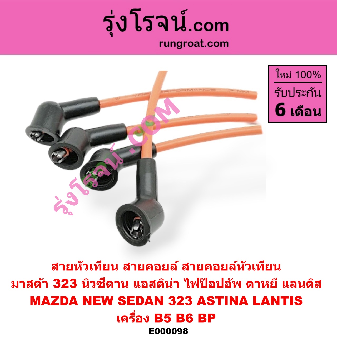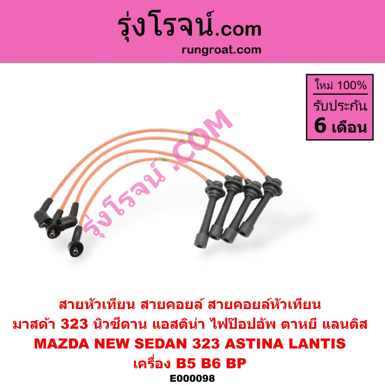 E000098 สายหัวเทียน (สายคอยล์, สายคอยล์หัวเทียน) MAZDA (มาสด้า) / 323 95/97 (นิวซีดาน) , 323 ASTINA (แอสติน่า 90) (ไฟป๊อปอัพ) , 323 ASTINA (แอสติน่า 95) (ตาหยี) , LANTIS (แลนติส 95) เครื่อง B5, B6, BP