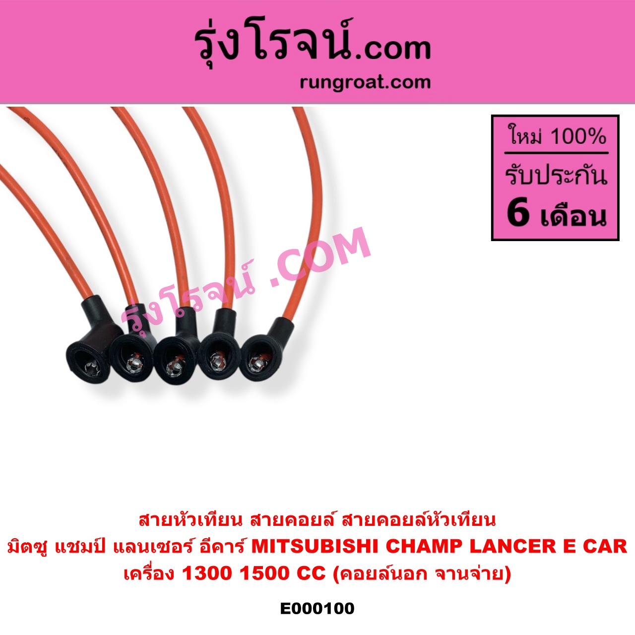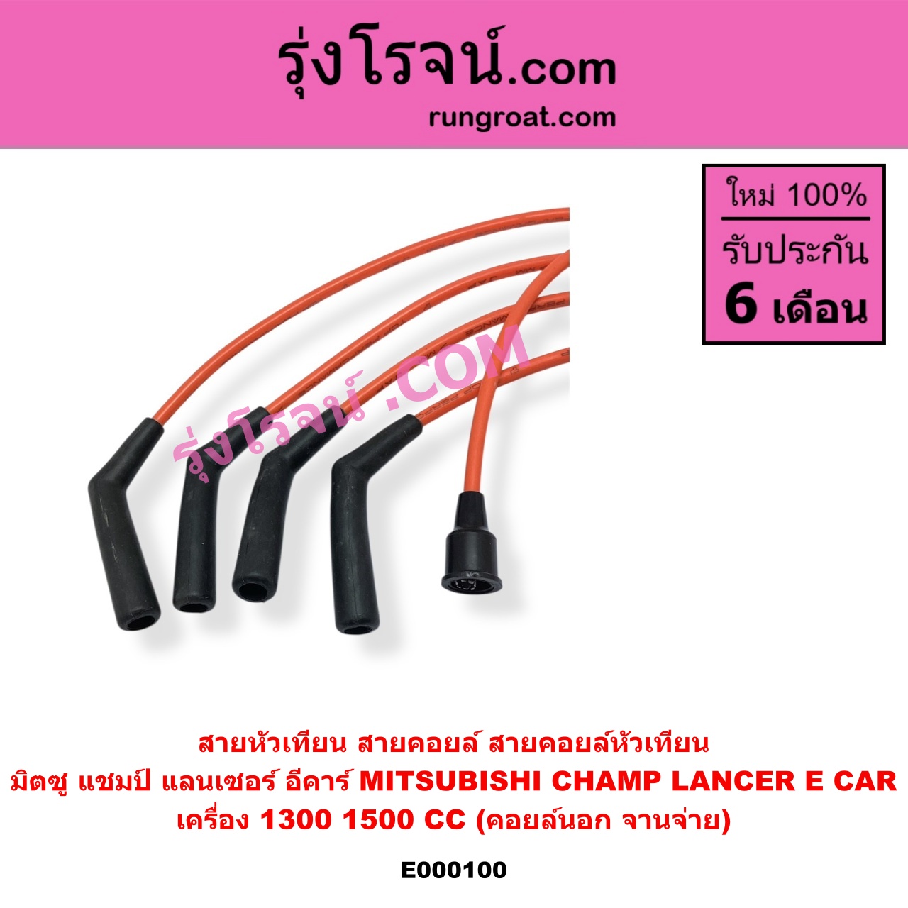 | E000100 | สายหัวเทียน | MITSUBISHI (มิตซู) / CHAMP (แชมป์ 1/2/3) , MITSUBISHI (มิตซู) / LANCER E-CAR (แลนเซอร์ อีคาร์ 92/94) |