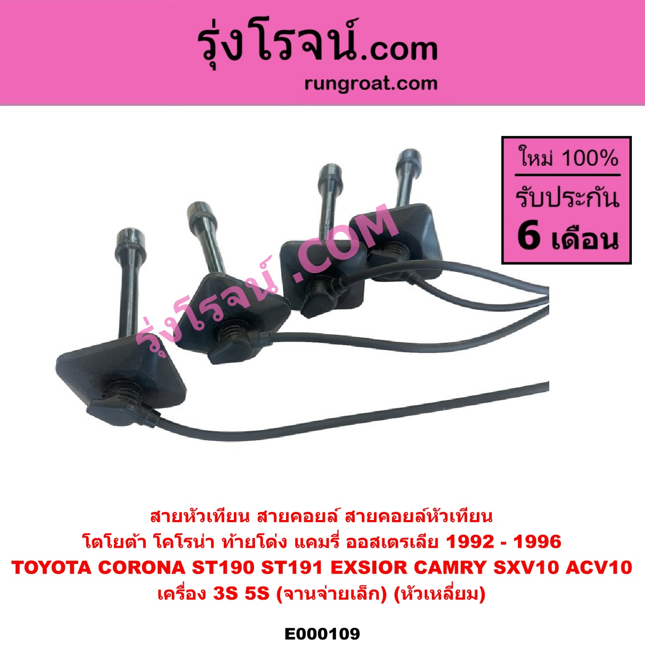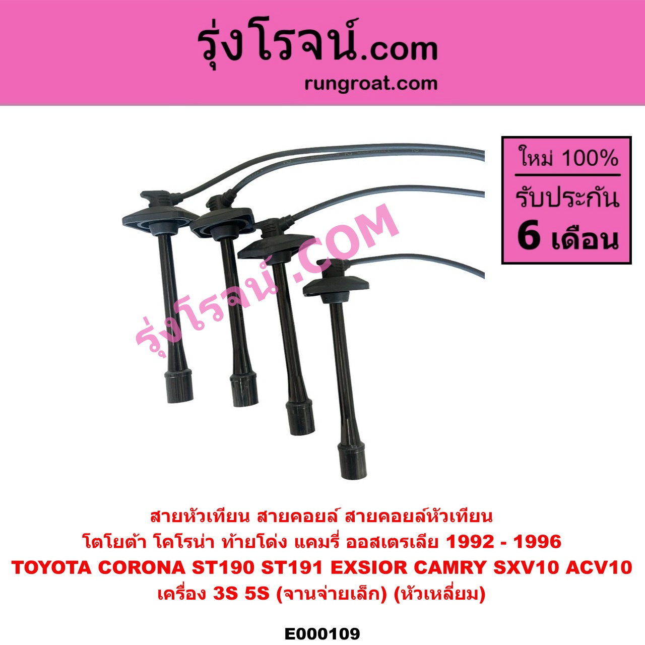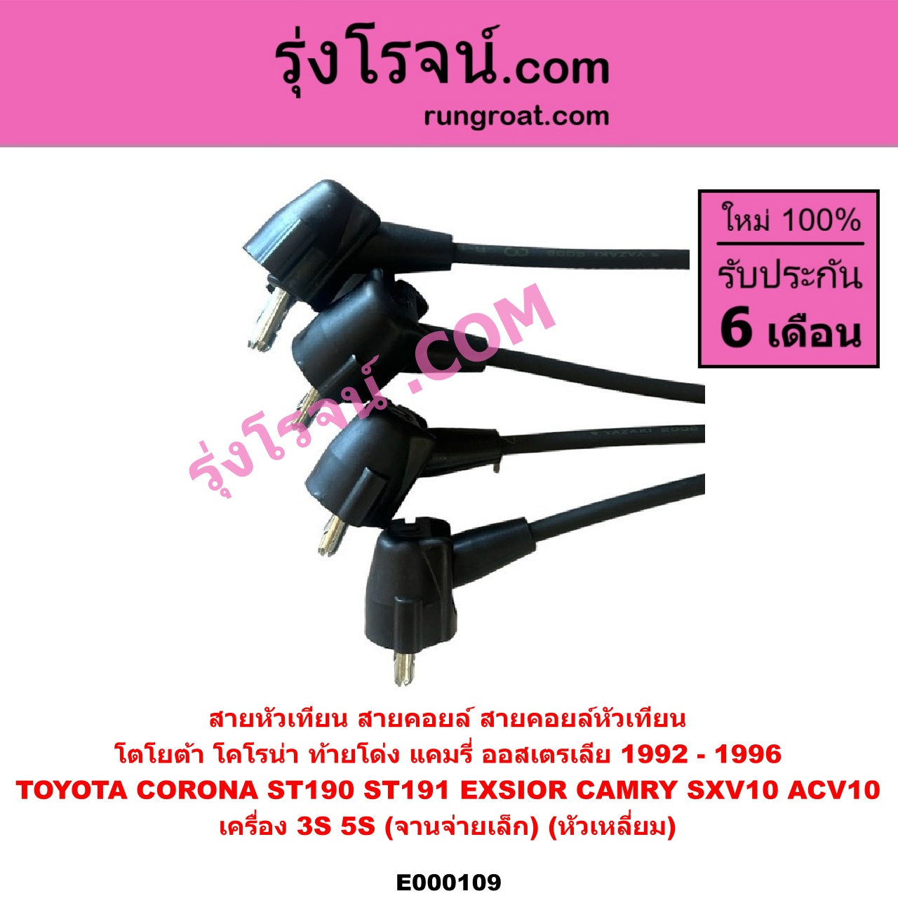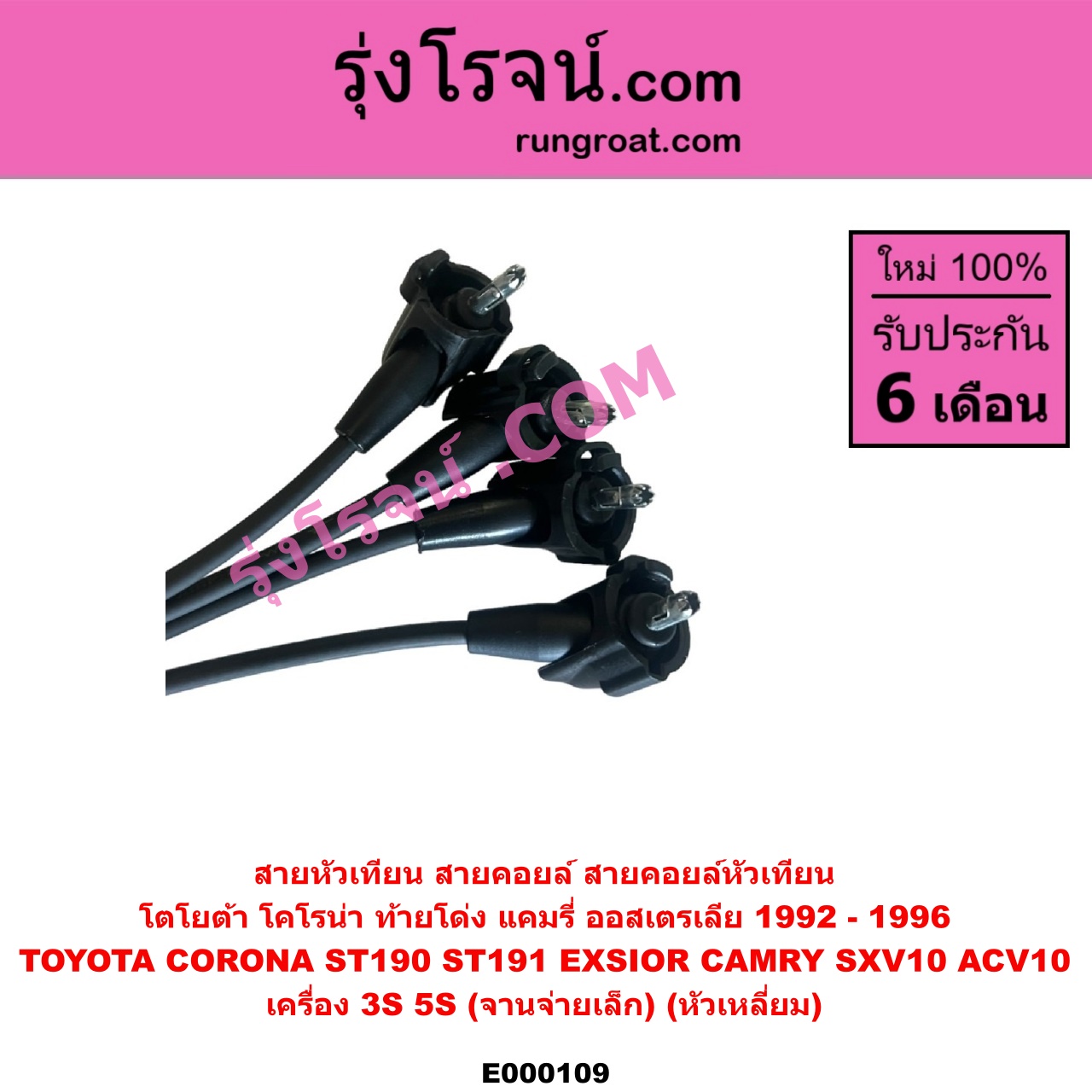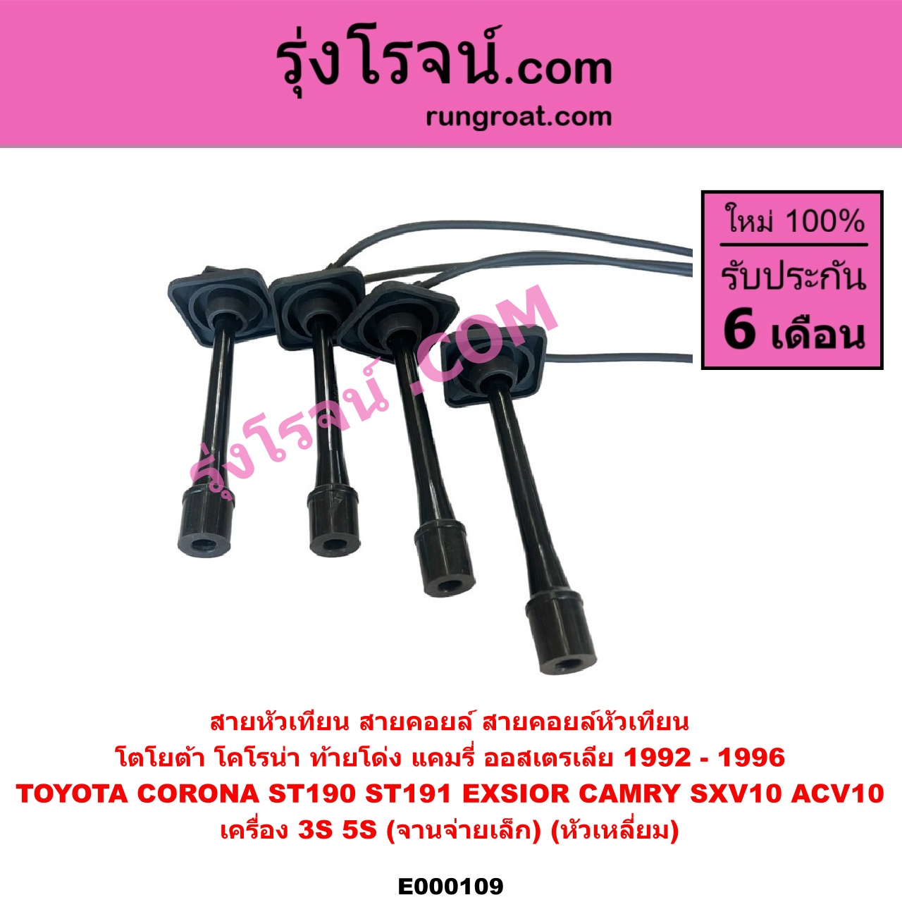Home » สินค้า » E000109 สายหัวเทียน (สายคอยล์, สายคอยล์หัวเทียน) TOYOTA (โตโยต้า) / CAMRY (คัมรี่ 92/94) (ออสเตรเลีย) , CORONA (โคโรน่า ST190/191/EXSIOR) (ท้ายโด่ง) เครื่อง 3S, 5S (จานจ่ายเล็ก) (หัวเหลี่ยม)