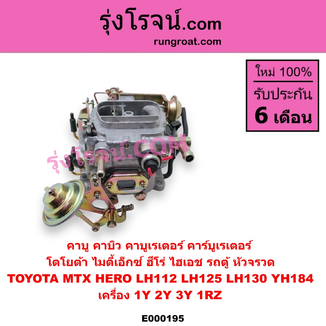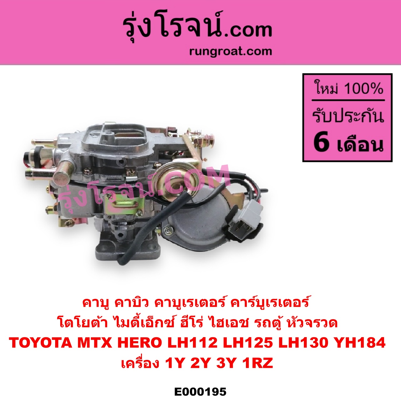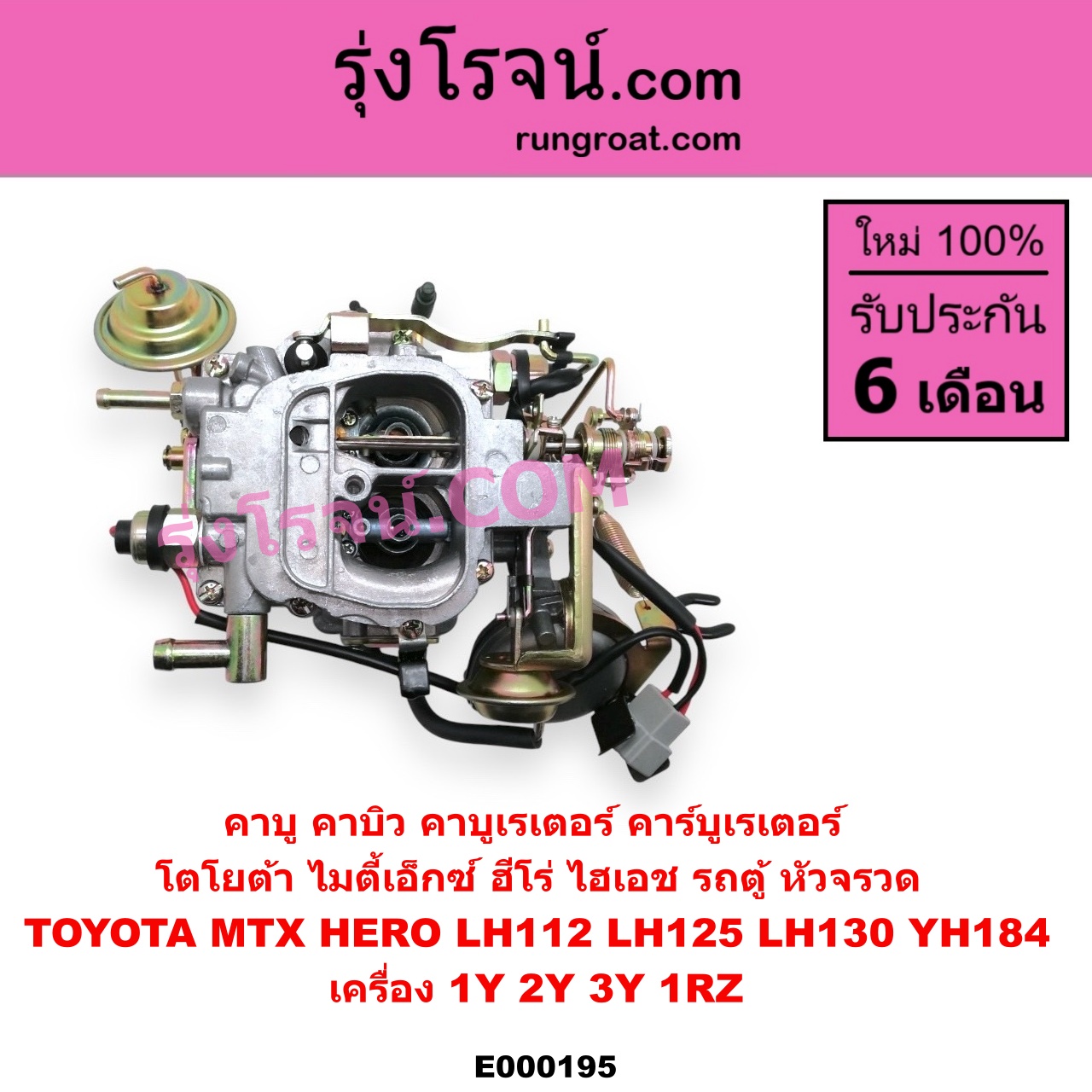 E000195 คาบู คาบิว คาบูเรเตอร์ คาร์บูเรเตอร์ TOYOTA โตโยต้า HERO ฮีโร่ 1886 1888) LN50 LN56 HIACE ไฮเอซ LH112 LH125 LH130 YH184 รถตู้หัวจรวด 3L 5L MTX ไมตี้เอ็กซ์ 1988 – 1996 เครื่อง 1Y 2Y 3Y 1RZ