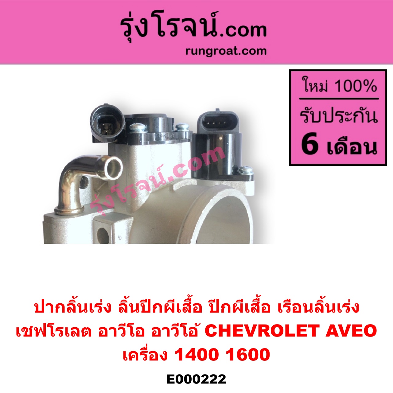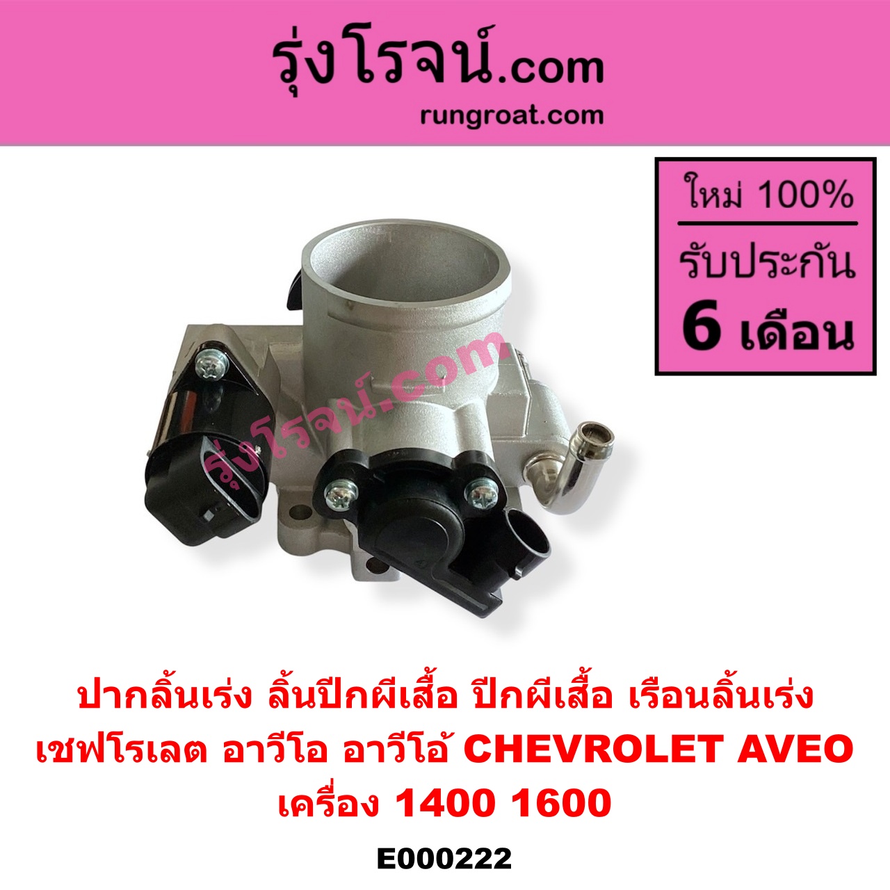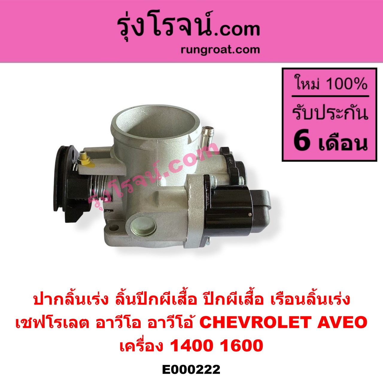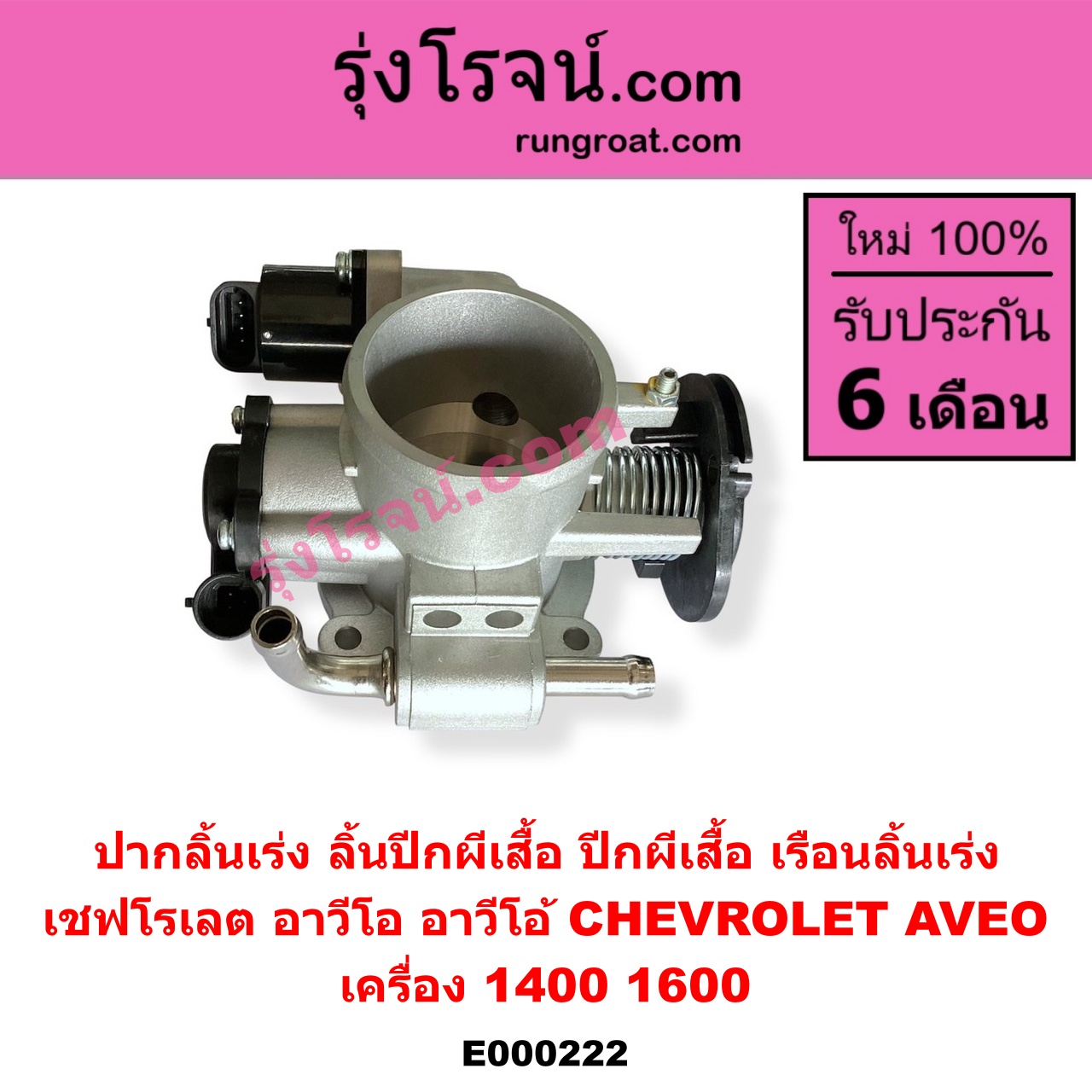 | E000222 | ปากลิ้นเร่ง (ลิ้นปีกผีเสื้อ, ปีกผีเสื้อ, เรือนลิ้นเร่ง) | CHEVROLET (เชฟโรเลต) / AVEO (อาวีโอ อาวีโอ้ 2002) | เครื่อง 1400, 1600 | ไต้หวัน (ใหม่) |