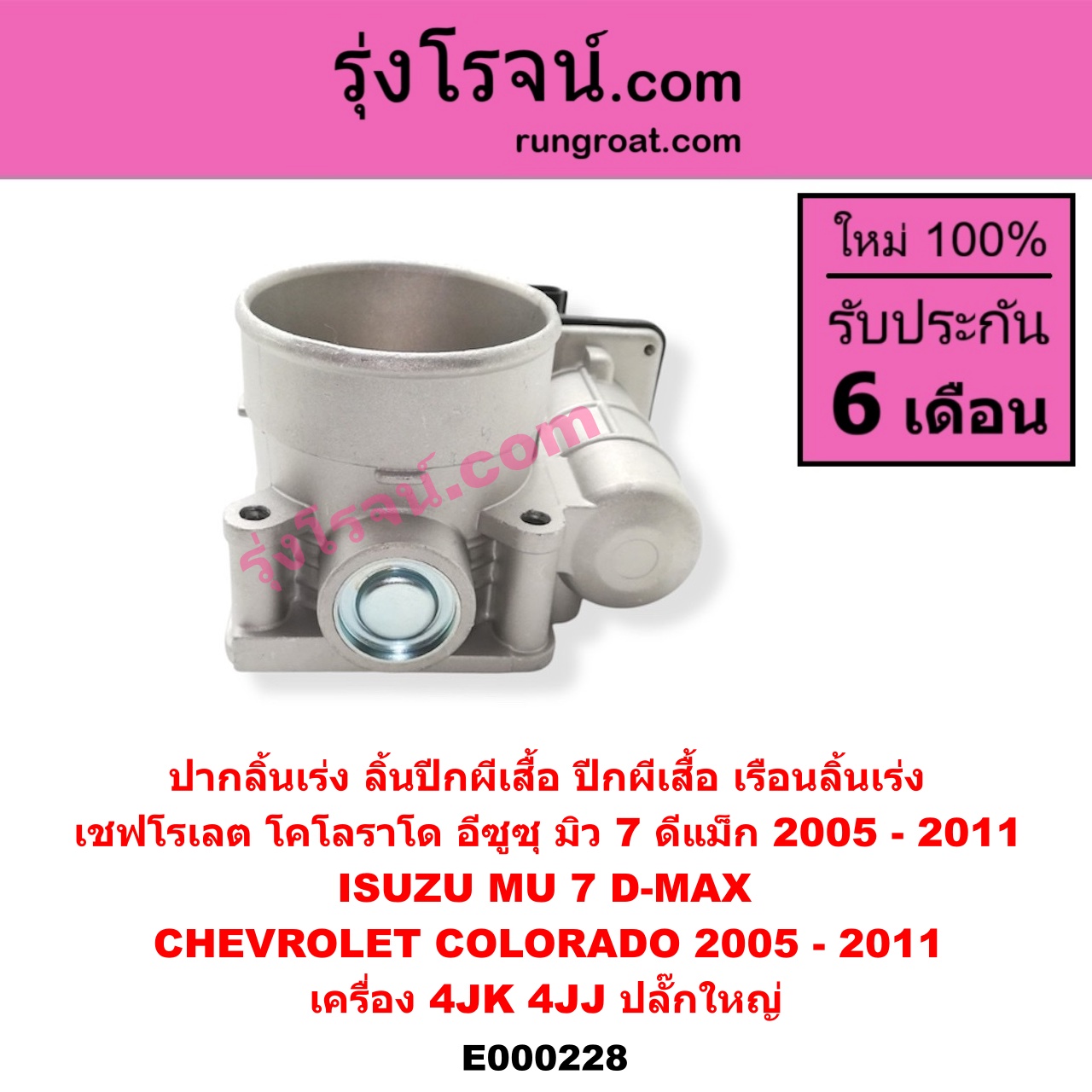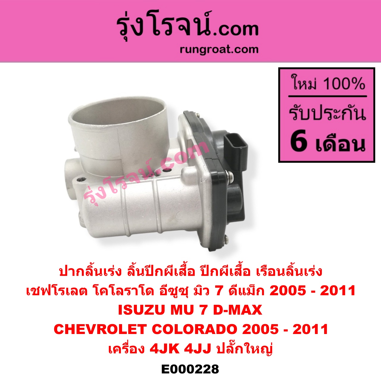 | E000228 | ปากลิ้นเร่ง (ลิ้นปีกผีเสื้อ, ปีกผีเสื้อ, เรือนลิ้นเร่ง) | CHEVROLET (เชฟโรเลต) / COLORADO (โคโลราโด 2005 – 2011) (ตา 2 ชั้น / ตาชั้นเดียว) , ISUZU (อีซูซุ) / D-MAX (ดีแม็ก ดีแม็ค DMAX 2003 – 2011) (รุ่นแรก) , ISUZU (อีซูซุ) / MU 7 (มิว 7 2005 – 2013) |