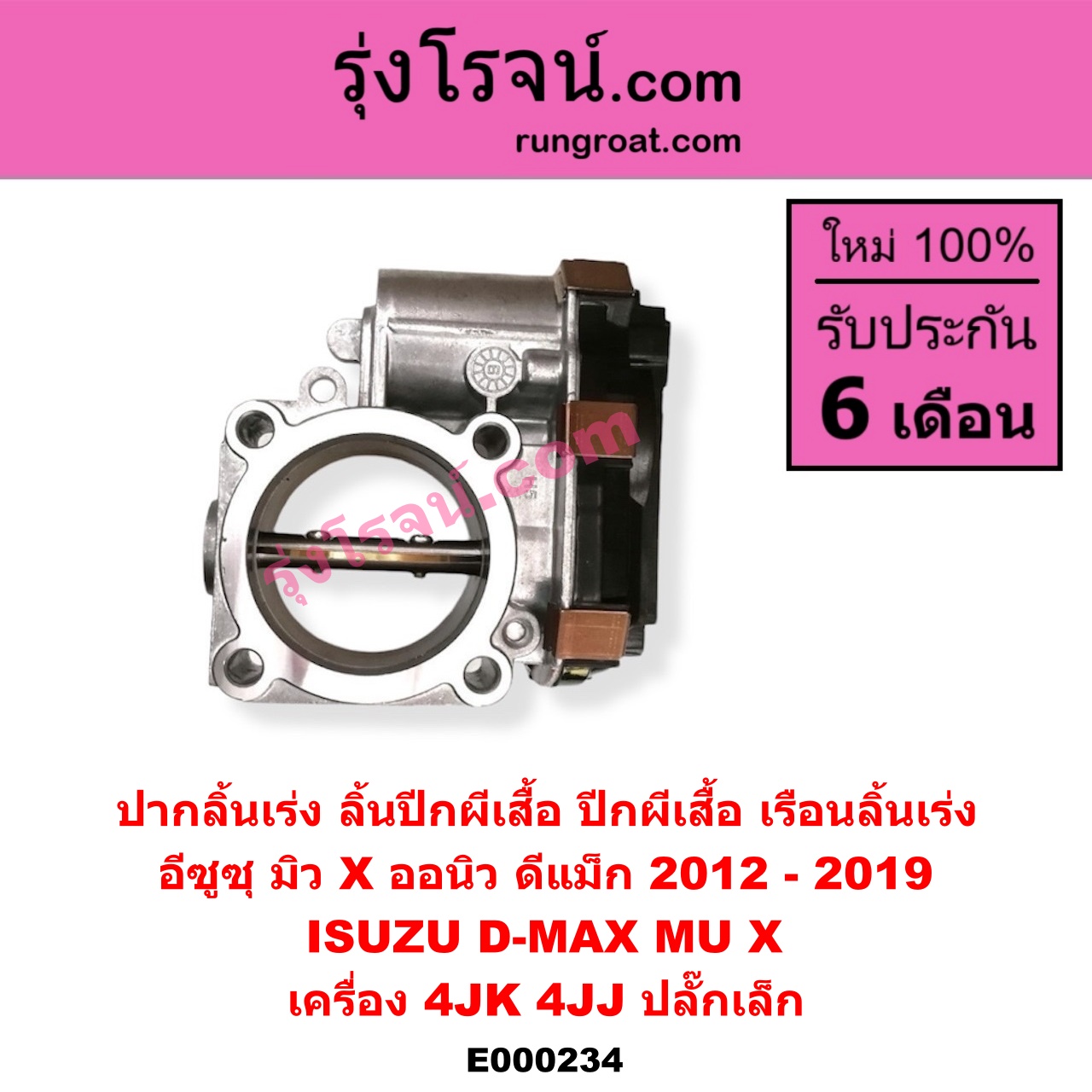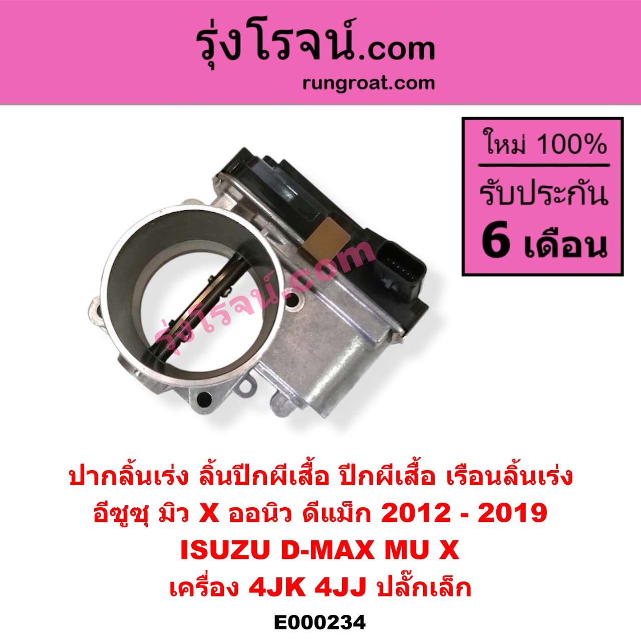 E000234 ปากลิ้นเร่ง (ลิ้นปีกผีเสื้อ, ปีกผีเสื้อ, เรือนลิ้นเร่ง) ISUZU (อีซูซุ) / D-MAX (ออนิว ออลนิว ดีแม็ก ดีแม็ค DMAX 2012 / 2016) (วีครอส V-CROSS / บลูเพาเวอร์ / 1.9) , MU X (มิว X 14) เครื่อง 4JK, 4JJ 2.5 3.0 2500 3000 (ปลั๊กเล็ก) (ปี 2012 – 2019)