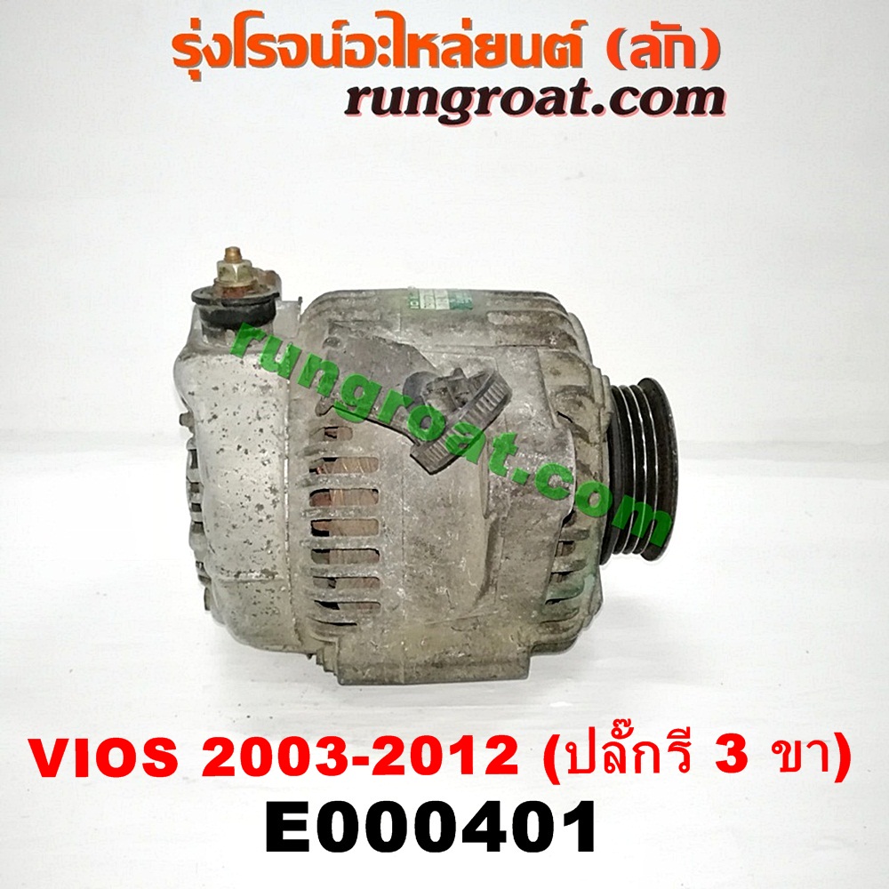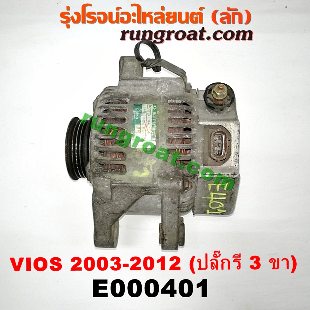 Home » สินค้า » E000401 ไดชาร์ท (ไดชาร์จ) TOYOTA (โตโยต้า) / VIOS (วีออส 03/06) (รุ่นแรก) , VIOS (วีออส 08/10) (รุ่น 2) , YARIS (ยาริส 06/08/10) (รุ่นแรก) ปลั๊กรี 3 ขา