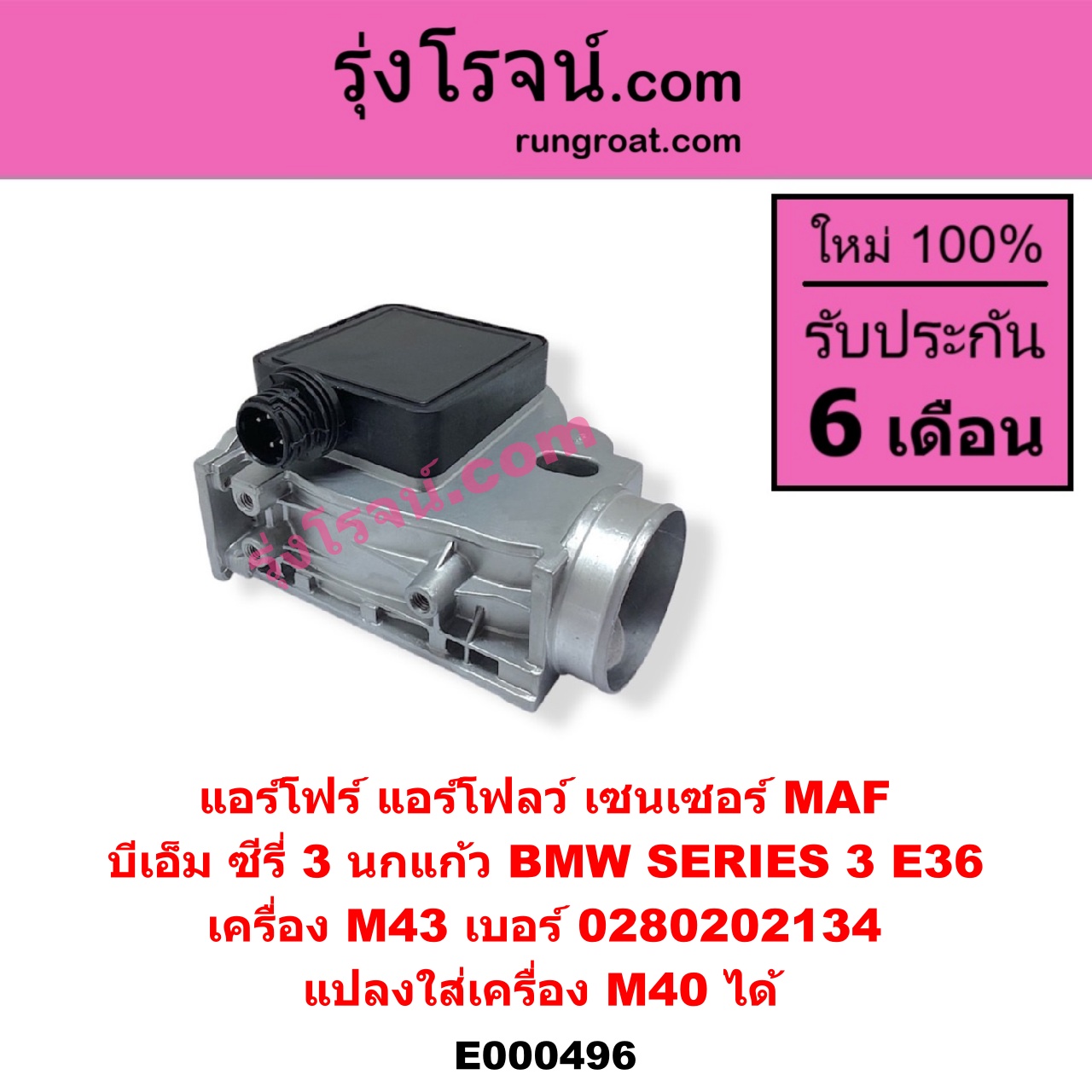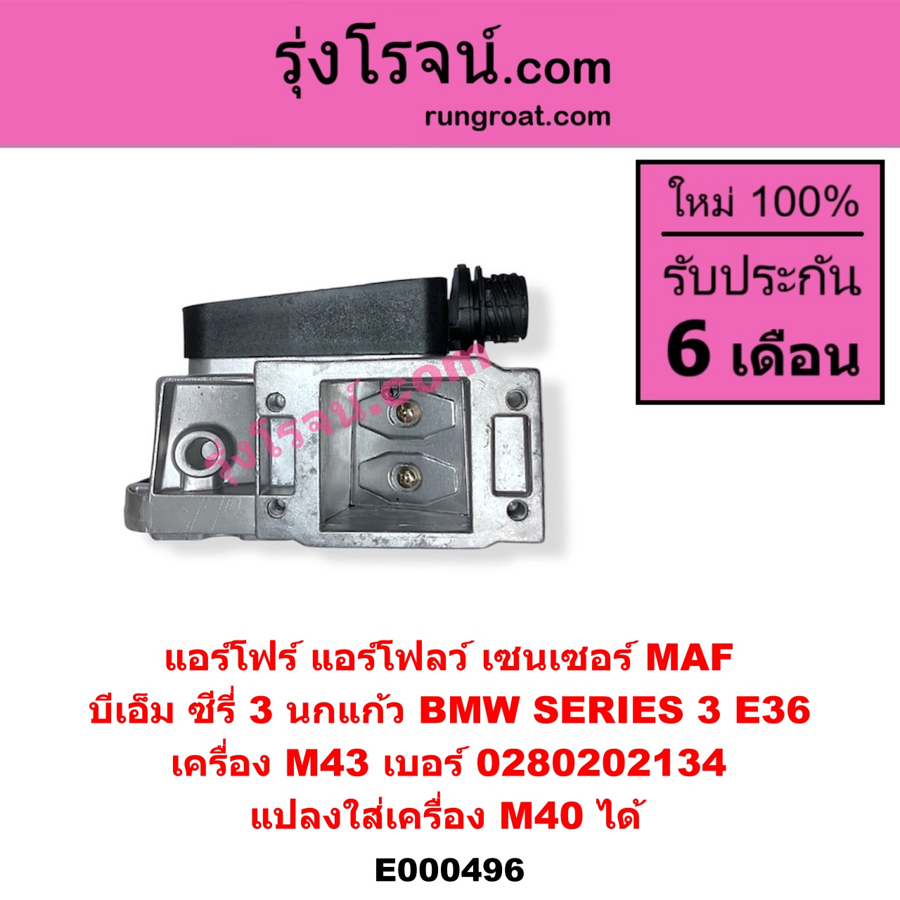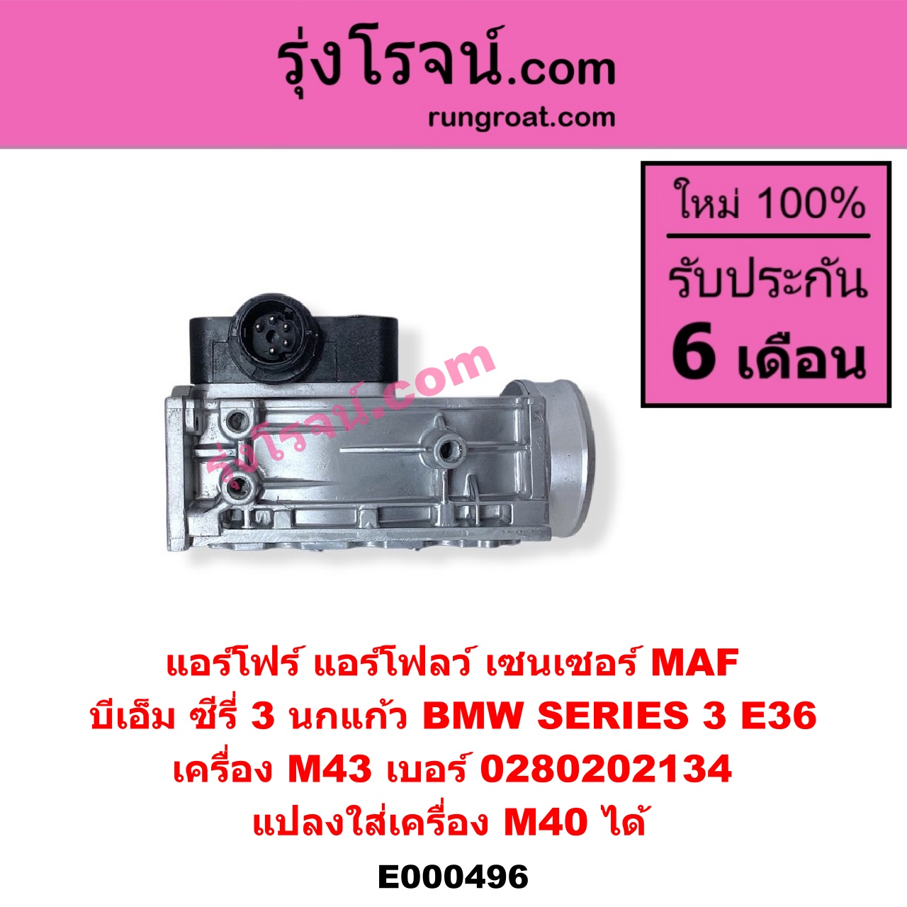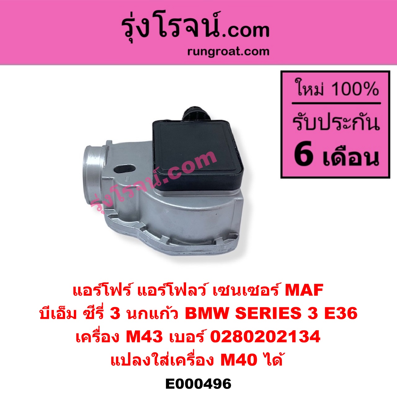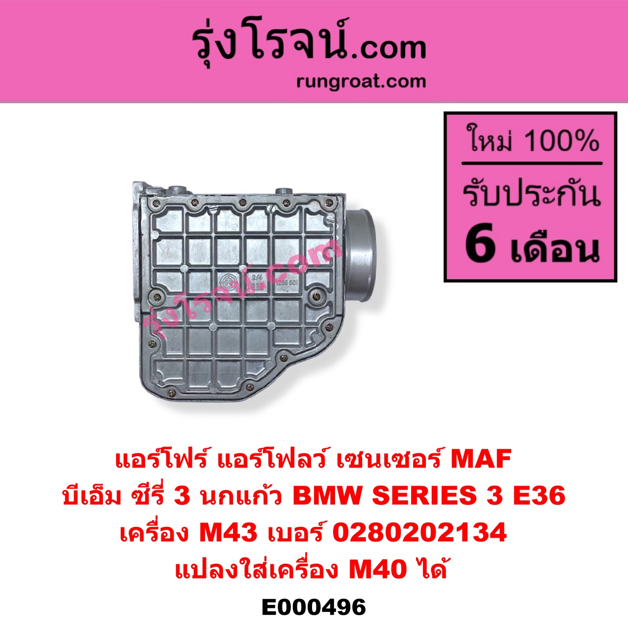 | E000496 | แอร์โฟร์ (แอร์โฟลว์, เซนเซอร์ MAF) | BMW (บีเอ็ม) / SERIES 3 (ซีรี่ 3 E36) (นกแก้ว) | เครื่อง M43 (เบอร์ 0280202134) (แปลงใส่เครื่อง M40 ได้) | ไต้หวัน (ใหม่) |