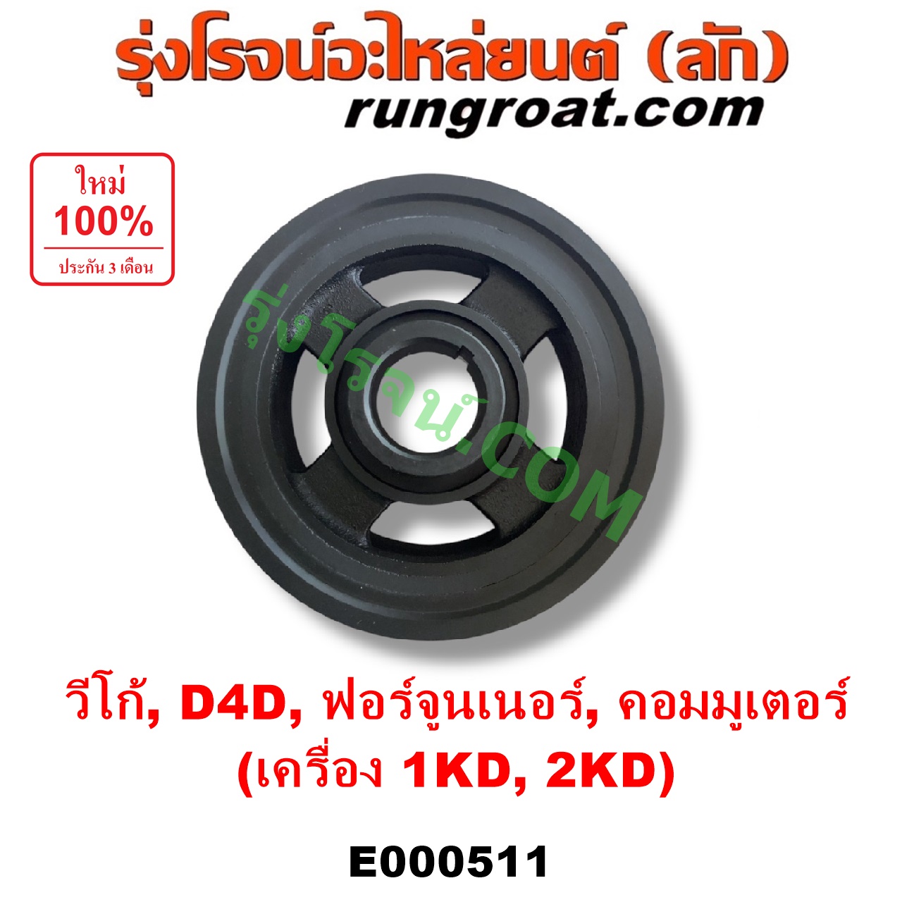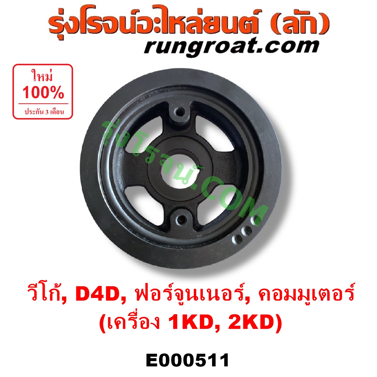 E000511 มู่เล่หน้าเครื่อง (มู่เล่ย์หน้าเครื่อง, มู่เล่ข้อเหวี่ยง) TOYOTA (โตโยต้า) / COMMUTER (คอมมิวเตอร์ 05/09/12/14) , FORTUNER (ฟอร์จูนเนอร์ 05/08/12) (รุ่นแรก) , SPORTRIDER (สปอร์ตไรเดอร์) , TIGER/TIGER D4D (ไทเกอร์ / ไทเกอร์ ดีโฟร์ดี) , VIGO (วีโก้ 04/08/11) เครื่อง 1KD, 2KD