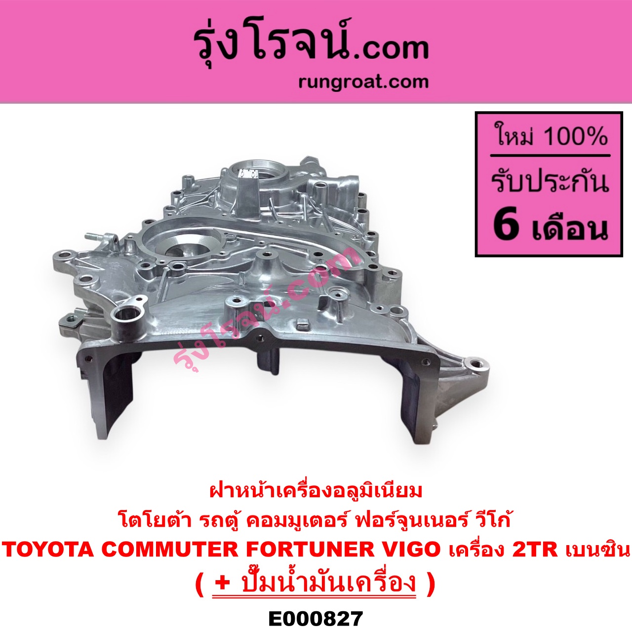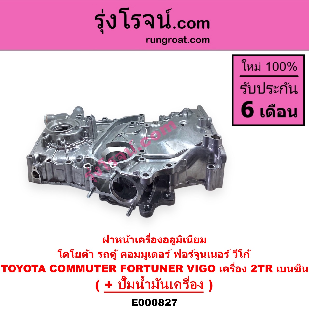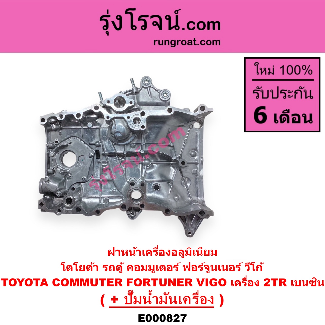| E000827 | ฝาหน้าเครื่องอลูมิเนียม + ปั๊มน้ำมันเครื่อง | TOYOTA (โตโยต้า) / COMMUTER (คอมมิวเตอร์ 05/09/12/14) , TOYOTA (โตโยต้า) / FORTUNER (ฟอร์จูนเนอร์ 05/08/12) (รุ่นแรก) , TOYOTA (โตโยต้า) / VIGO (วีโก้ 04/08/11) |