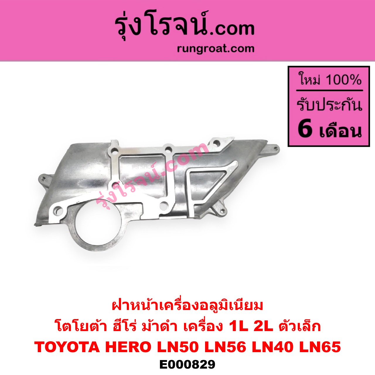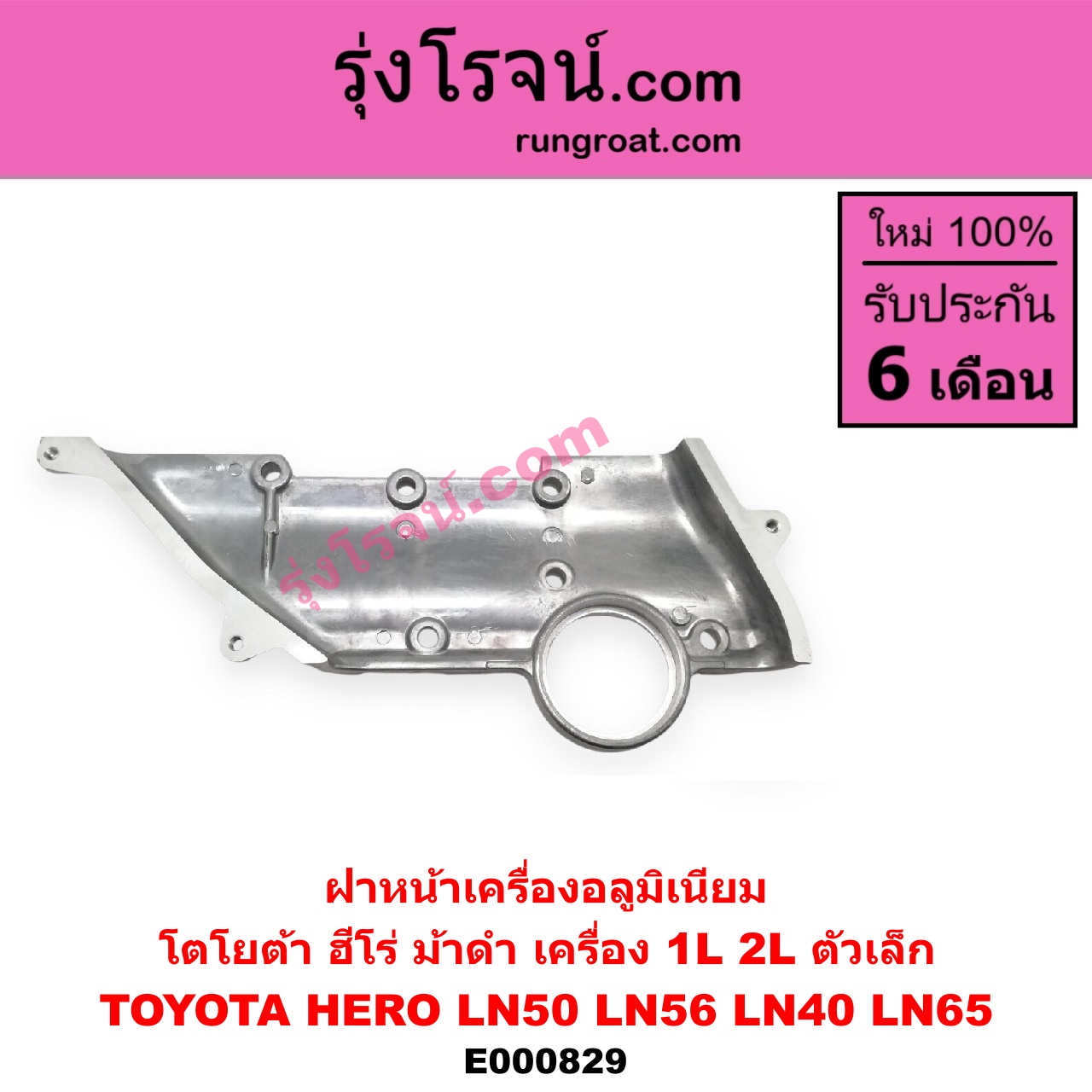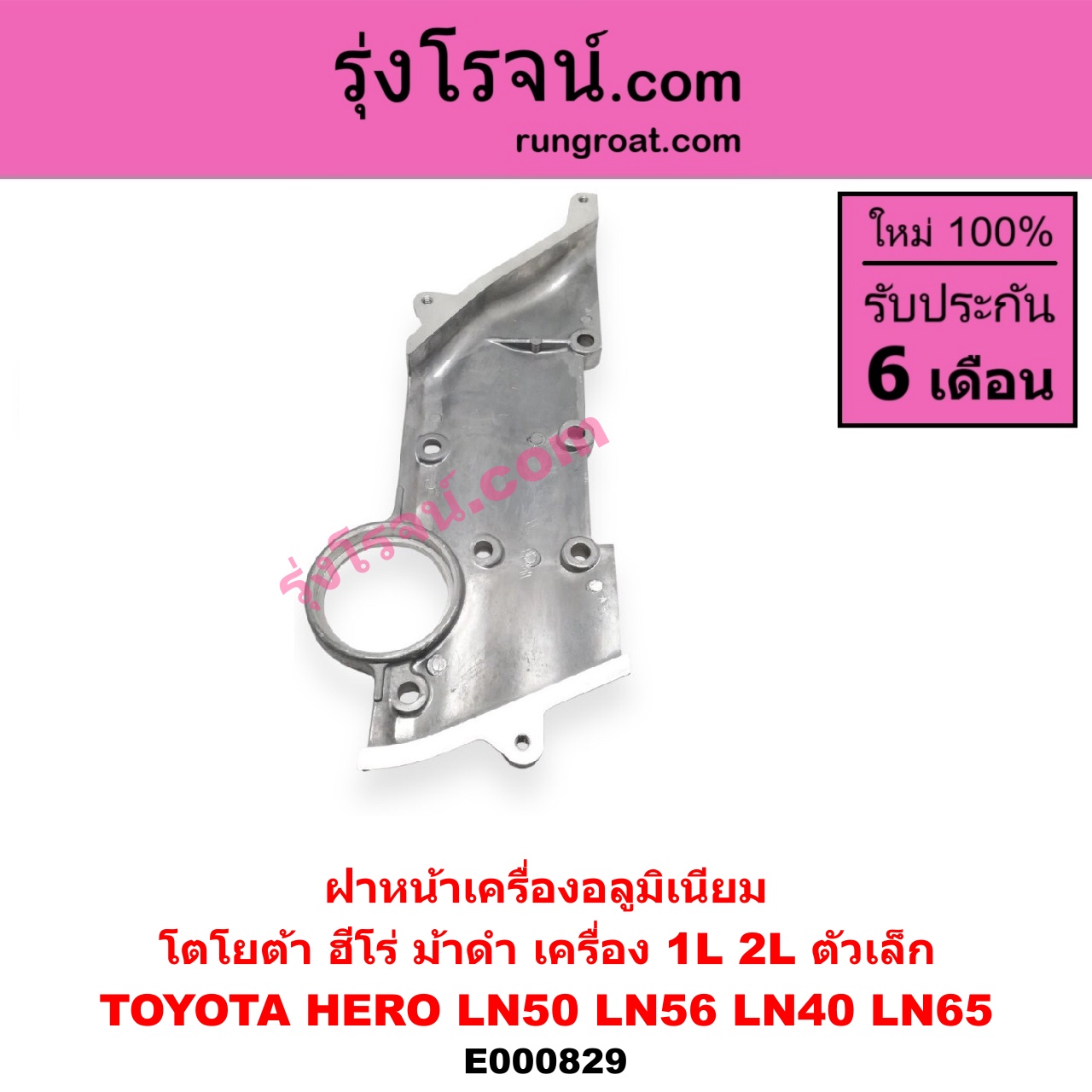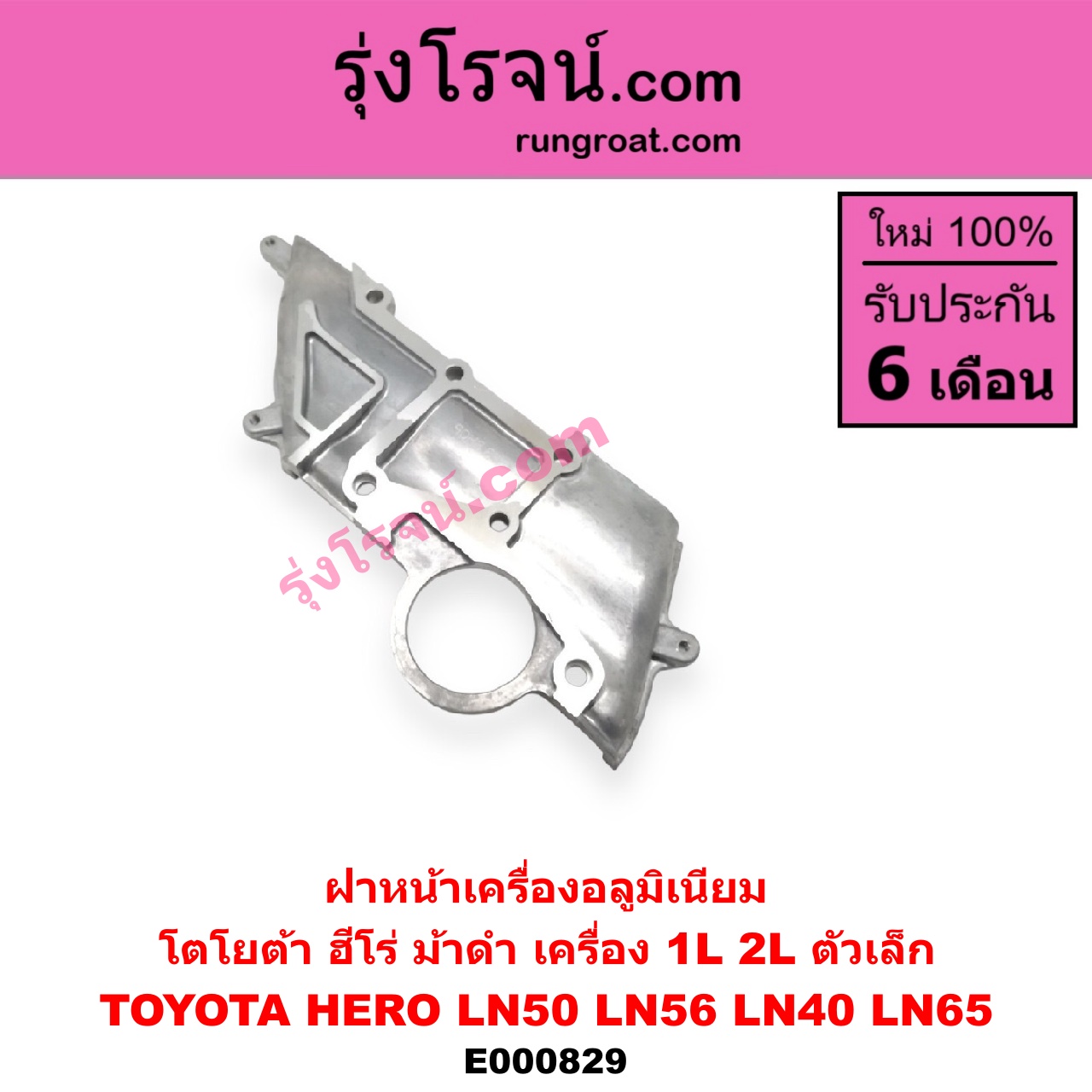 | E000829 | ฝาหน้าเครื่องอลูมิเนียม | TOYOTA (โตโยต้า) / HERO (ฮีโร่ 1886 / 1888) (LN50, LN56) , TOYOTA (โตโยต้า) / LN40 (ม้าดำ) , TOYOTA (โตโยต้า) / LN65 (ฮีโร่ 4X4) |