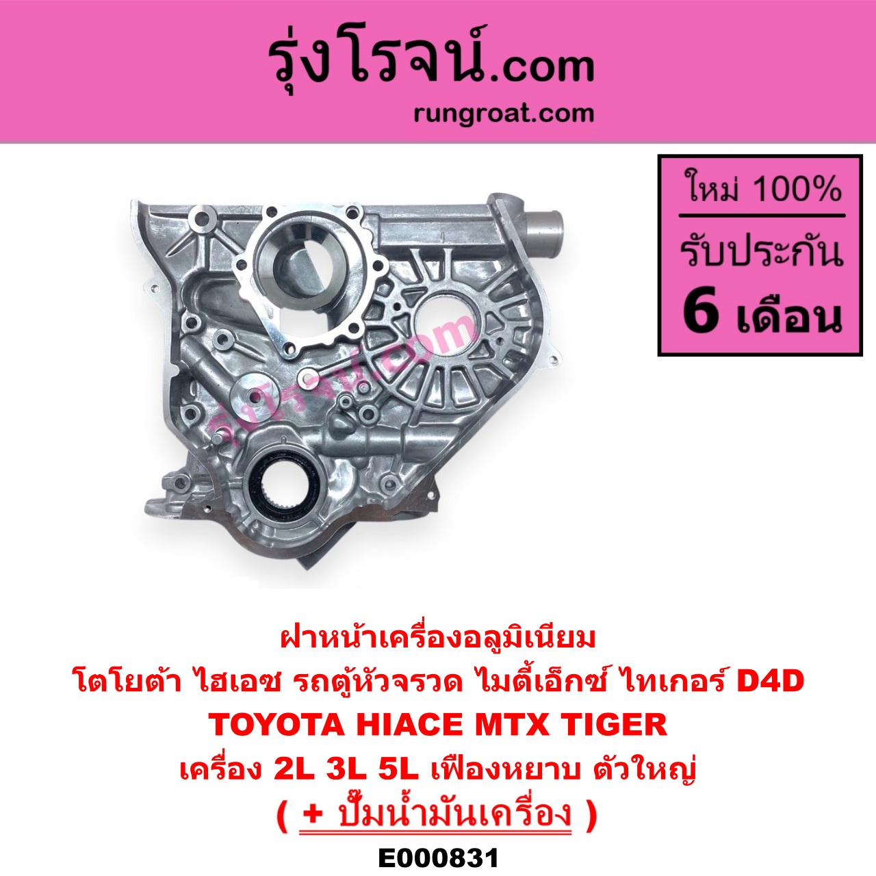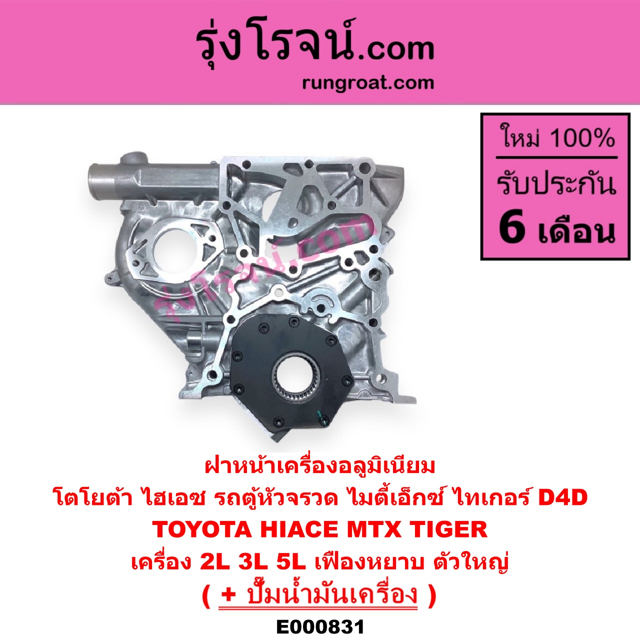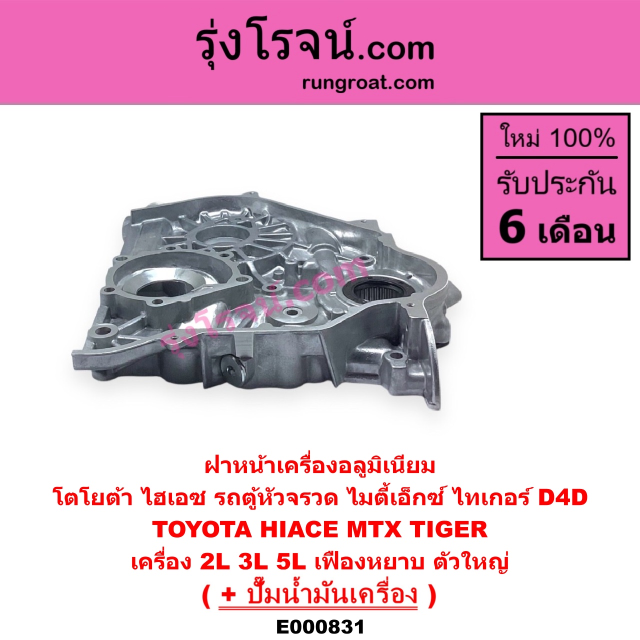 E000831 ฝาหน้าเครื่องอลูมิเนียม + ปั๊มน้ำมันเครื่อง TOYOTA โตโยต้า HIACE ไฮเอซ LH112 125 130 184 รถตู้หัวจรวด 3L MTX ไมตี้ X 92 94 96 TIGER TIGER D4D ไทเกอร์ ไทเกอร์ ดีโฟร์ดี เครื่อง 2L 3L 5L เฟืองหยาบ ตัวใหญ่
