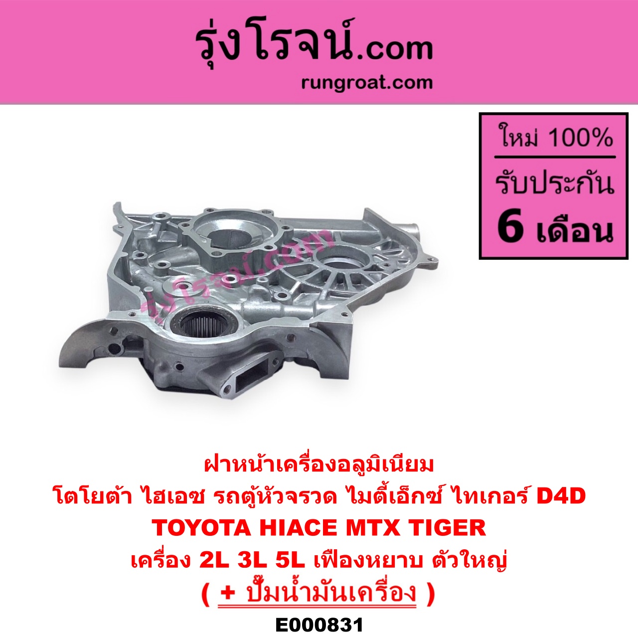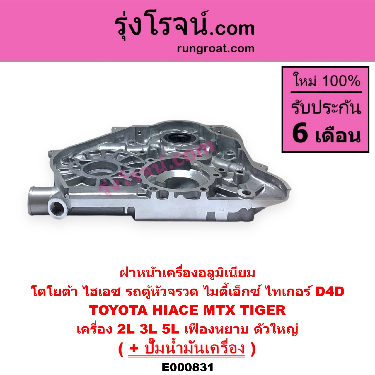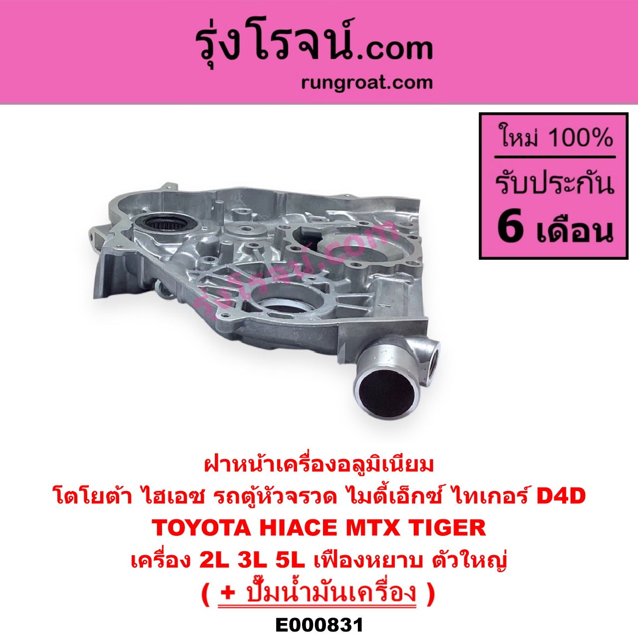 E000831 ฝาหน้าเครื่องอลูมิเนียม + ปั๊มน้ำมันเครื่อง TOYOTA โตโยต้า HIACE ไฮเอซ LH112 125 130 184 รถตู้หัวจรวด 3L MTX ไมตี้ X 92 94 96 TIGER TIGER D4D ไทเกอร์ ไทเกอร์ ดีโฟร์ดี เครื่อง 2L 3L 5L เฟืองหยาบ ตัวใหญ่