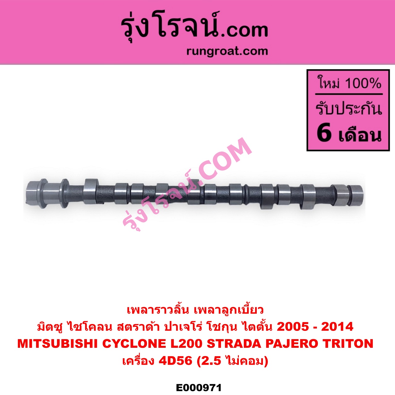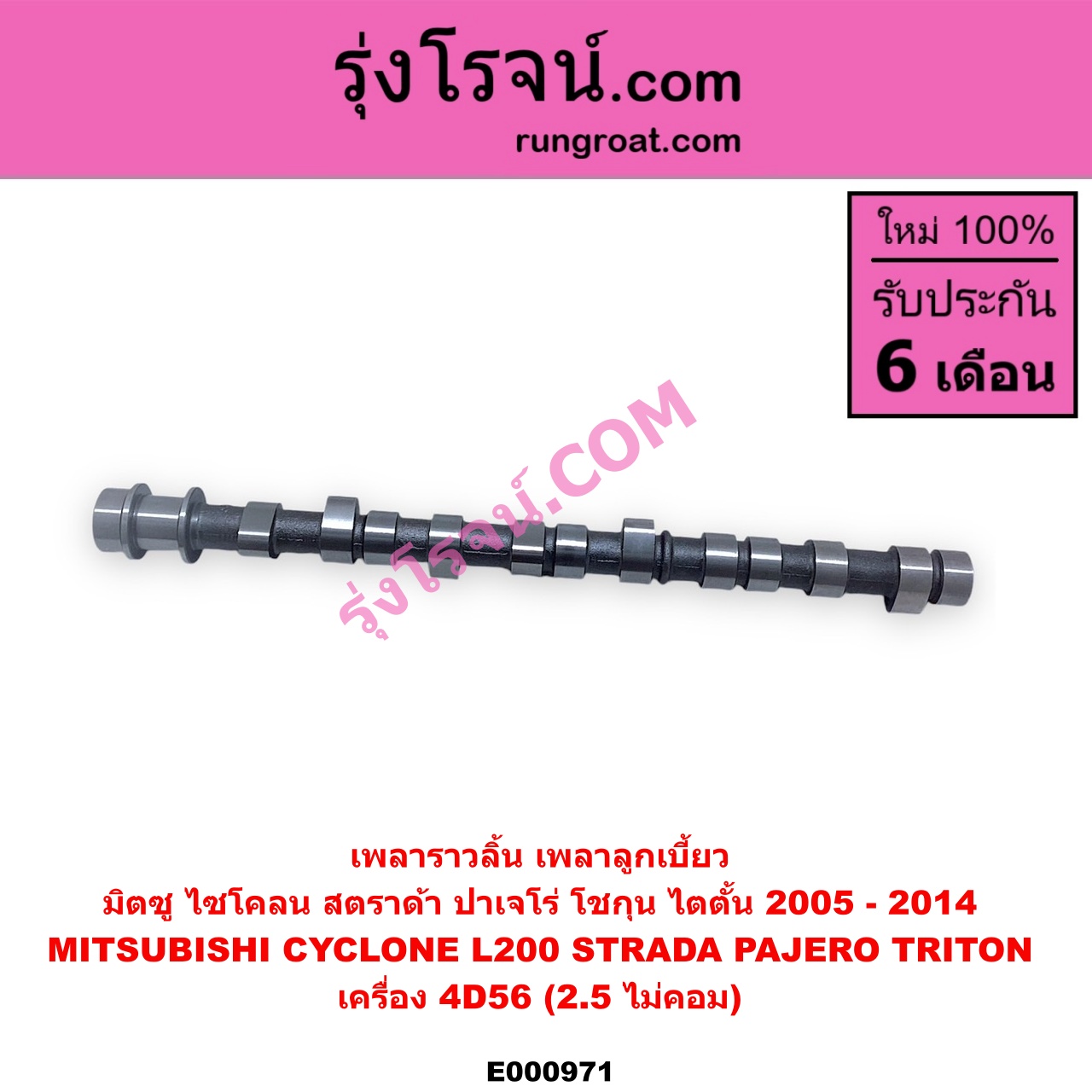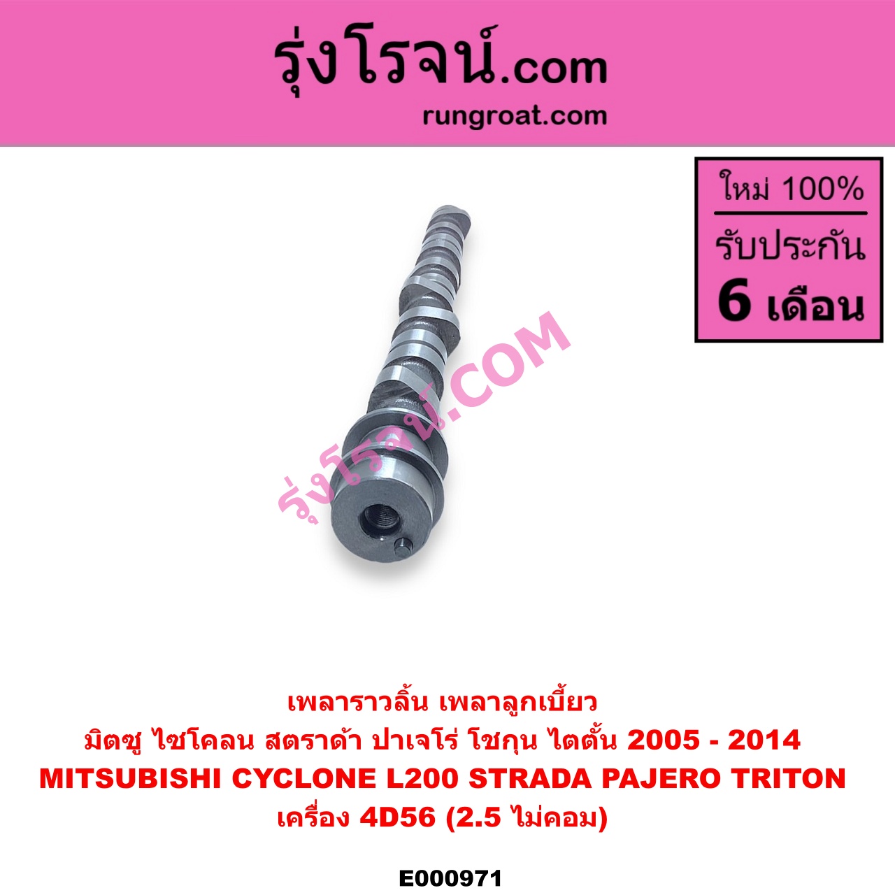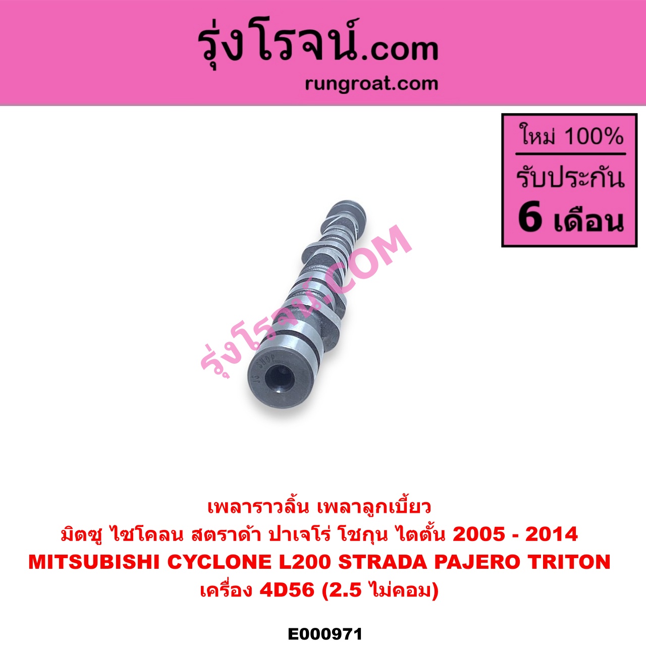 E000971 เพลาราวลิ้น (เพลาลูกเบี้ยว) MITSUBISHI (มิตซู) / CYCLONE (ไซโคลน 92/94) , PAJERO (ปาเจโร่ โชกุน/ตากลม/ตาเหลี่ยม) , STRADA (สตราด้า 97/99/01/05) , TRITON (ไทรทัน 07/09 PLUS) (รุ่นแรก) เครื่อง 4D56 (ไม่คอม)