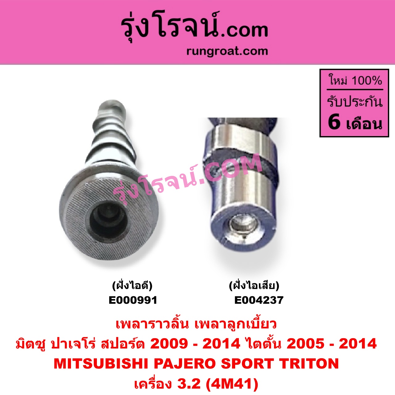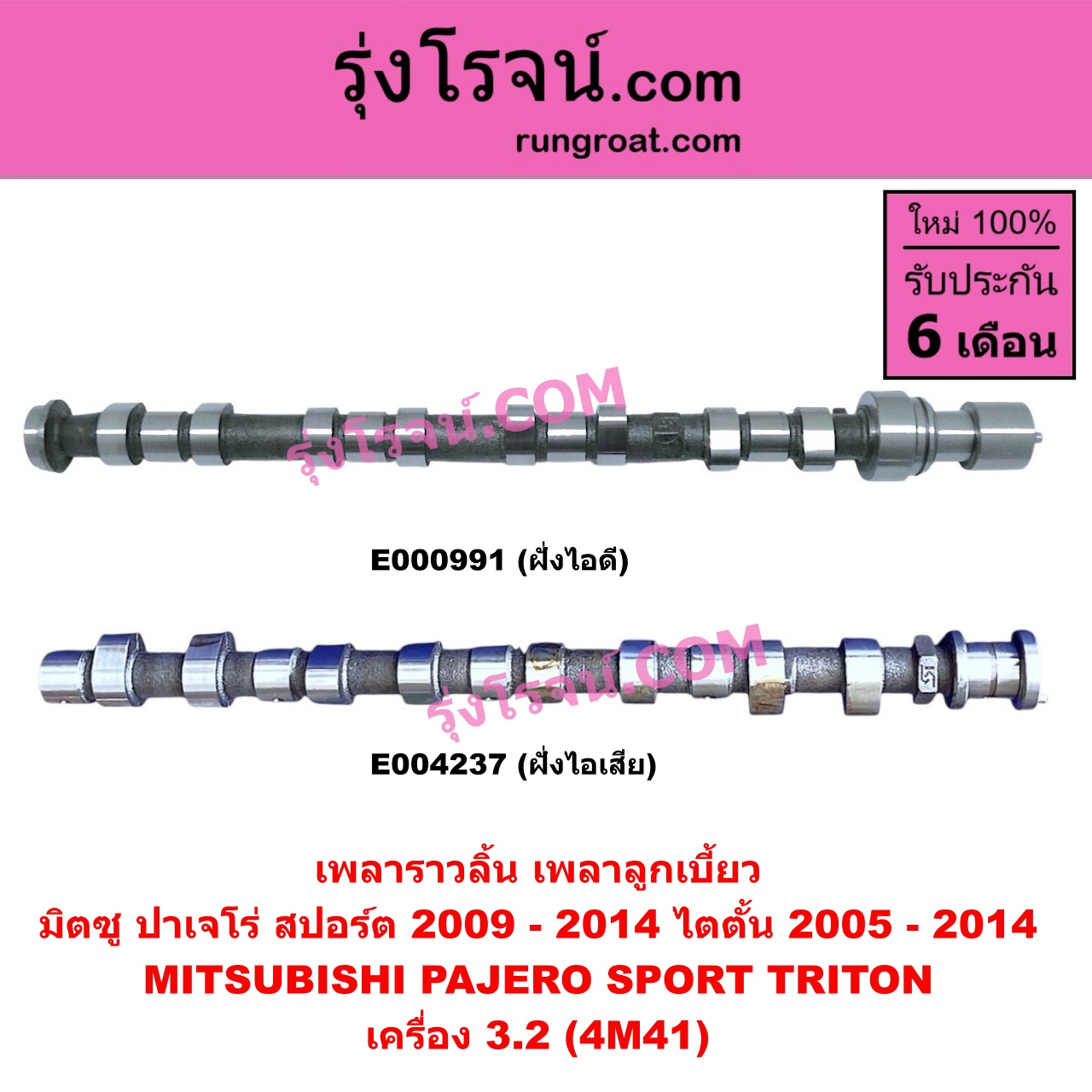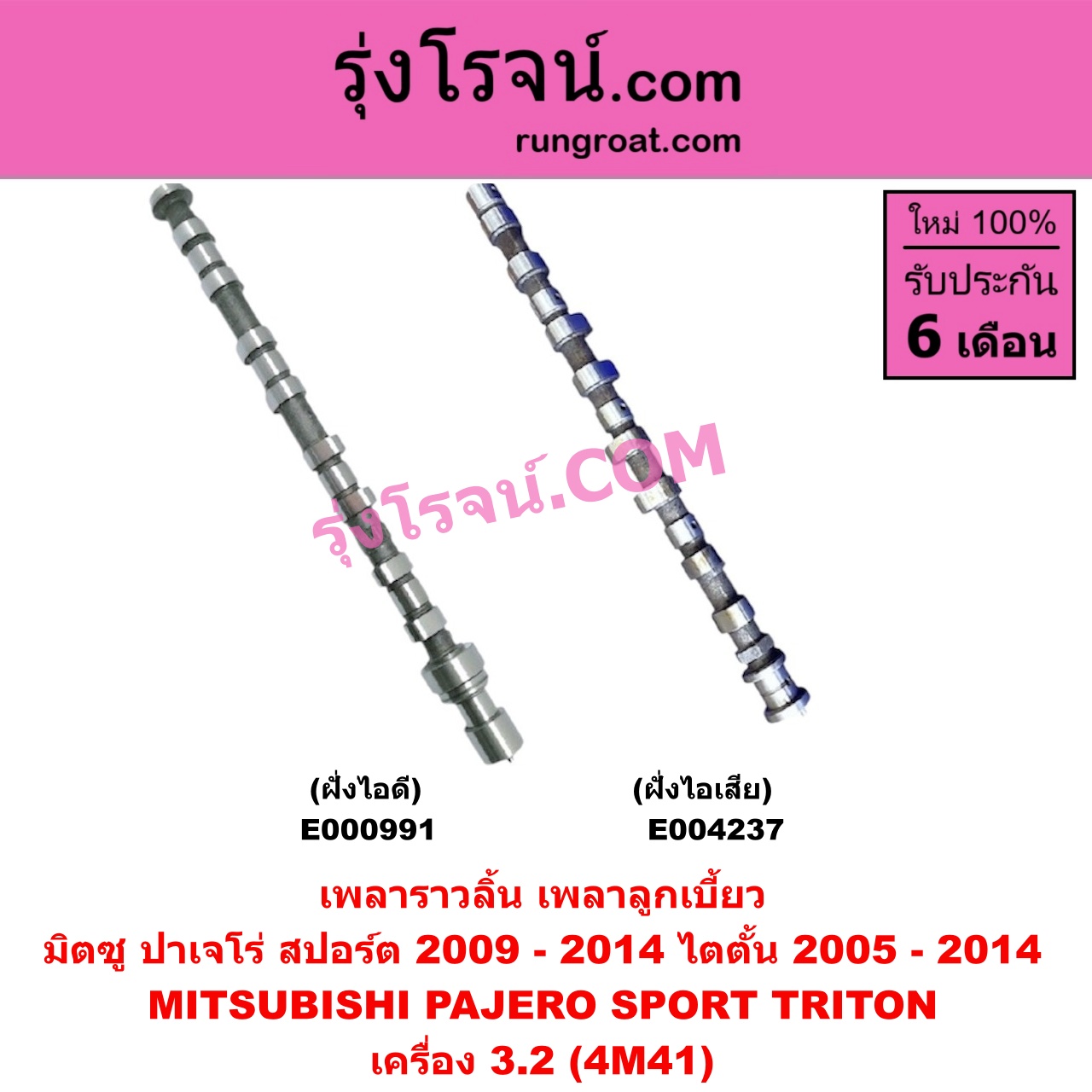 | E000991 | เพลาราวลิ้น (ลูกเบี้ยว) | MITSUBISHI (มิตซู) / PAJERO SPORT (ปาเจโร่ สปอร์ต 2009 – 2014) (รุ่นแรก) , MITSUBISHI (มิตซู) / TRITON (ไทรทัน ไตตั้น 2005 – 2014 PLUS) (รุ่นแรก) |