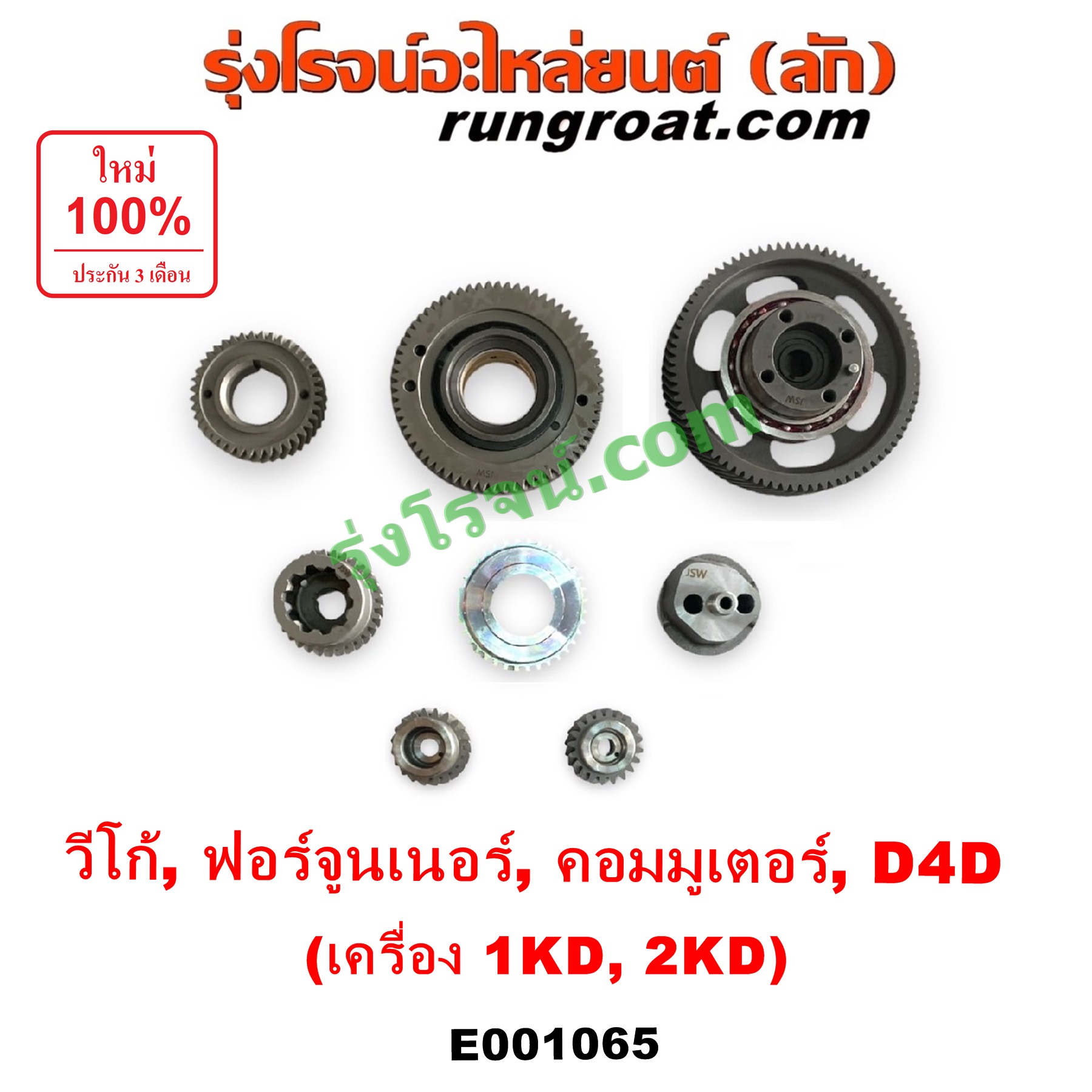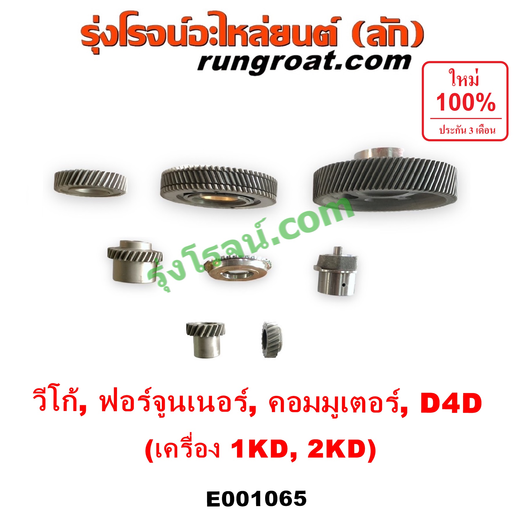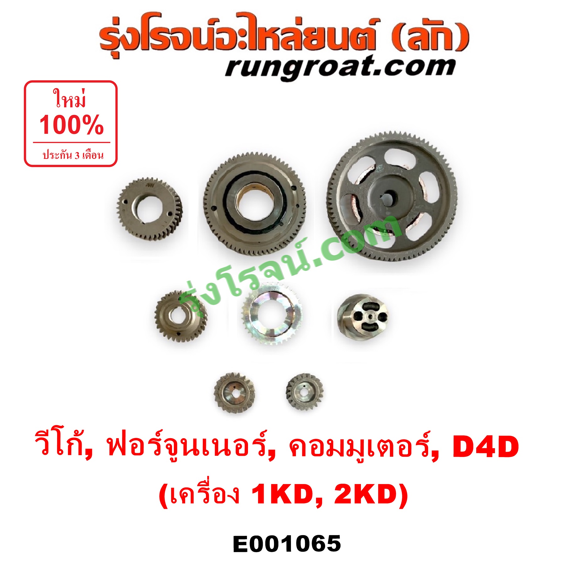 | E001065 | เฟืองหน้าเครื่อง (เฟืองลอย) | TOYOTA (โตโยต้า) / COMMUTER (คอมมิวเตอร์ 05/09/12/14) , TOYOTA (โตโยต้า) / FORTUNER (ฟอร์จูนเนอร์ 05/08/12) (รุ่นแรก) , TOYOTA (โตโยต้า) / TIGER/TIGER D4D (ไทเกอร์ / ไทเกอร์ ดีโฟร์ดี) , TOYOTA (โตโยต้า) / VIGO (วีโก้ 04/08/11) |