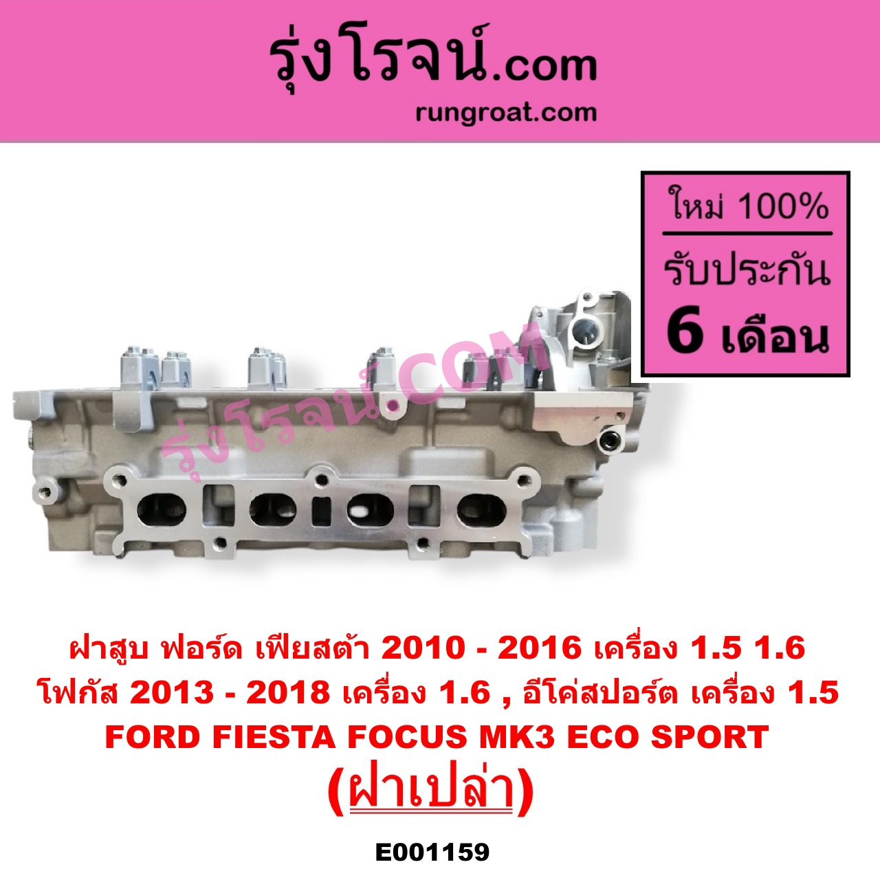 | E001159 | ฝาสูบ | FORD (ฟอร์ด) / ECO SPORT (อีโค่สปอร์ต เอคโค่สปอร์ต) (2012 – 2016) , FORD (ฟอร์ด) / FIESTA (เฟียสต้า 2010 – 2016) (4ประตู/5ประตู) , FORD (ฟอร์ด) / FOCUS (โฟกัส 2013 – 2018) (รุ่น 2) (MK3, C346) |