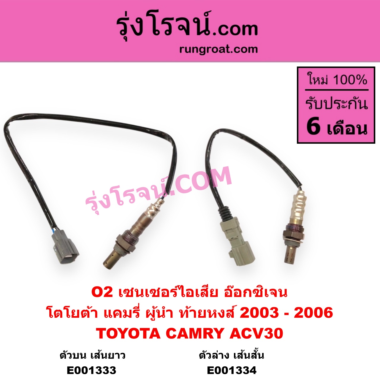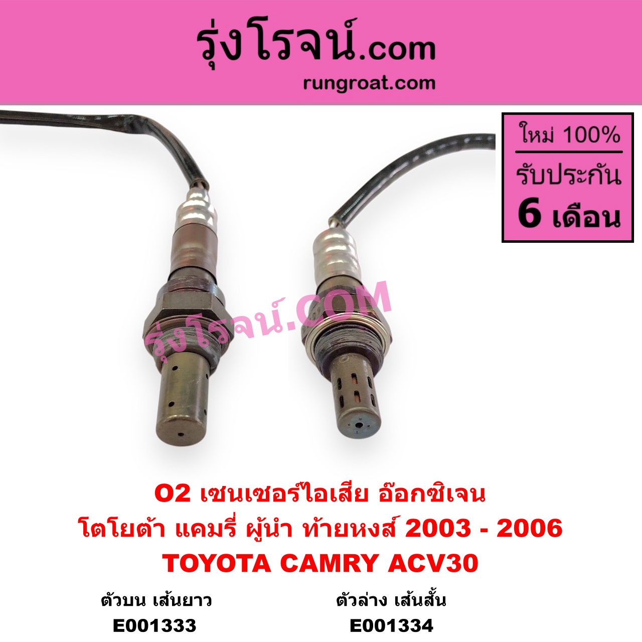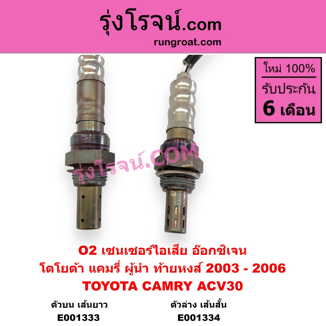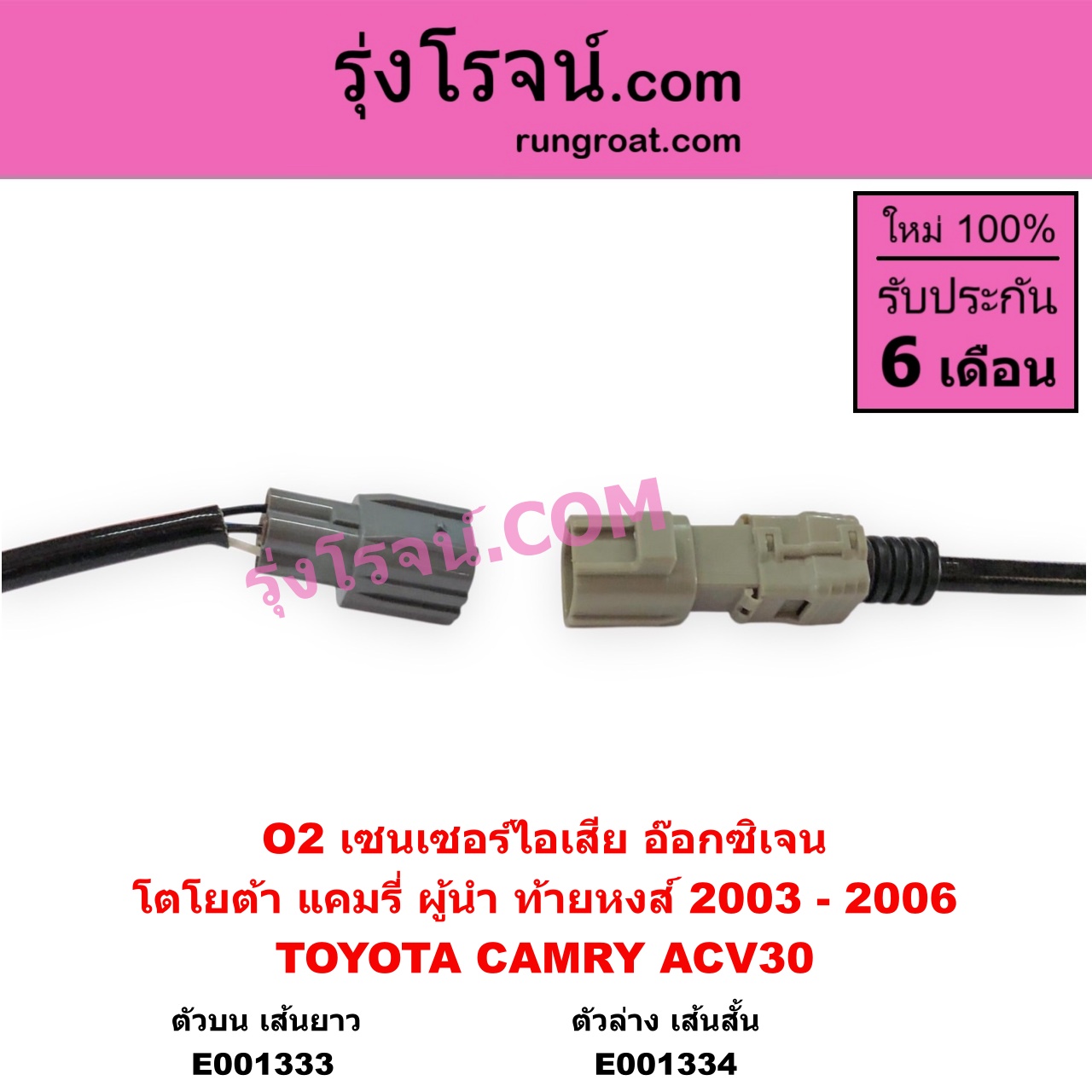 | E001334 | เซนเซอร์ไอเสีย (อ๊อกซิเจน) | TOYOTA (โตโยต้า) / CAMRY (คัมรี่ แคมรี่ 2003 – 2006) (ผู้นำ, ท้ายหงส์, ACV30) | ตัวล่าง เส้นสั้น (เบอร์ 89465-33220) | ไต้หวัน (ใหม่) |
