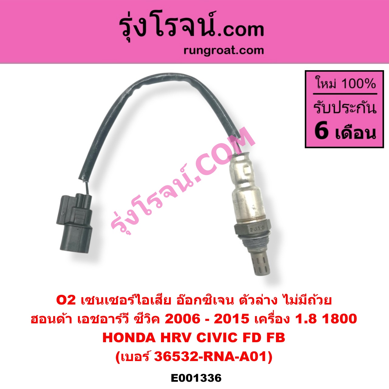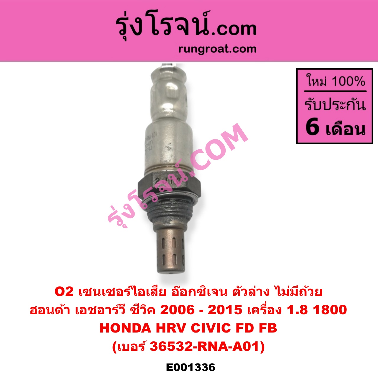 E001336 เซนเซอร์ไอเสีย อ๊อกซิเจน HONDA ฮอนด้า CIVIC ซีวิค 2006 – 2011 FD นางฟ้า CIVIC ซีวิค 2012 – 2015 ไฮบริด FB HRV เอชอาร์วี 2014 – 2020 เครื่อง 1800 ตัวล่าง ไม่มีถ้วย เบอร์ 36532-RNA-A01