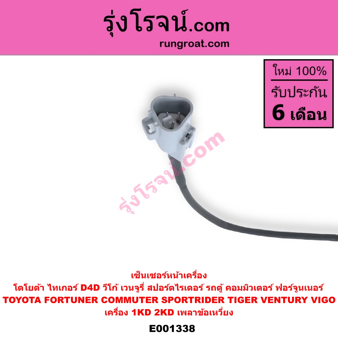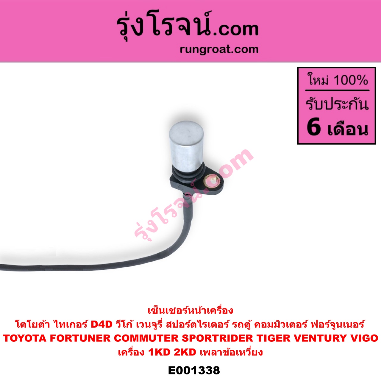 | E001338 | เซ็นเซอร์หน้าเครื่อง (เซ็นเซอร์เพลาข้อเหวี่ยง, เซ็นเซอร์เพลาลูกเบี้ยว) | TOYOTA (โตโยต้า) / COMMUTER (คอมมิวเตอร์ 05/09/12/14) , TOYOTA (โตโยต้า) / FORTUNER (ฟอร์จูนเนอร์ 05/08/12) (รุ่นแรก) , TOYOTA (โตโยต้า) / SPORTRIDER (สปอร์ตไรเดอร์) , TOYOTA (โตโยต้า) / TIGER/TIGER D4D (ไทเกอร์ / ไทเกอร์ ดีโฟร์ดี) , TOYOTA (โตโยต้า) / VENTURY (เวนจูรี่) , TOYOTA (โตโยต้า) / VIGO (วีโก้ 04/08/11) |