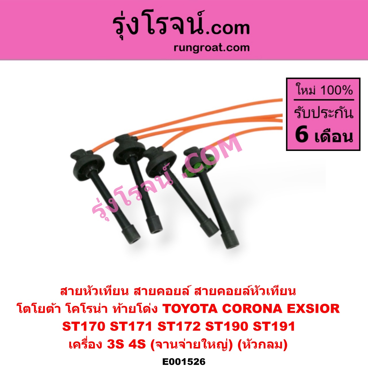 Home » สินค้า » E001526 สายหัวเทียน (สายคอยล์, สายคอยล์หัวเทียน) TOYOTA (โตโยต้า) / CORONA (โคโรน่า ST170/172) , CORONA (โคโรน่า ST190/191/EXSIOR) (ท้ายโด่ง) เครื่อง 3S, 4S (จานจ่ายใหญ่) (หัวกลม)