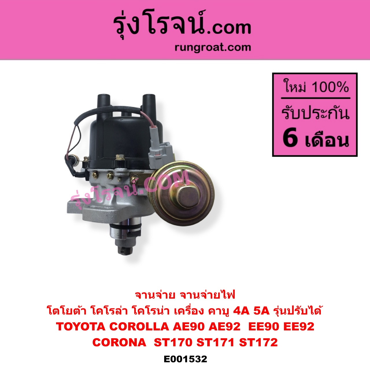 | E001532 | จานจ่าย (ทั้งลูก) | TOYOTA (โตโยต้า) / COROLLA (โคโรล่า AE90 AE92 / EE90 EE92) (โดเรม่อน) , TOYOTA (โตโยต้า) / CORONA (โคโรน่า ST170 ST171 ST172) |