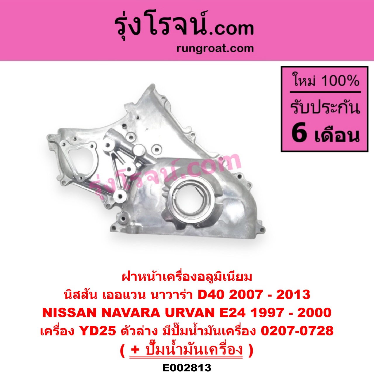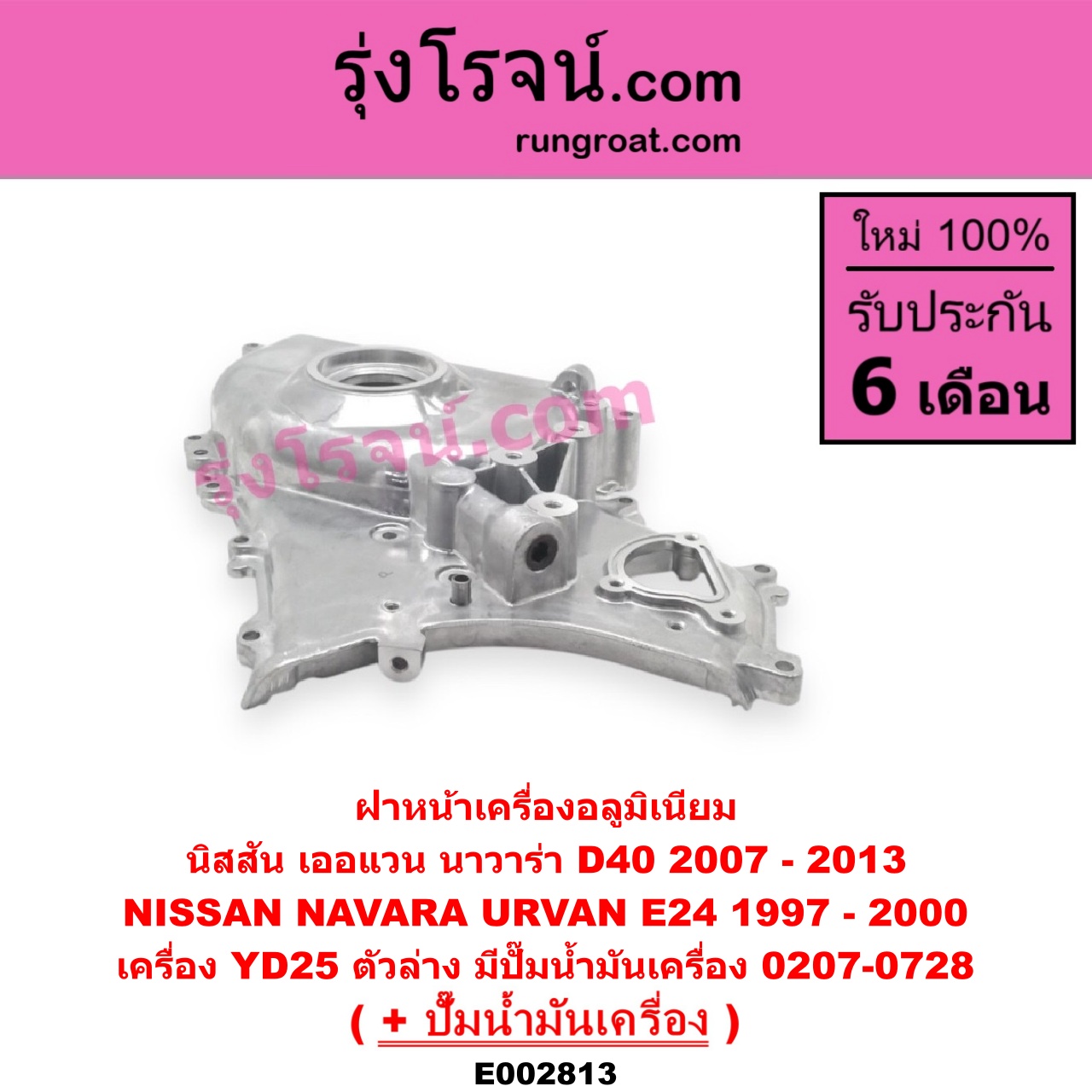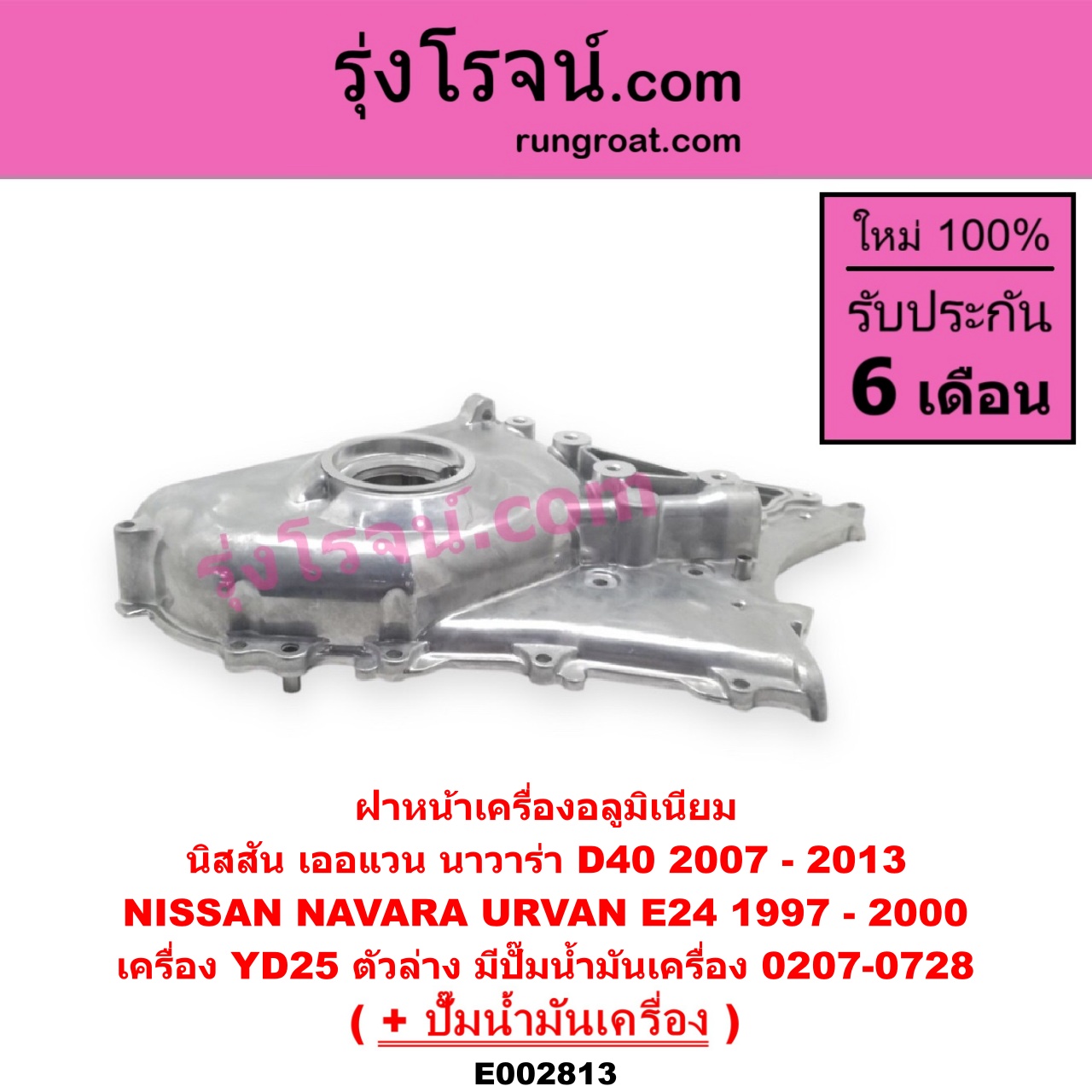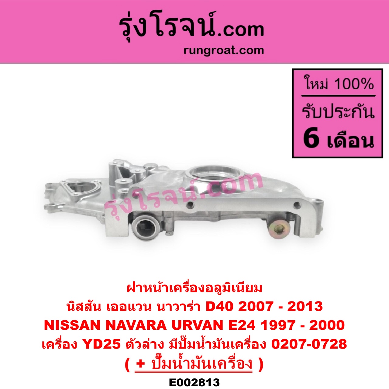 | E002813 | ฝาหน้าเครื่องอลูมิเนียม + ปั๊มน้ำมันเครื่อง | NISSAN (นิสสัน) / NAVARA (นาวาร่า D40 07/10/12) (รุ่นแรก D40) , NISSAN (นิสสัน) / URVAN (เออแวน E24 97/99) |