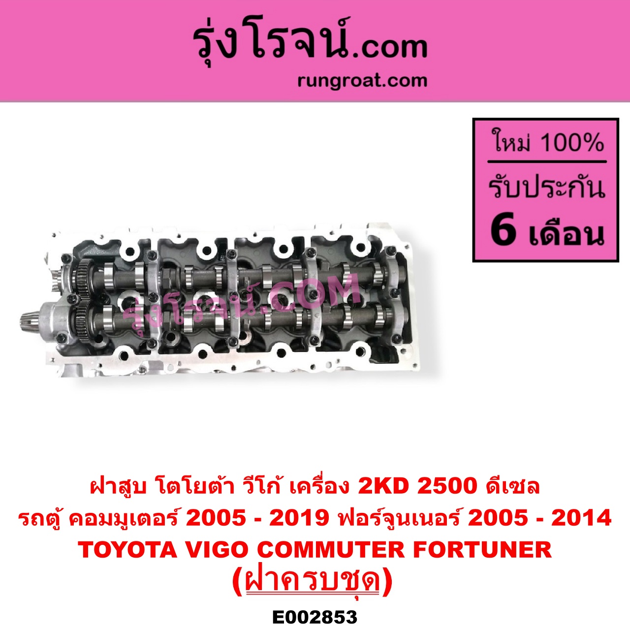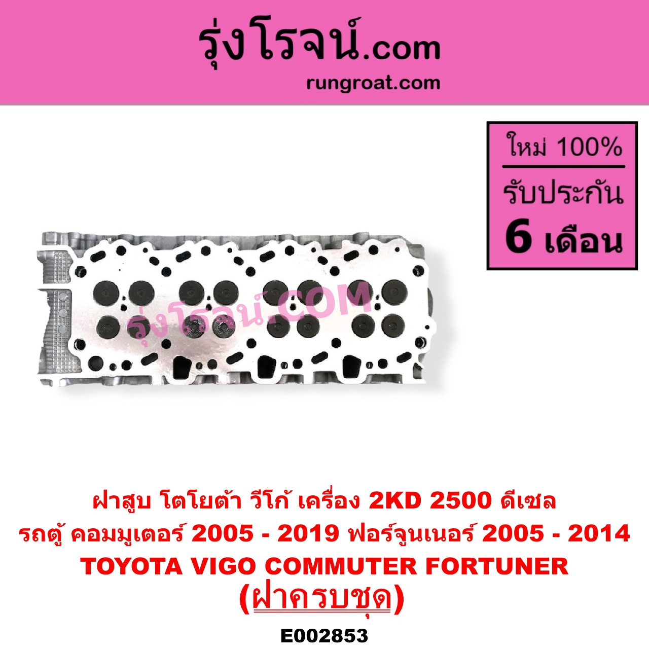 | E002853 | ฝาสูบ | TOYOTA (โตโยต้า) / COMMUTER (รถตู้ คอมมิวเตอร์ คอมมูเตอร์ 2005 – 2019) , TOYOTA (โตโยต้า) / FORTUNER (ฟอร์จูนเนอร์ 2005 – 2014) (รุ่นแรก) , TOYOTA (โตโยต้า) / VENTURY (เวนจูรี่) , TOYOTA (โตโยต้า) / VIGO (วีโก้ 2004 – 2015) |