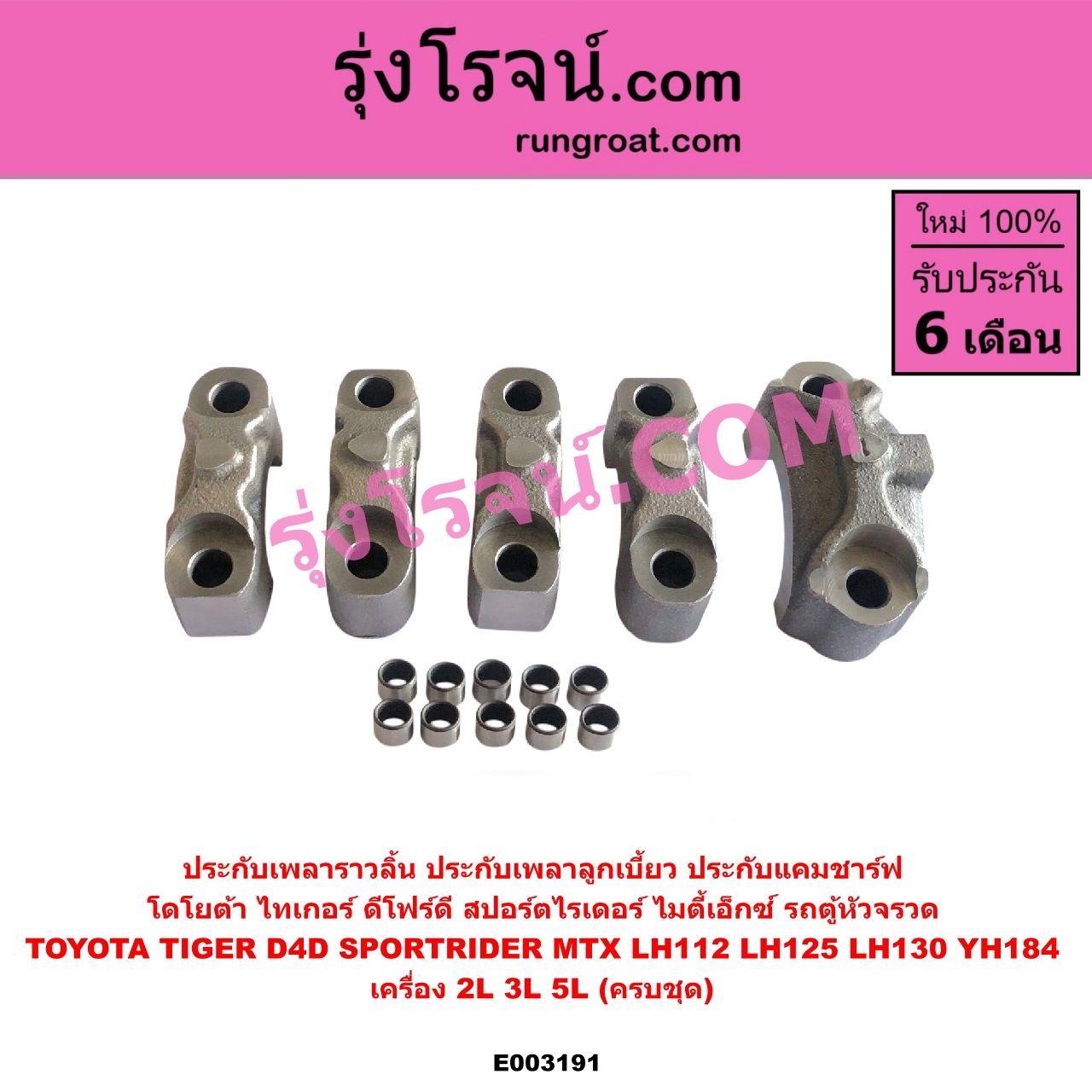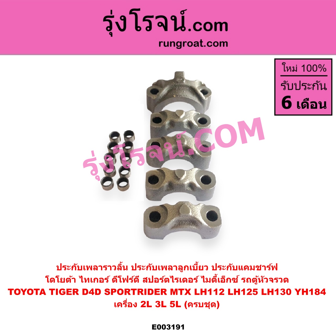 | E003191 | ประกับเพลาราวลิ้น | TOYOTA (โตโยต้า) / HIACE (ไฮเอซ LH112 LH125 LH130 YH184) (รถตู้หัวจรวด 3L 5L) , TOYOTA (โตโยต้า) / MTX (ไมตี้ X 1988 – 1996) , TOYOTA (โตโยต้า) / SPORTRIDER (สปอร์ตไรเดอร์) , TOYOTA (โตโยต้า) / TIGER/TIGER D4D (ไทเกอร์ / ไทเกอร์ ดีโฟร์ดี) |