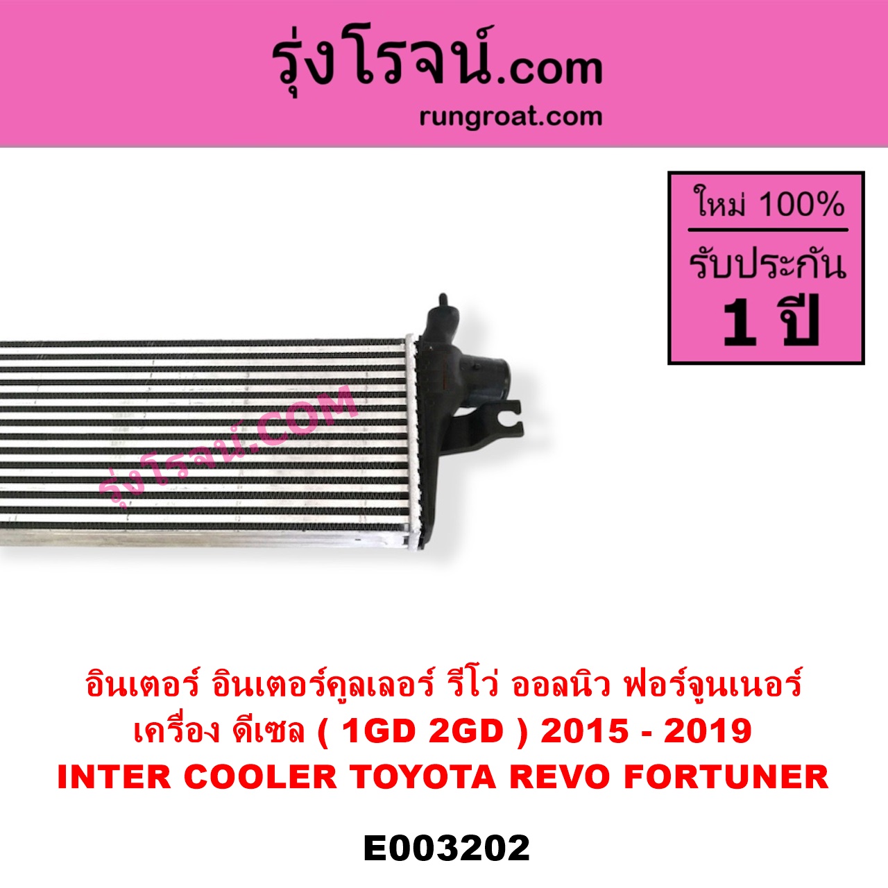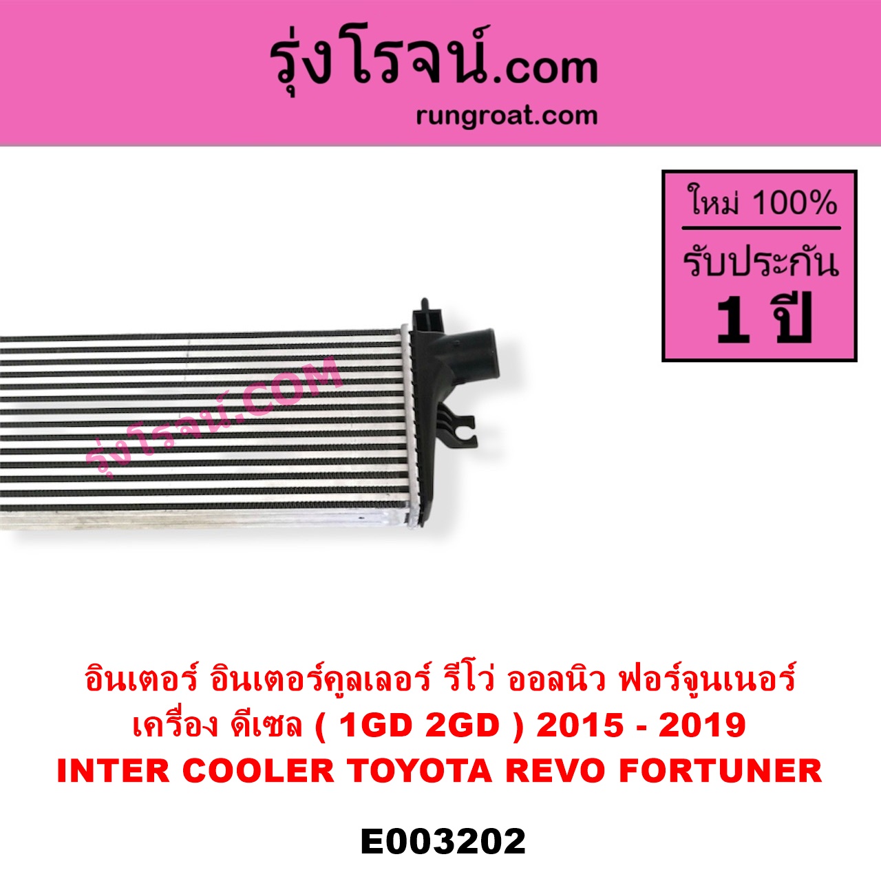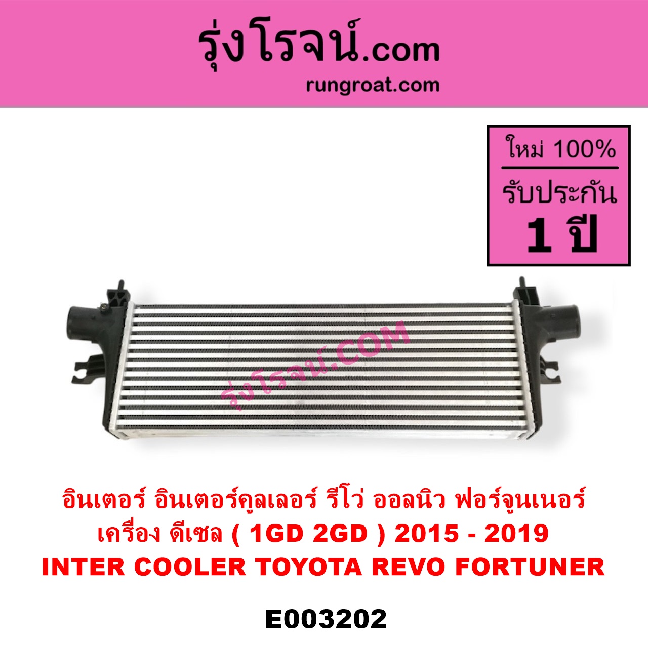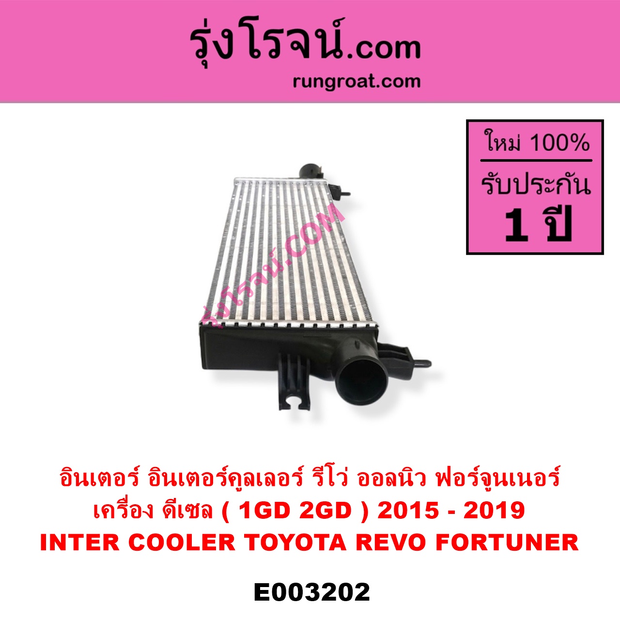 | E003202 | อินเตอร์คูลเลอร์ (INTER COOLER) | TOYOTA (โตโยต้า) / FORTUNER (ออลนิว ฟอร์จูนเนอร์ 2015 – 2023) (AN150 AN160 รุ่น 2) , TOYOTA (โตโยต้า) / REVO (รีโว รีโว่ 2015 – 2023) (โฉมแรก / ROCCO) |