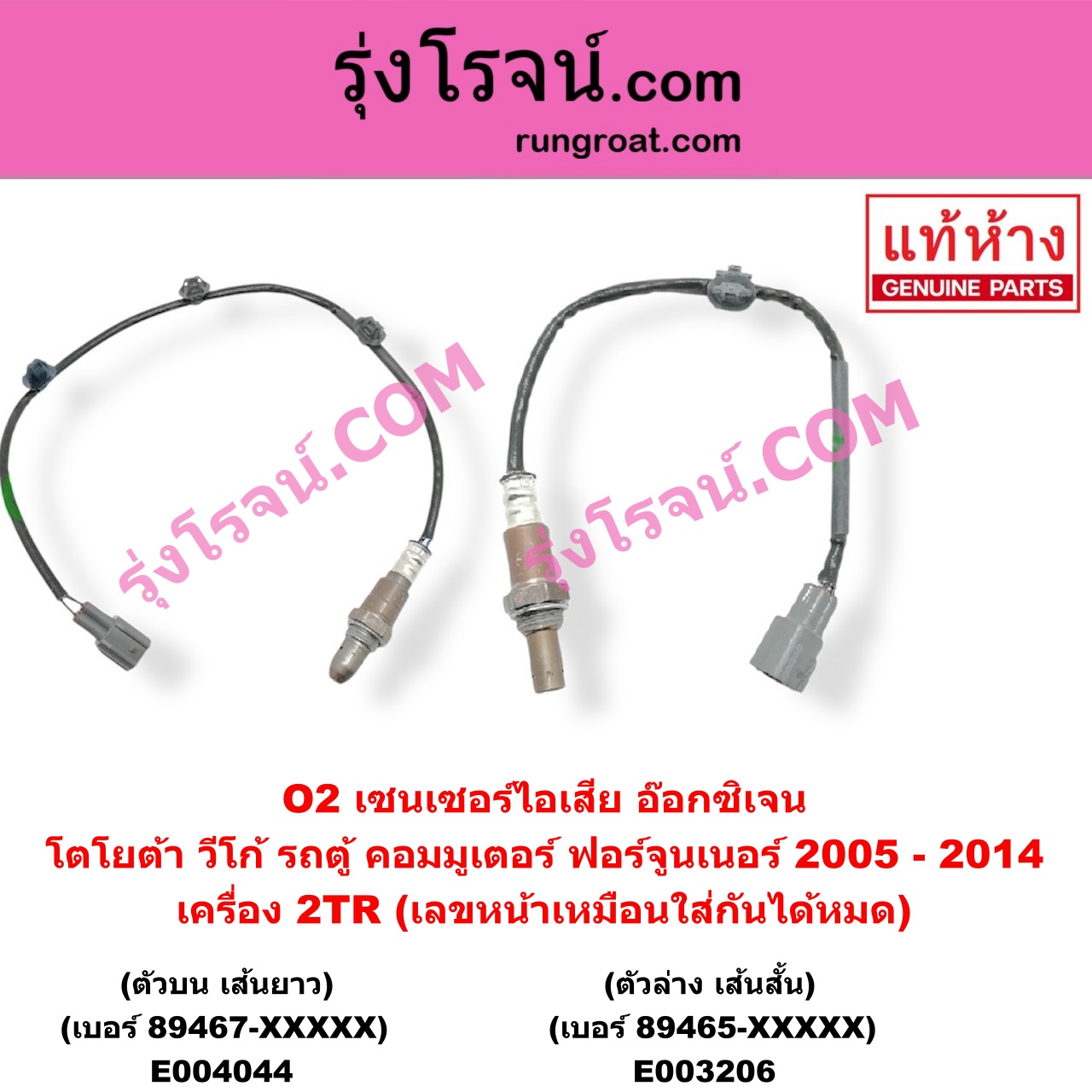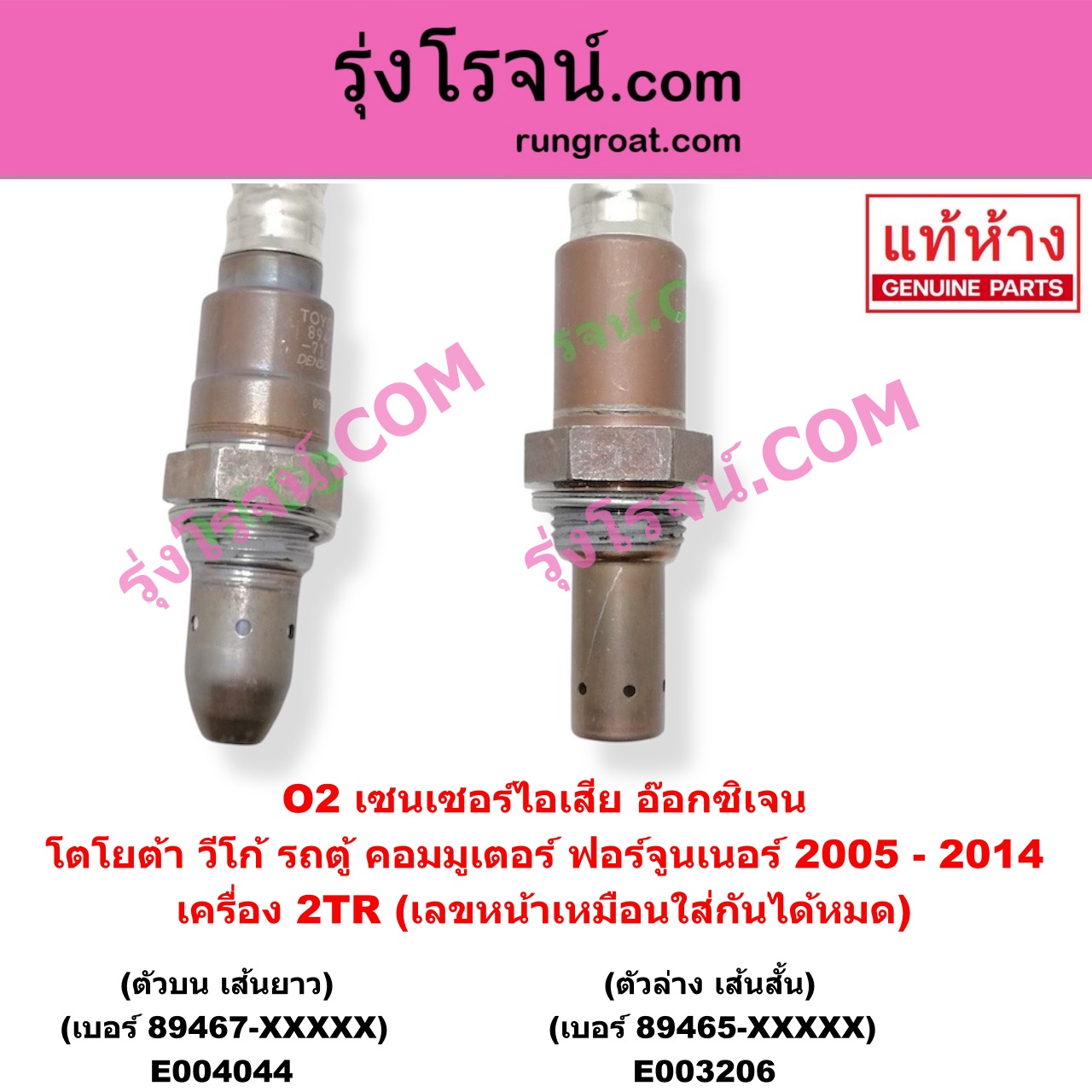 | E003206 | เซนเซอร์ไอเสีย (อ๊อกซิเจน) | TOYOTA (โตโยต้า) / COMMUTER (คอมมิวเตอร์ 05/09/12/14) , TOYOTA (โตโยต้า) / FORTUNER (ฟอร์จูนเนอร์ 05/08/12) (รุ่นแรก) , TOYOTA (โตโยต้า) / VENTURY (เวนจูรี่) , TOYOTA (โตโยต้า) / VIGO (วีโก้ 04/08/11) |