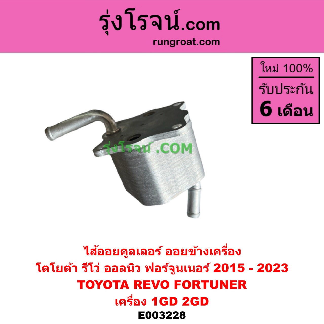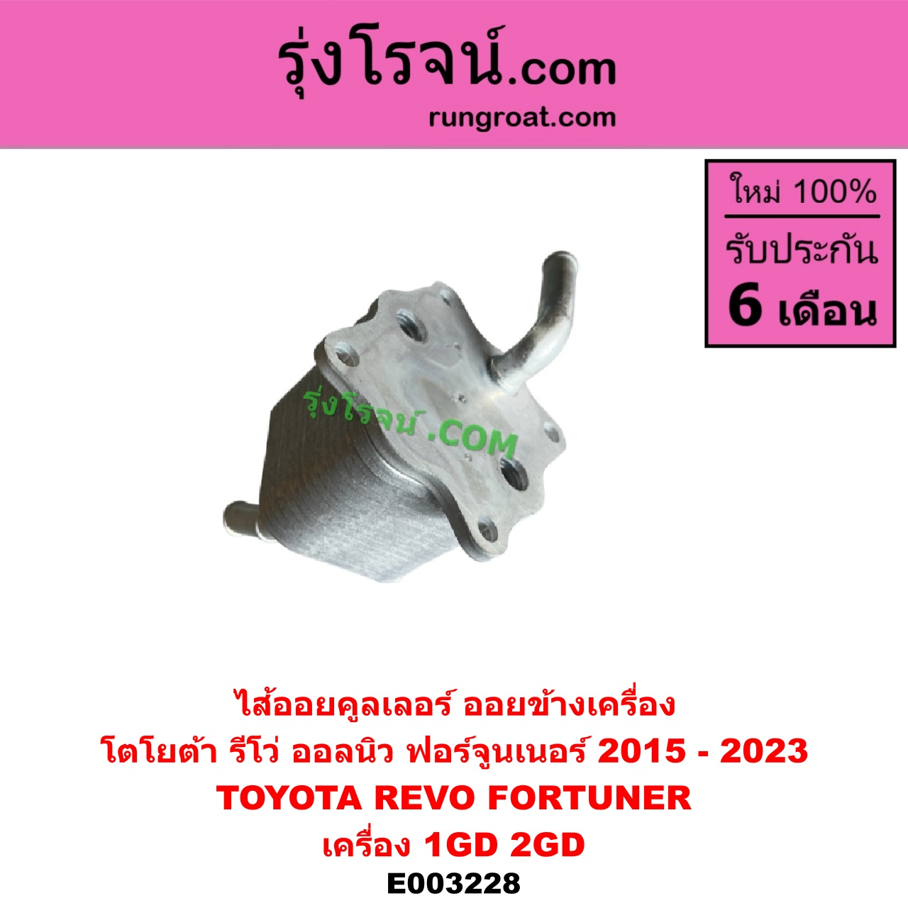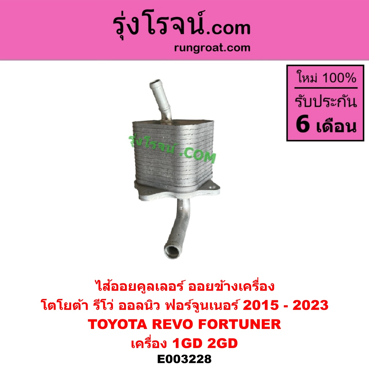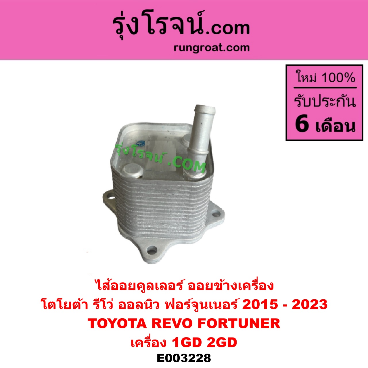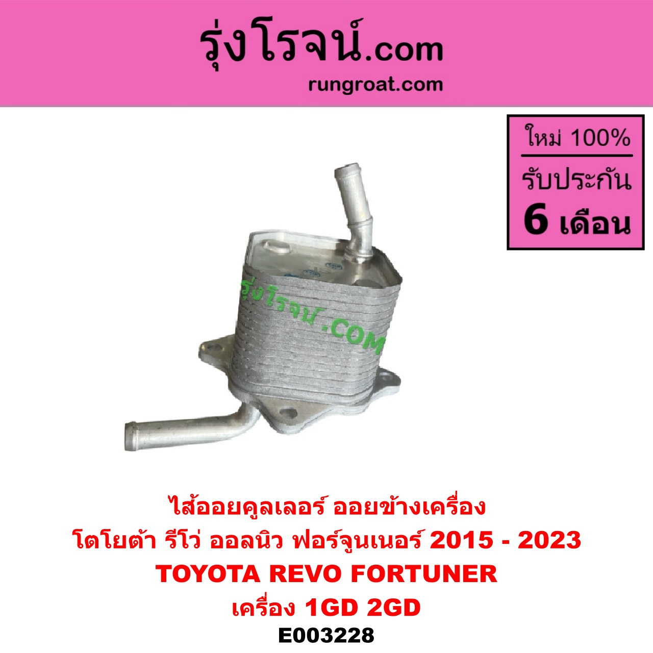 | E003228 | ไส้ออยคูลเลอร์ (ออยข้างเครื่อง) | TOYOTA (โตโยต้า) / FORTUNER (ออลนิว ฟอร์จูนเนอร์ 2015 – 2023) (AN150 AN160 รุ่น 2) , TOYOTA (โตโยต้า) / REVO (รีโว รีโว่ 2015 – 2023) (โฉมแรก / ROCCO) |