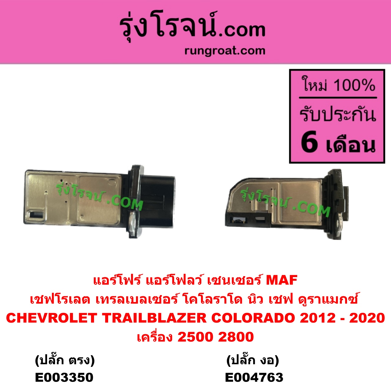 | E003350 | แอร์โฟร์ (แอร์โฟลว์, เซนเซอร์ MAF) | CHEVROLET (เชฟโรเลต) / COLORADO (โคโลราโด 2012 – 2020) (นิว เชฟ ดูราแมกซ์, Z71, DURAMAX) , CHEVROLET (เชฟโรเลต) / TRAILBLAZER (เทรลเบลเซอร์ 2013 – 2020) |