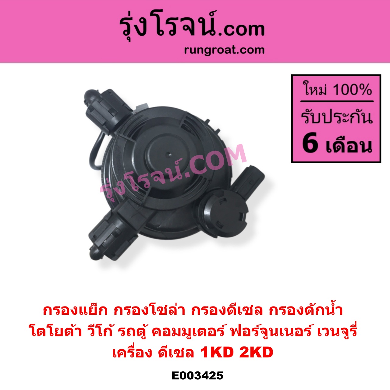 | E003425 | กรองแย็ก (กรองโซล่า, กรองดีเซล, กรองดักน้ำ) | TOYOTA (โตโยต้า) / COMMUTER (รถตู้ คอมมิวเตอร์ คอมมูเตอร์ 05/09/12/14) , TOYOTA (โตโยต้า) / FORTUNER (ฟอร์จูนเนอร์ 05/08/12) (รุ่นแรก) , TOYOTA (โตโยต้า) / VENTURY (เวนจูรี่) , TOYOTA (โตโยต้า) / VIGO (วีโก้ 04/08/11) |