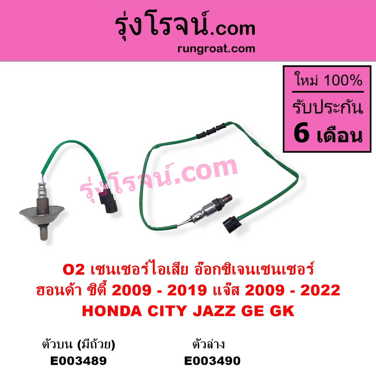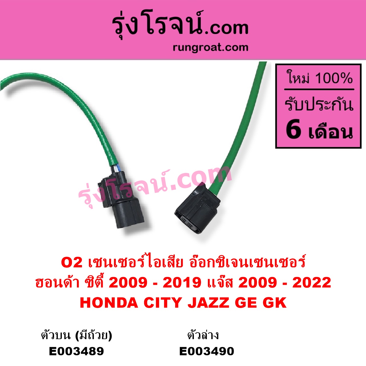 | E003490 | เซนเซอร์ไอเสีย (อ๊อกซิเจน) | HONDA (ฮอนด้า) / CITY (ซิตี้ 2009 – 2013) , HONDA (ฮอนด้า) / CITY (ซิตี้ 2014 – 2019) , HONDA (ฮอนด้า) / JAZZ (แจ๊ส 2009 – 2013 ไฮบริด) (GE) , HONDA (ฮอนด้า) / JAZZ (แจ๊ส 2014 – 2022) (GK) |