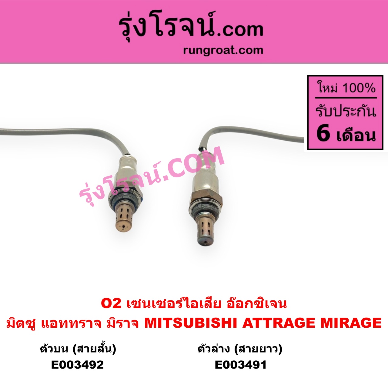 | E003491 | เซนเซอร์ไอเสีย (อ๊อกซิเจน) | MITSUBISHI (มิตซู) / ATTRAGE (แอททราจ 14) , MITSUBISHI (มิตซู) / MIRAGE (มิราจ 12/14) |