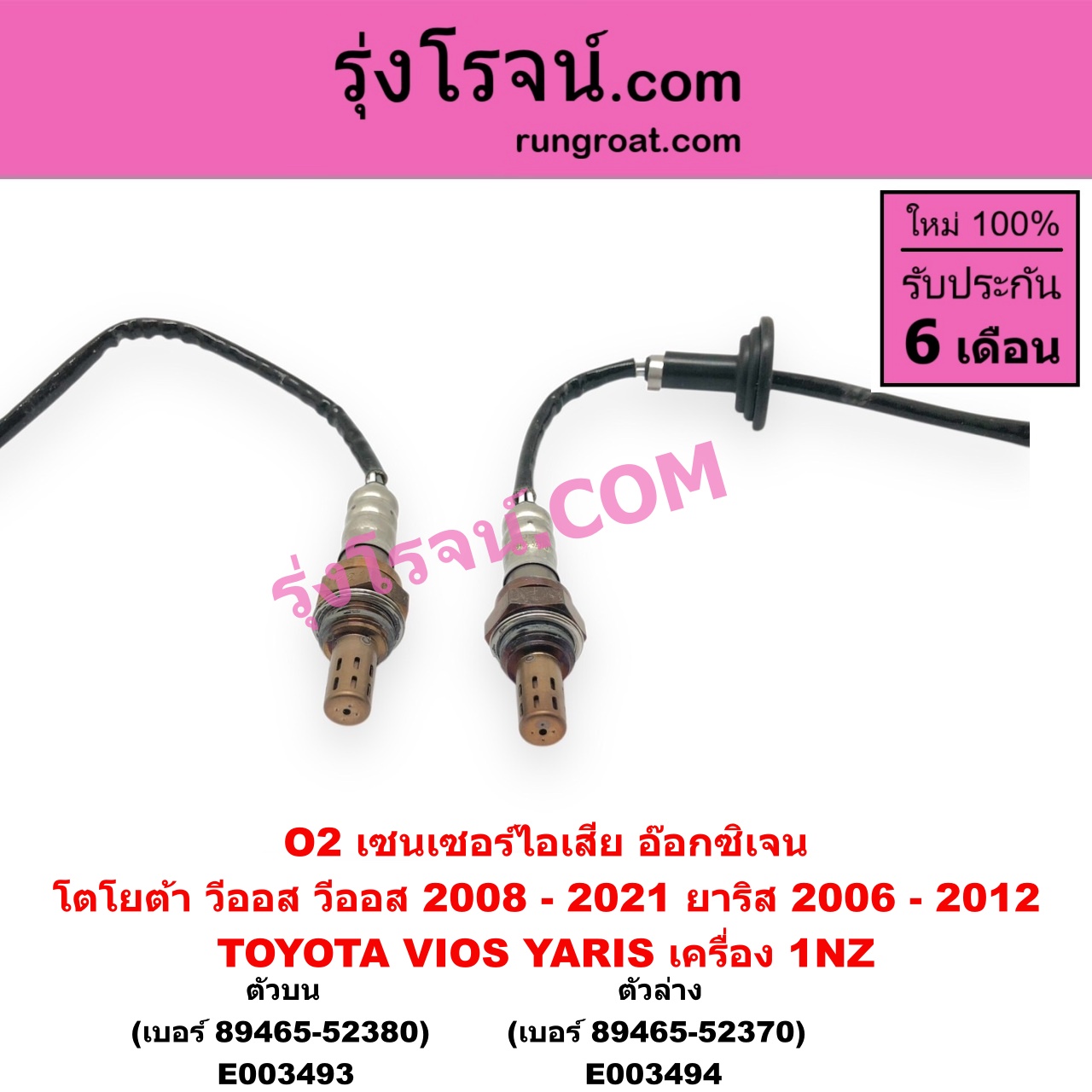 | E003493 | เซนเซอร์ไอเสีย (อ๊อกซิเจน) | TOYOTA (โตโยต้า) / VIOS (วีออส 2008 – 2012) (รุ่น 2) , TOYOTA (โตโยต้า) / VIOS (วีออส 2013 – 2021) (รุ่น 3) , TOYOTA (โตโยต้า) / YARIS (ยาริส 2006 – 2012) (รุ่นแรก) |