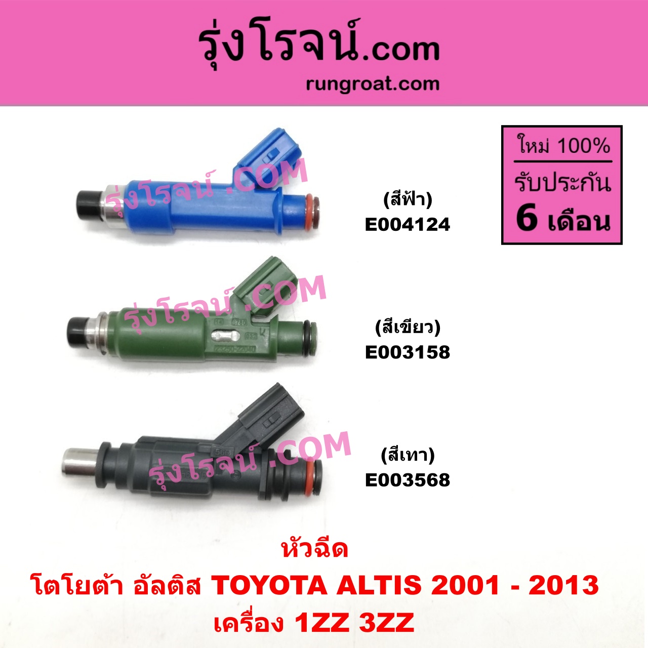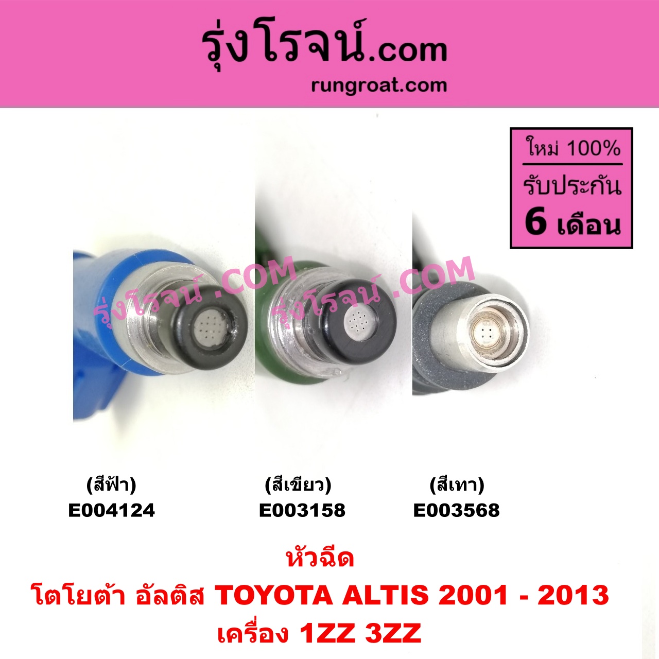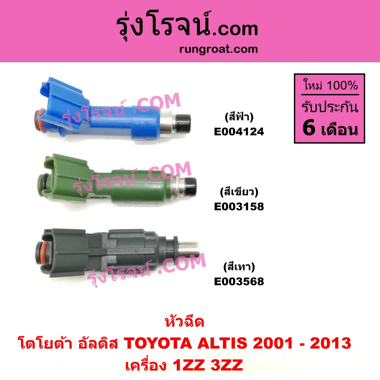 | E003568 | หัวฉีด (หัวละ) | TOYOTA (โตโยต้า) / ALTIS (อัลติส 2001 – 2007) (หน้าหมู รุ่นแรก) , TOYOTA (โตโยต้า) / ALTIS (อัลติส 2008 – 2013) (รุ่น 2, ดูโอ้, DUAL VVTI) |