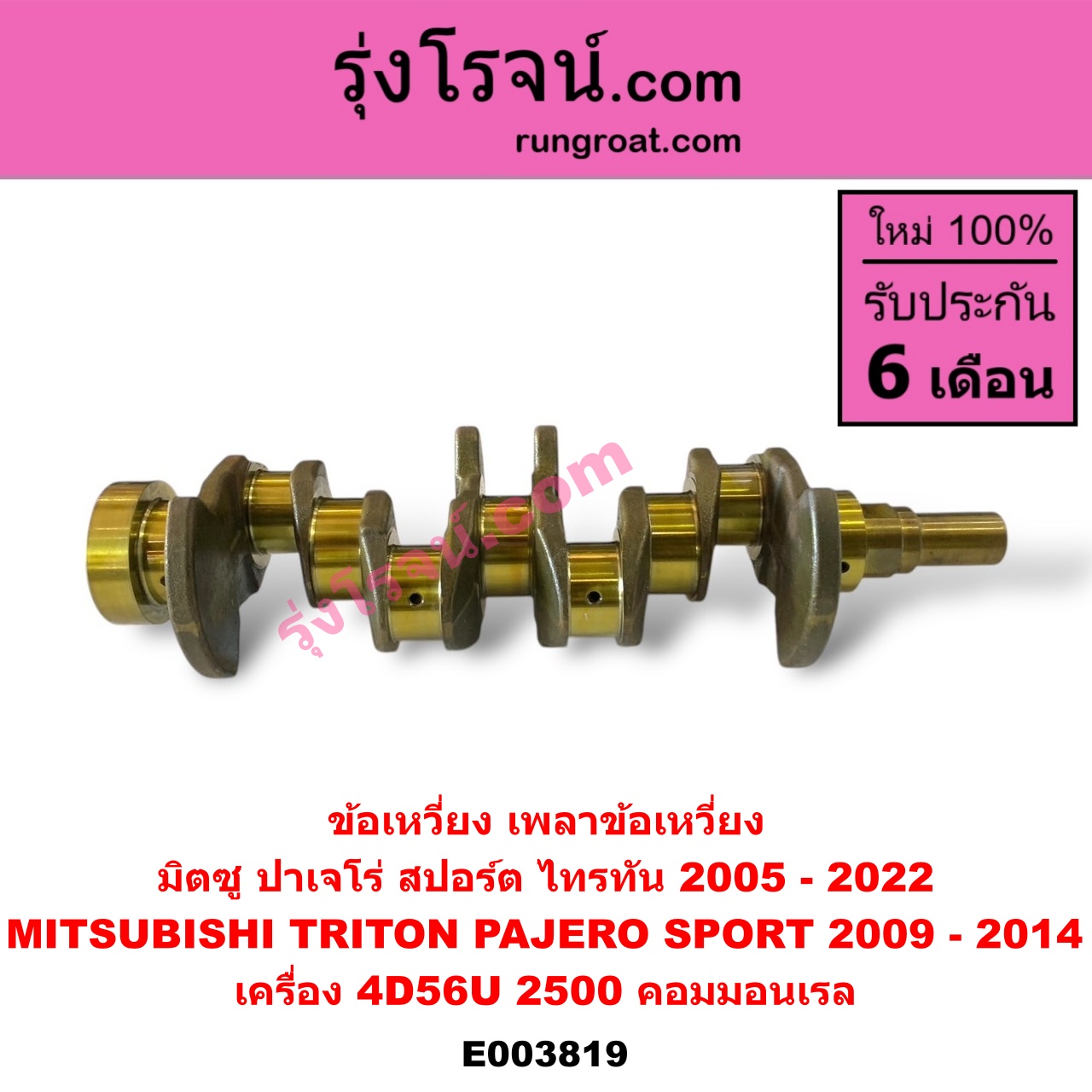 | E003819 | ข้อเหวี่ยง (เพลาข้อเหวี่ยง) | MITSUBISHI (มิตซู) / PAJERO SPORT (ปาเจโร่ สปอร์ต 09/12) (รุ่นแรก) , MITSUBISHI (มิตซู) / TRITON (ไทรทัน 07/09 PLUS) (รุ่นแรก) , MITSUBISHI (มิตซู) / TRITON (ไทรทัน 15) (รุ่น 2) |