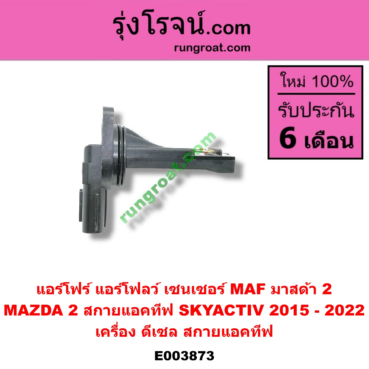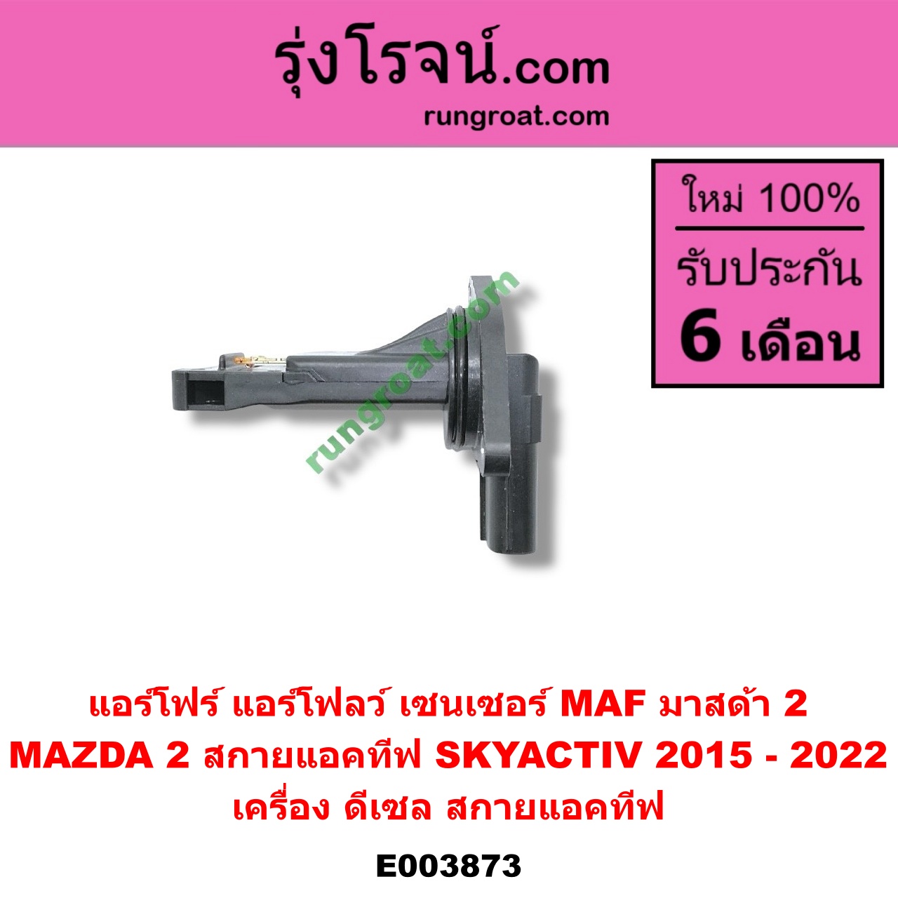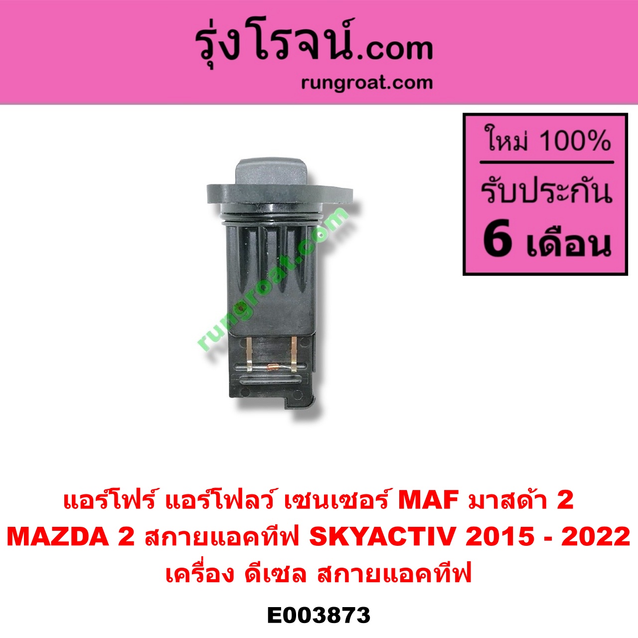 | E003873 | แอร์โฟร์ (แอร์โฟลว์, เซนเซอร์ MAF) | MAZDA (มาสด้า) / MAZDA 2 (มาสด้า 2 2015 – 2022) (DJ DL รุ่น 2, สกายแอคทีฟ SKYACTIV) | เครื่อง ดีเซล (สกายแอคทีฟ) | ไต้หวัน (ใหม่) |