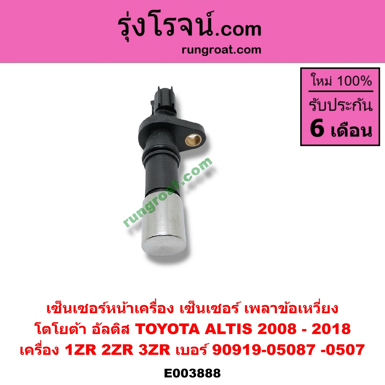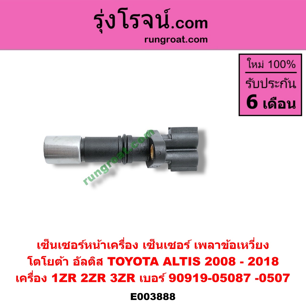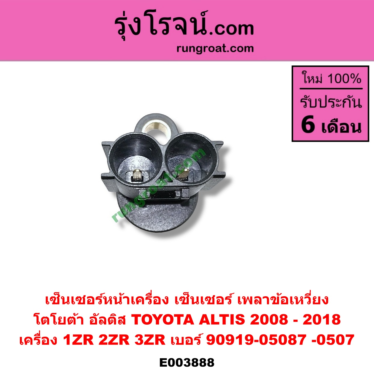 | E003888 | เซ็นเซอร์หน้าเครื่อง (เซ็นเซอร์เพลาข้อเหวี่ยง, เซ็นเซอร์เพลาลูกเบี้ยว) | TOYOTA (โตโยต้า) / ALTIS (อัลติส 08/12) (รุ่น 2, ดูโอ้) , TOYOTA (โตโยต้า) / ALTIS (อัลติส 14) (รุ่น 3) |