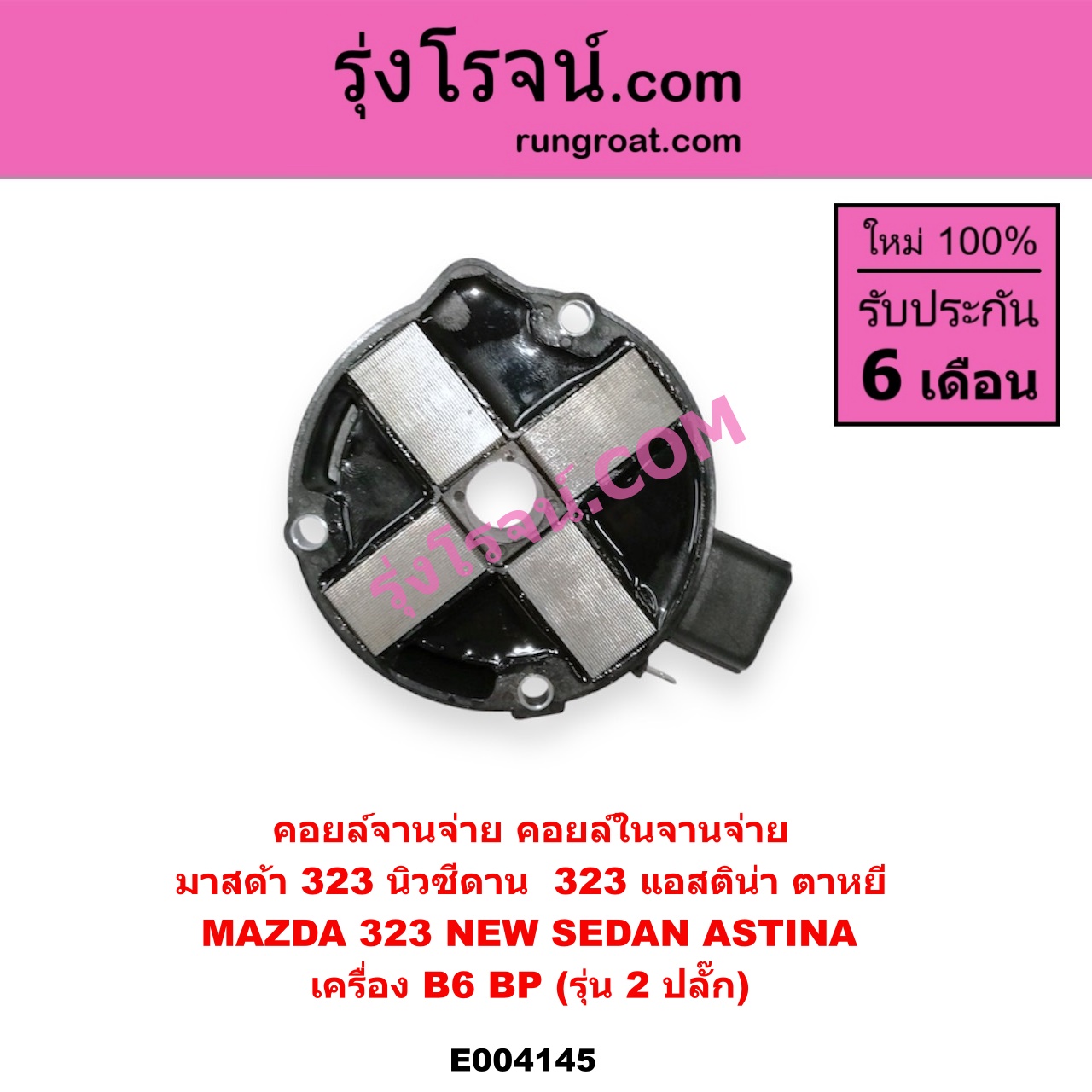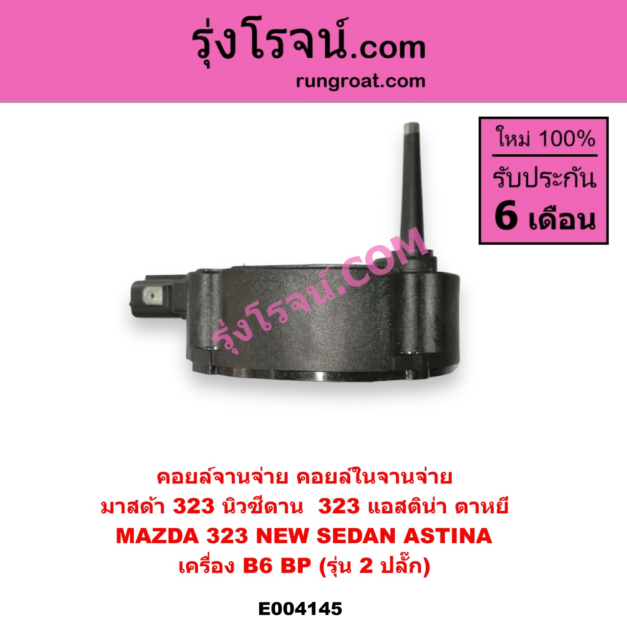 | E004145 | คอยล์จานจ่าย (คอยล์ในจานจ่าย) | MAZDA (มาสด้า) / 323 95/97 (นิวซีดาน) , MAZDA (มาสด้า) / 323 ASTINA (แอสติน่า 95) (ตาหยี) |