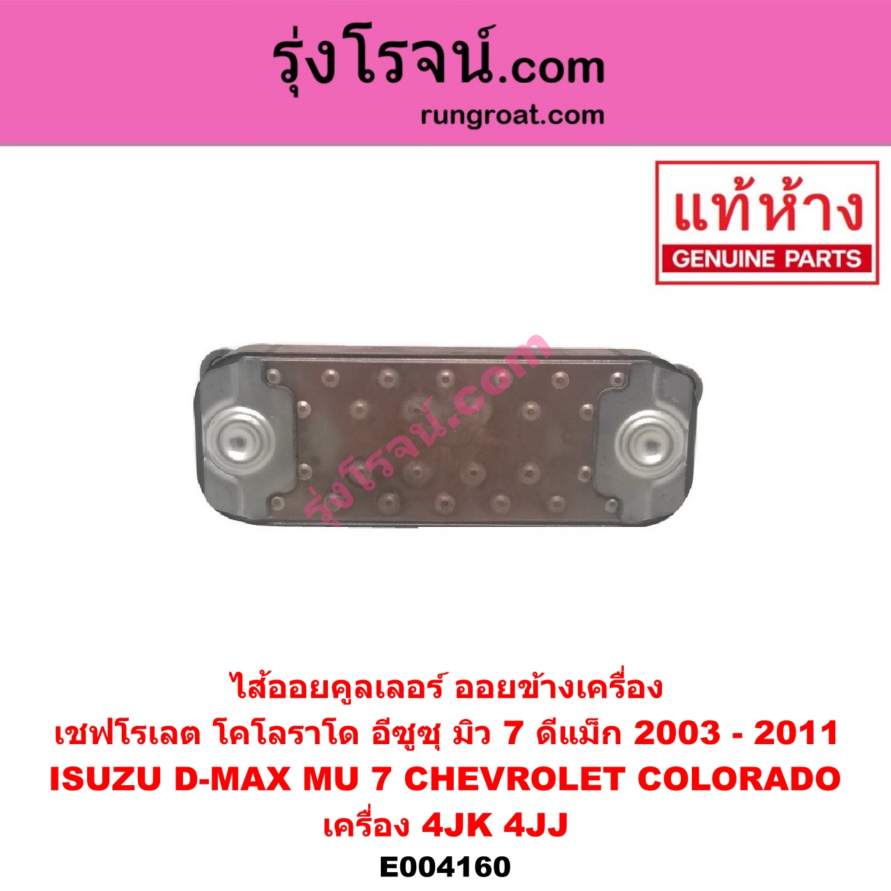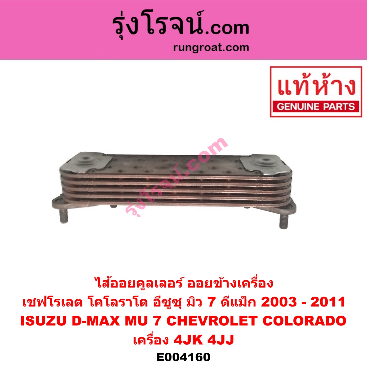 | E004160 | ไส้ออยคูลเลอร์ (ออยข้างเครื่อง) | CHEVROLET (เชฟโรเลต) / COLORADO (โคโลราโด 2005 – 2011) (ตา 2 ชั้น / ตาชั้นเดียว) , ISUZU (อีซูซุ) / D-MAX (ดีแม็ก ดีแม็ค DMAX 2003 – 2011) (รุ่นแรก) , ISUZU (อีซูซุ) / MU 7 (มิว 7 2005 – 2013) |