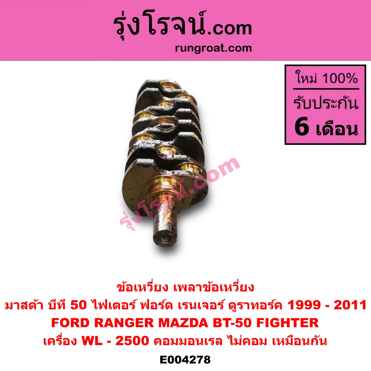 | E004278 | ข้อเหวี่ยง (เพลาข้อเหวี่ยง) | FORD (ฟอร์ด) / RANGER (เรนเจอร์ 1999 / 2003) (รุ่นแรก WL 12 วาล์ว) , FORD (ฟอร์ด) / RANGER (เรนเจอร์ ดูราทอร์ค 06/09) (รุ่น 2) , MAZDA (มาสด้า) / BT-50 (บีที 50 06/09) , MAZDA (มาสด้า) / FIGHTER (ไฟเตอร์ 97/99/02) |
