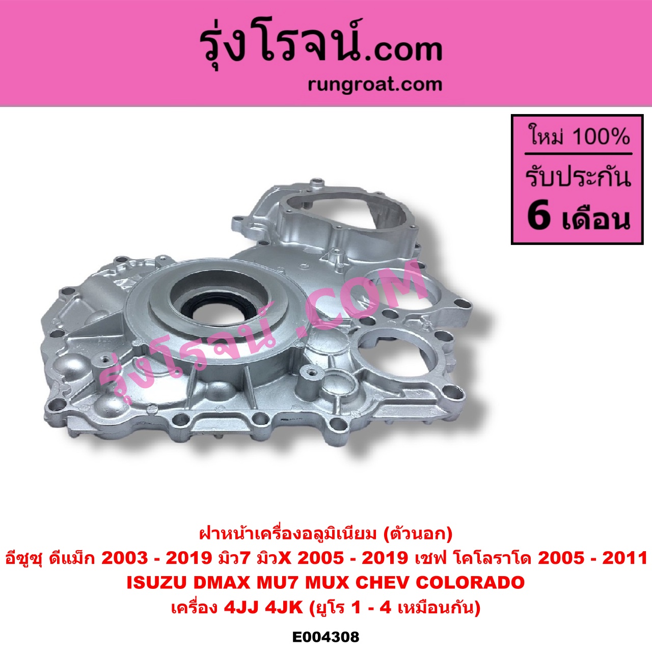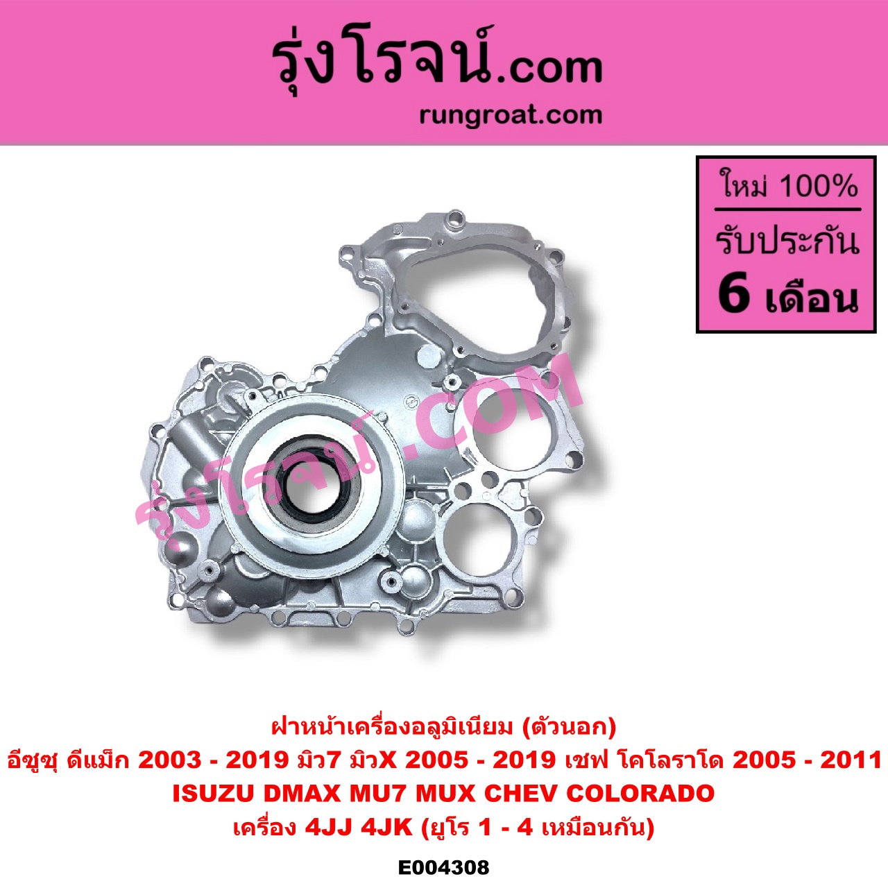 | E004308 | ฝาหน้าเครื่องอลูมิเนียม | CHEVROLET (เชฟโรเลต) / COLORADO (โคโลราโด 2005 – 2011) (ตา 2 ชั้น / ตาชั้นเดียว) , ISUZU (อีซูซุ) / D-MAX (ดีแม็ก ดีแม็ค DMAX 2003 – 2011) (รุ่นแรก) , ISUZU (อีซูซุ) / D-MAX (ออนิว ออลนิว ดีแม็ก ดีแม็ค DMAX 2012 – 2019) (วีครอส V-CROSS / บลูเพาเวอร์ / 1.9) , ISUZU (อีซูซุ) / MU 7 (มิว 7 2005 – 2013) , ISUZU (อีซูซุ) / MU X (มิว X 2014 – 2019) |