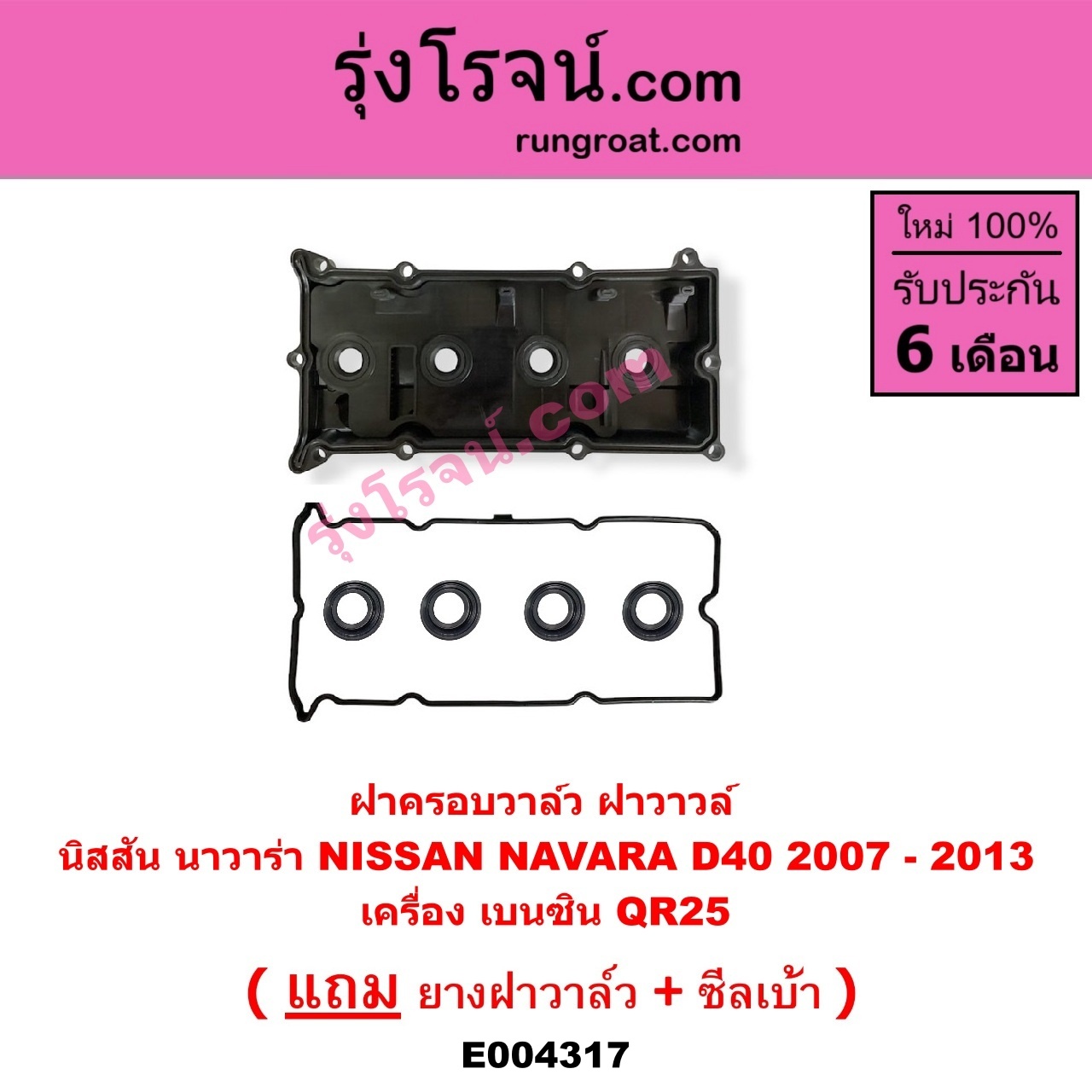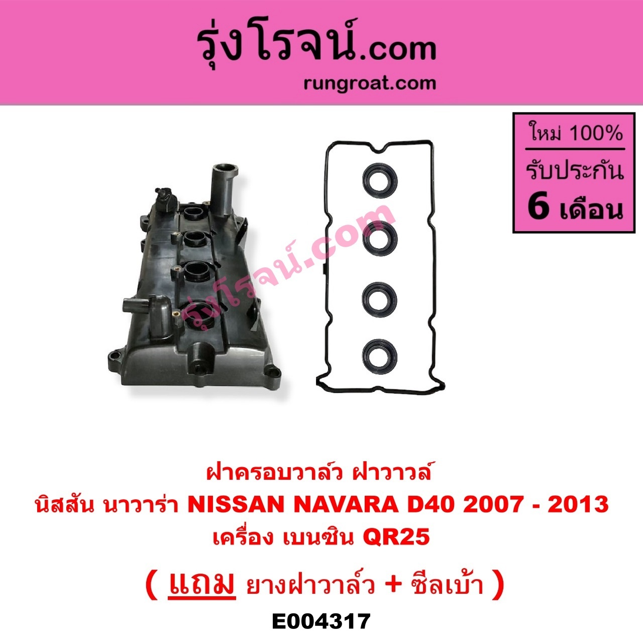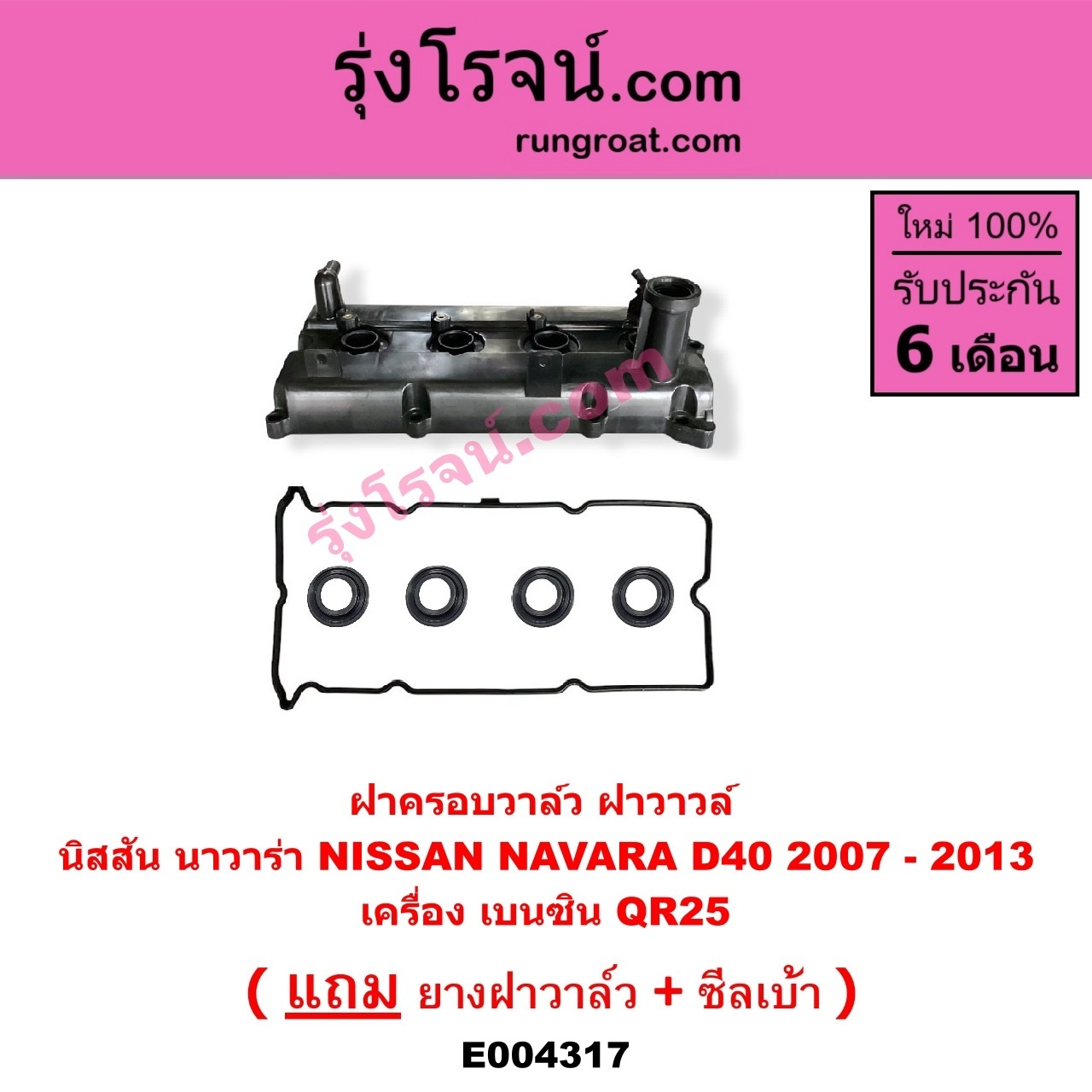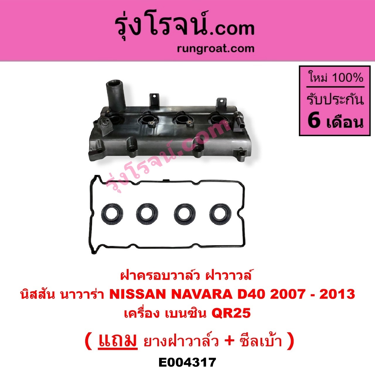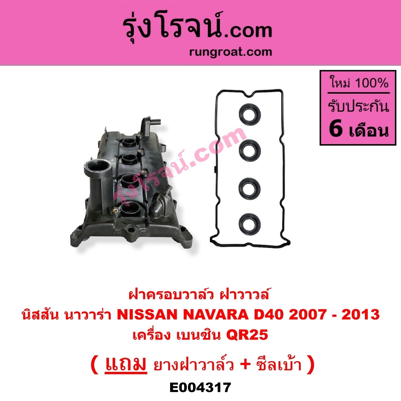 | E004317 | ฝาครอบวาล์ว (ฝาวาวล์) | NISSAN (นิสสัน) / NAVARA (นาวาร่า D40 07/10/12) (รุ่นแรก D40) | เครื่อง เบนซิน (QR25) | ไต้หวัน (ใหม่) |