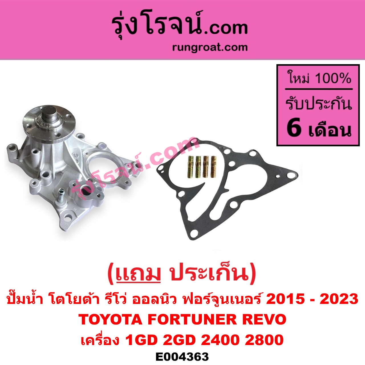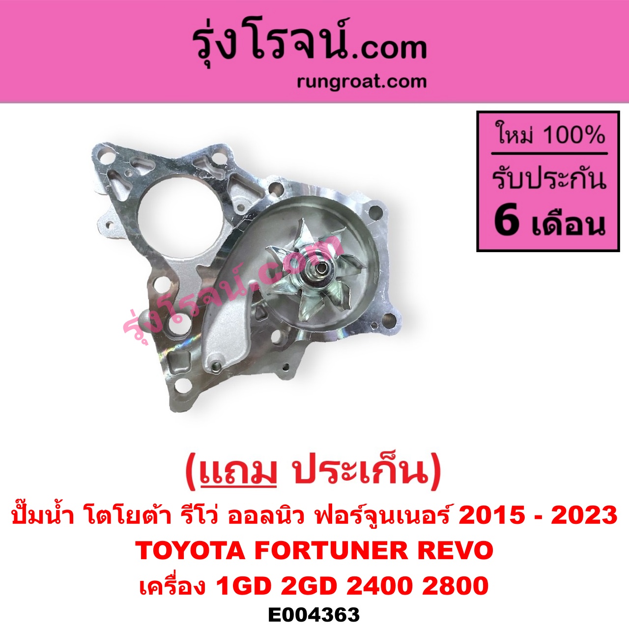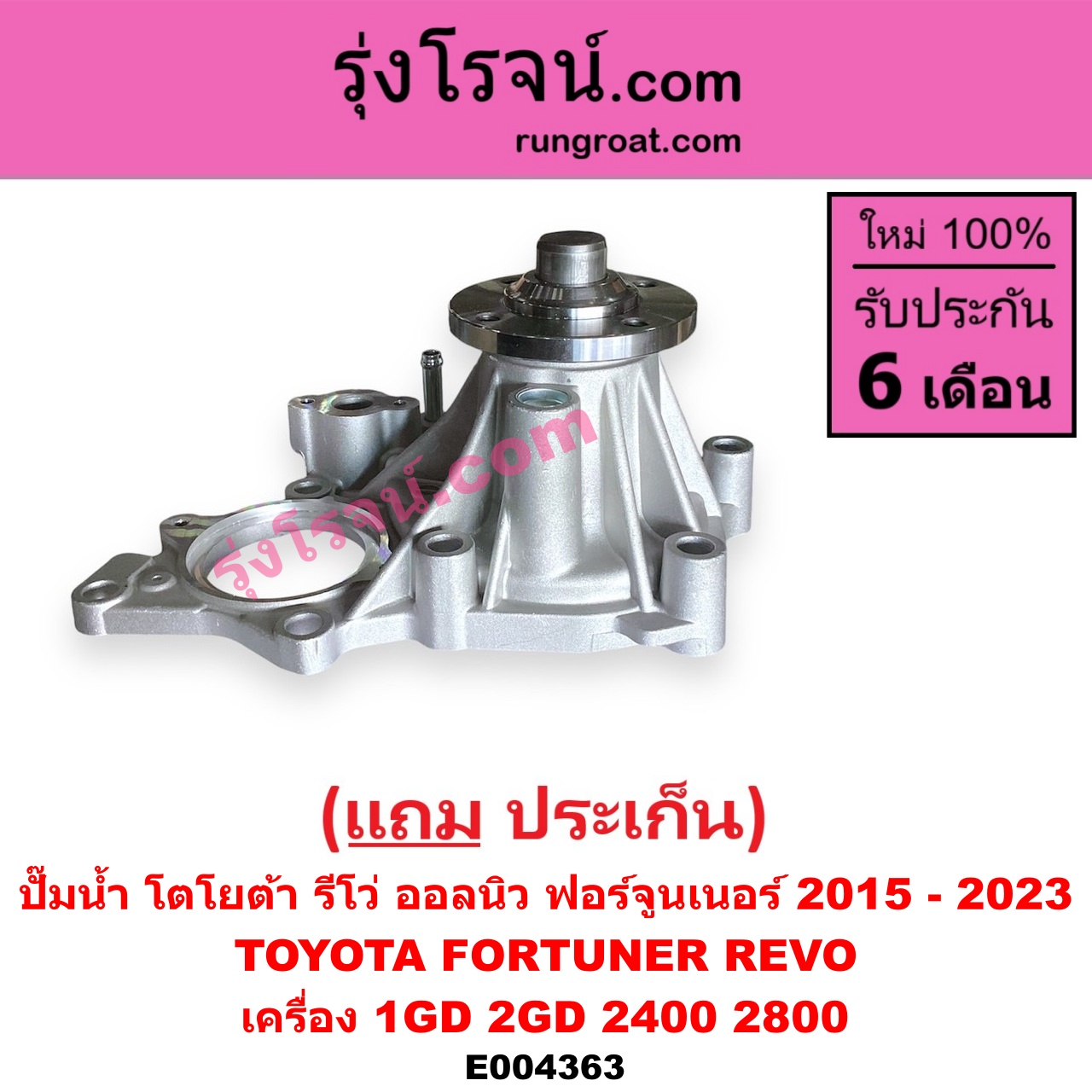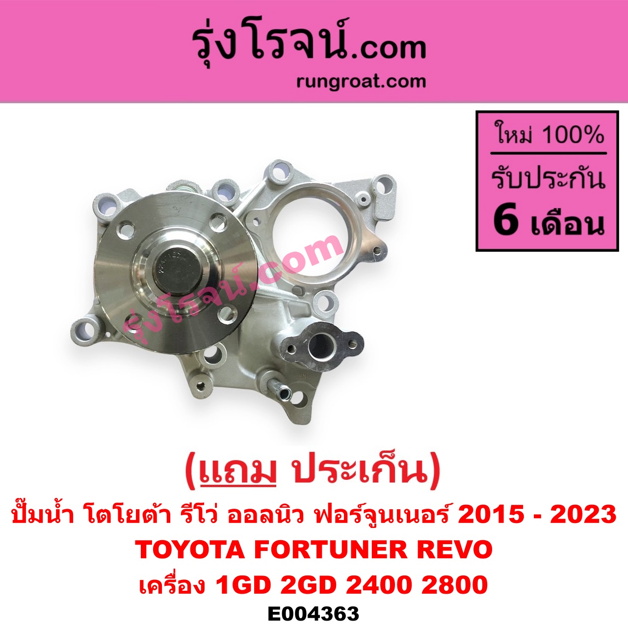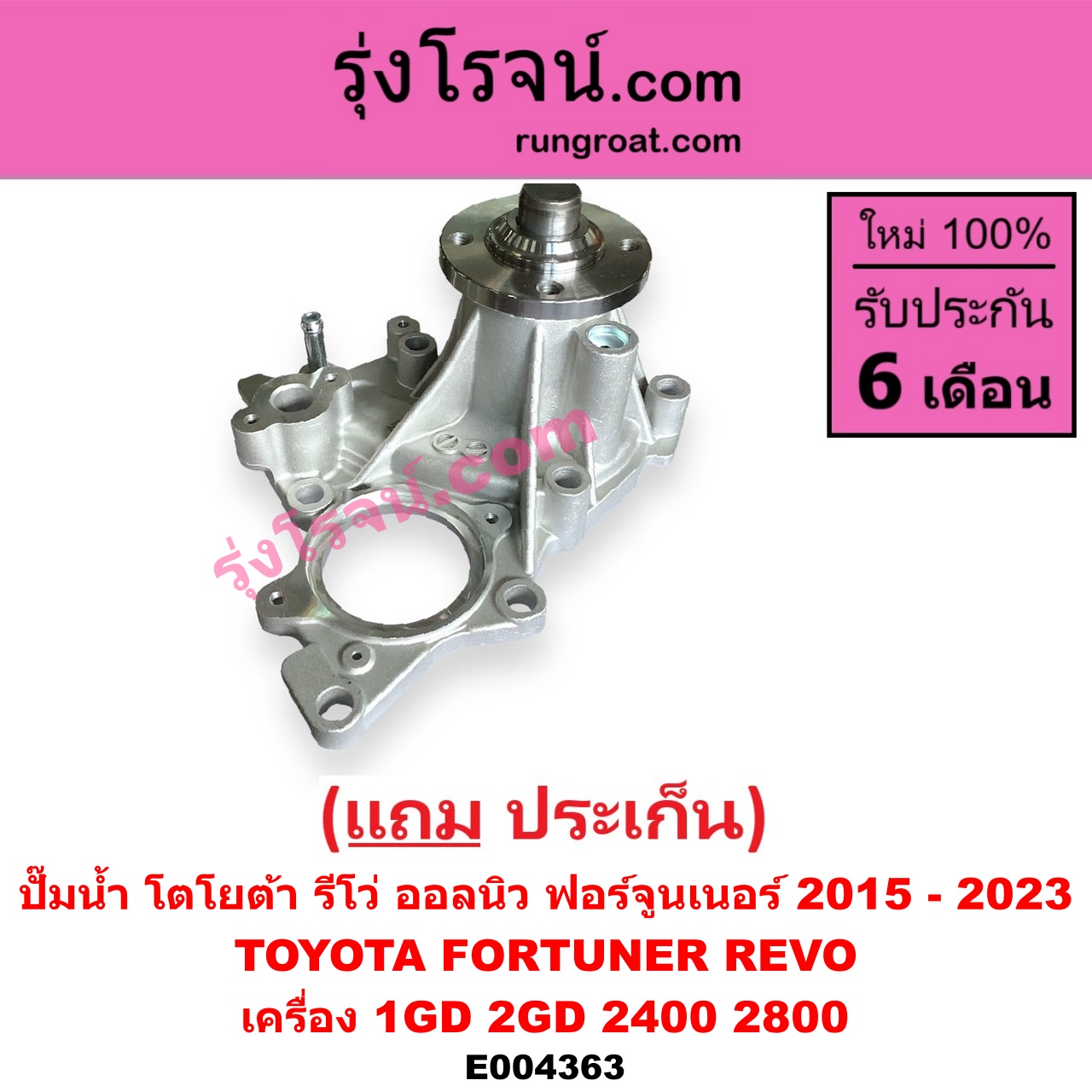 | E004363 | ปั๊มน้ำ | TOYOTA (โตโยต้า) / FORTUNER (ออลนิว ฟอร์จูนเนอร์ 2015) (AN150 AN160 รุ่น 2) , TOYOTA (โตโยต้า) / REVO (รีโว 15/19) (โฉมแรก / ROCCO) |