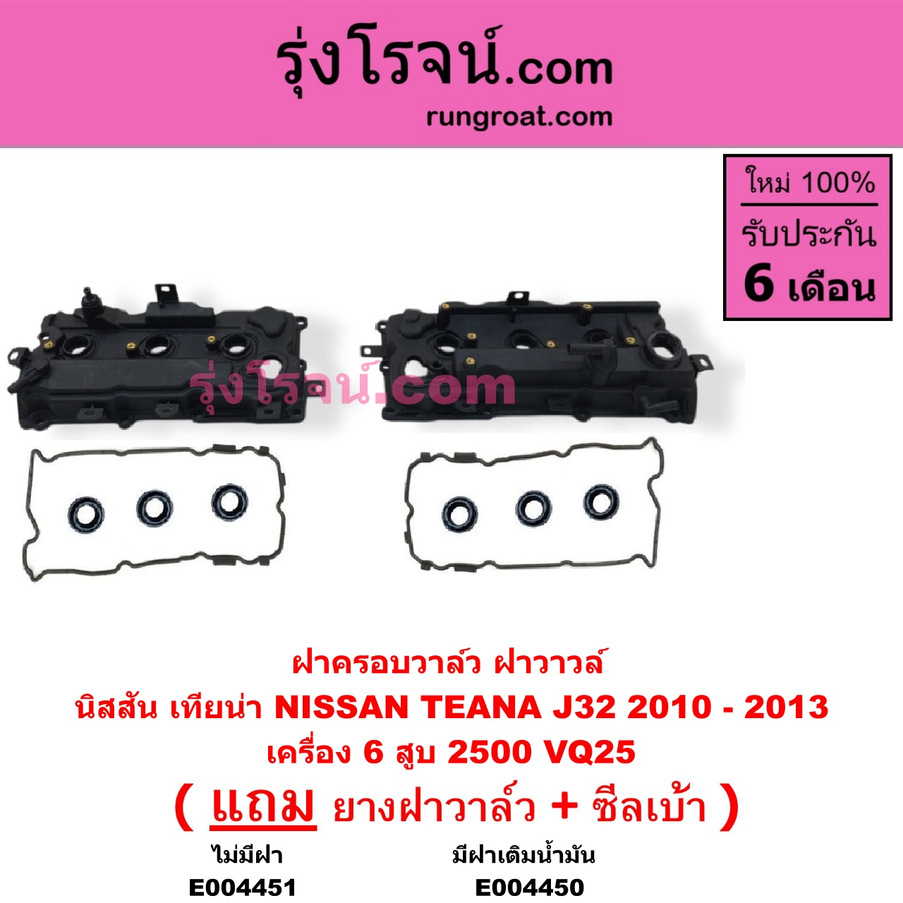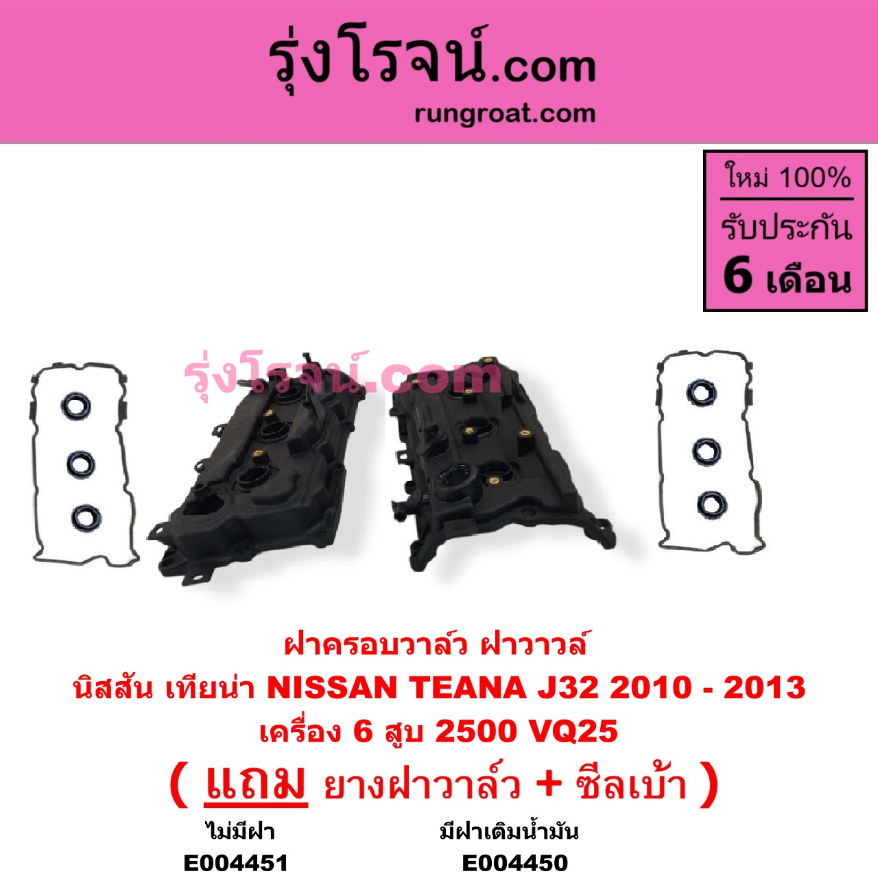 | E004450 | ฝาครอบวาล์ว (ฝาวาวล์) | NISSAN (นิสสัน) / TEANA (เทียน่า J32 10/12) | เครื่อง 6 สูบ 2500 (VQ25) (มีฝาเติมน้ำมัน) | ไต้หวัน (ใหม่) |