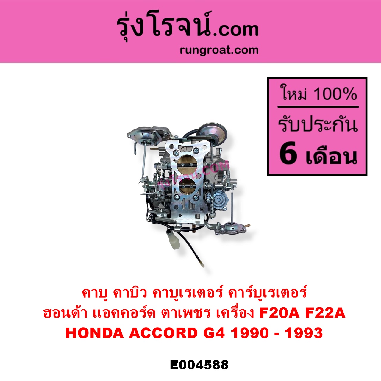 | E004588 | คาบู (คาบิว, คาบูเรเตอร์, คาร์บูเรเตอร์) | HONDA (ฮอนด้า) / ACCORD (แอคคอร์ด 1990 – 1993) (ตาเพชร / G4) | เครื่อง F20A, F22A | ไต้หวัน (ใหม่) |