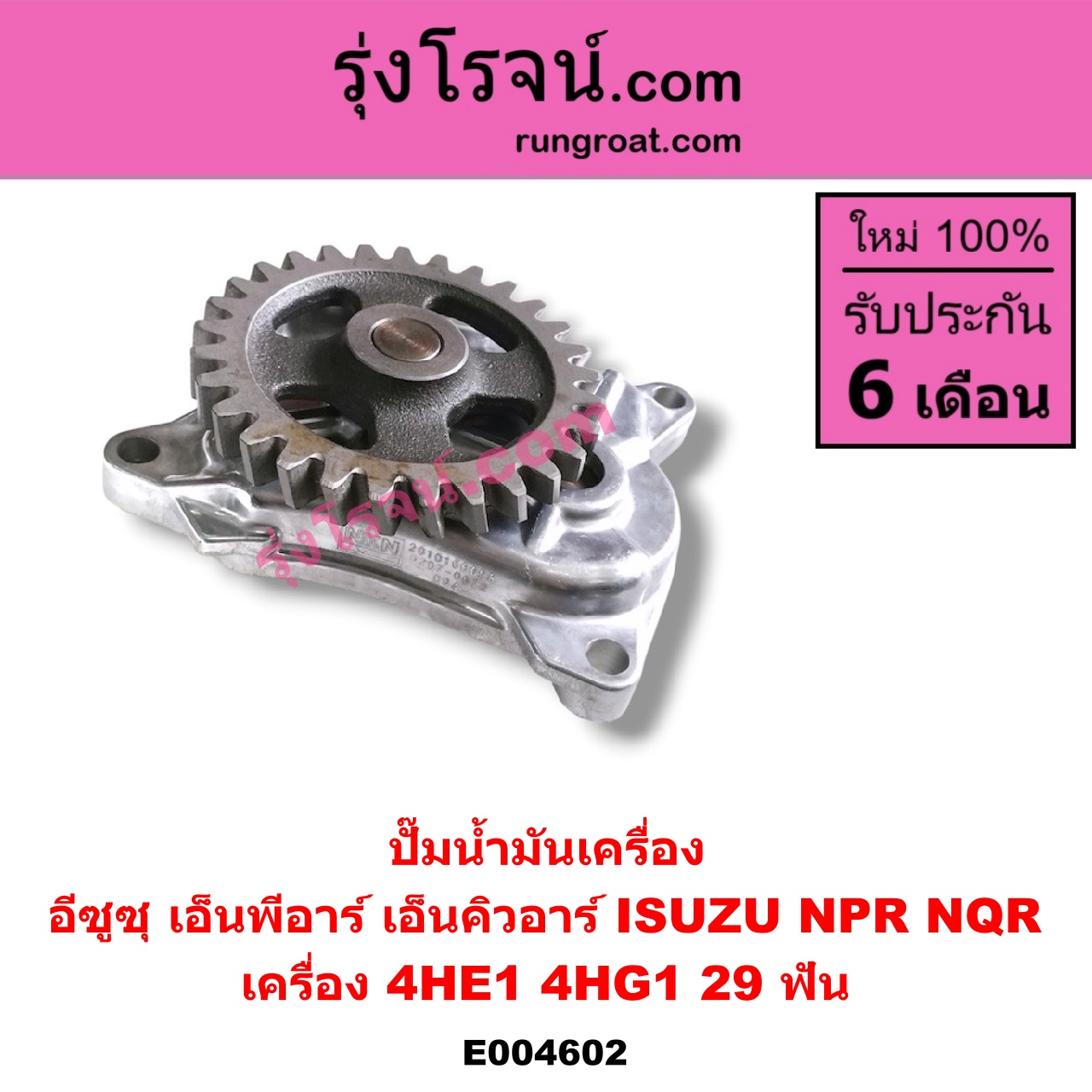 E004602 ปั๊มน้ำมันเครื่อง ISUZU (อีซูซุ) / NPR / NQR (เอ็นพีอาร์ / เอ็นคิวอาร์) เครื่อง 4HE1, 4HG1 (29 ฟัน)